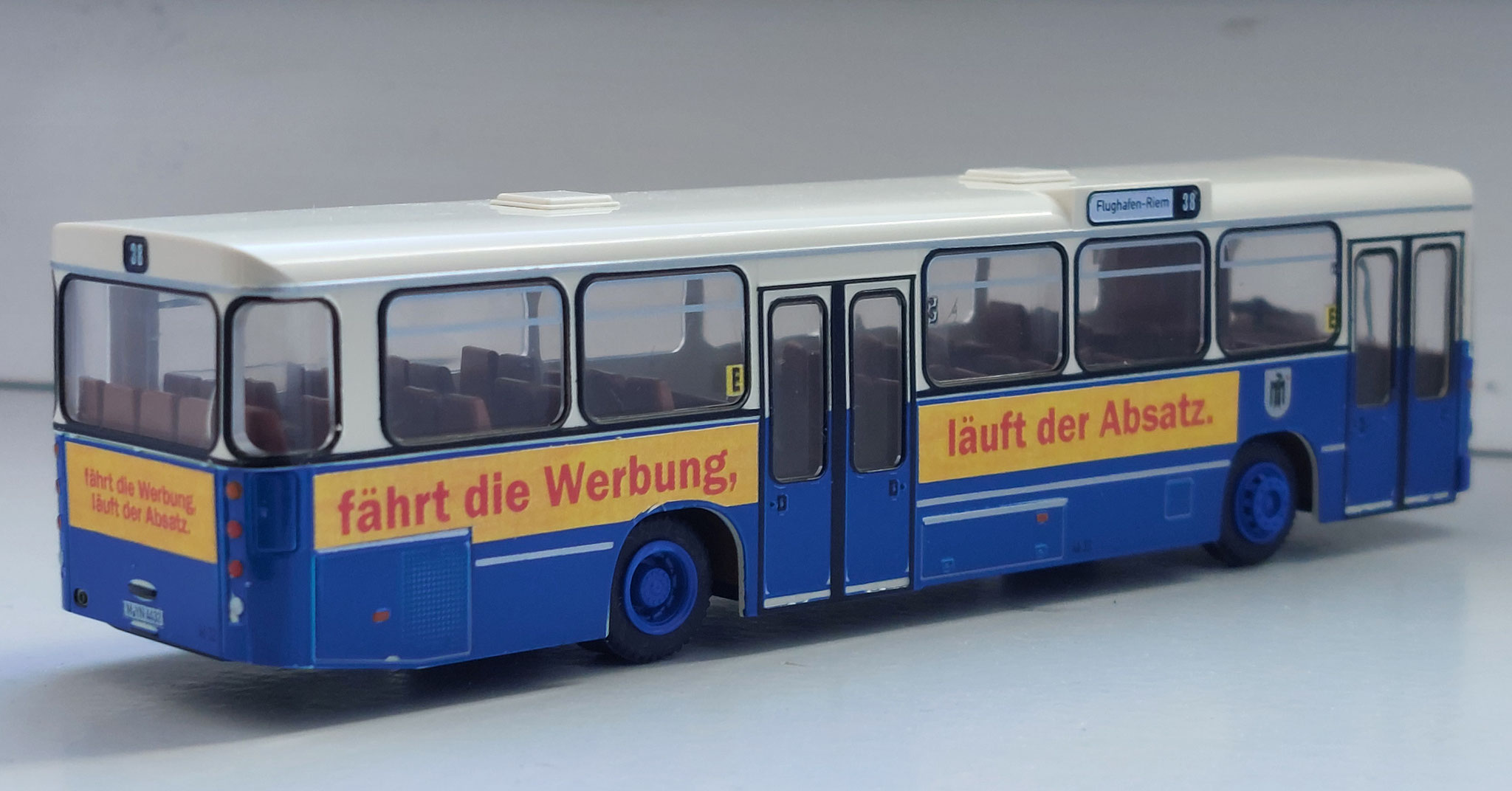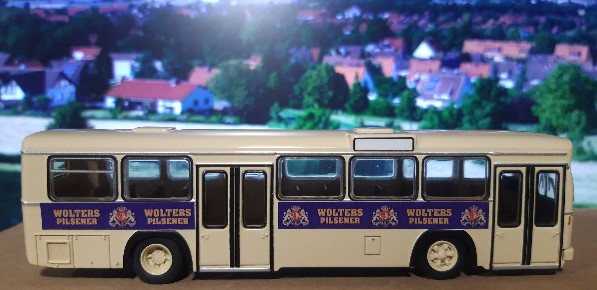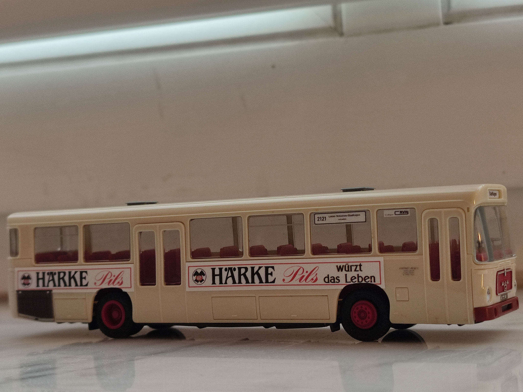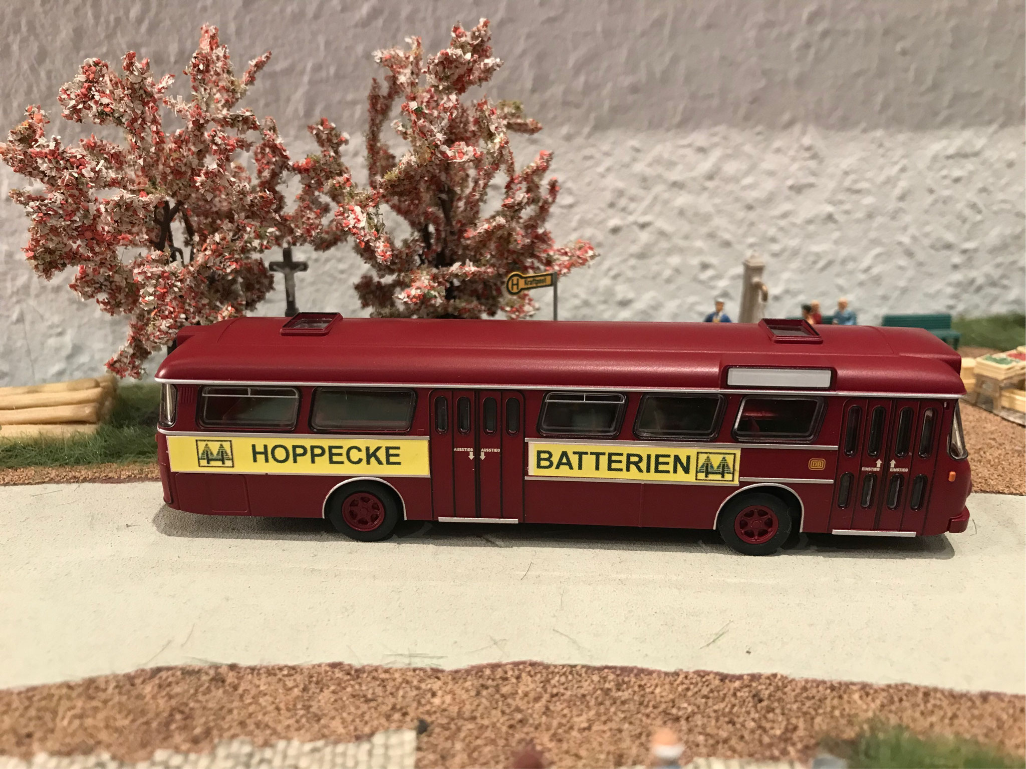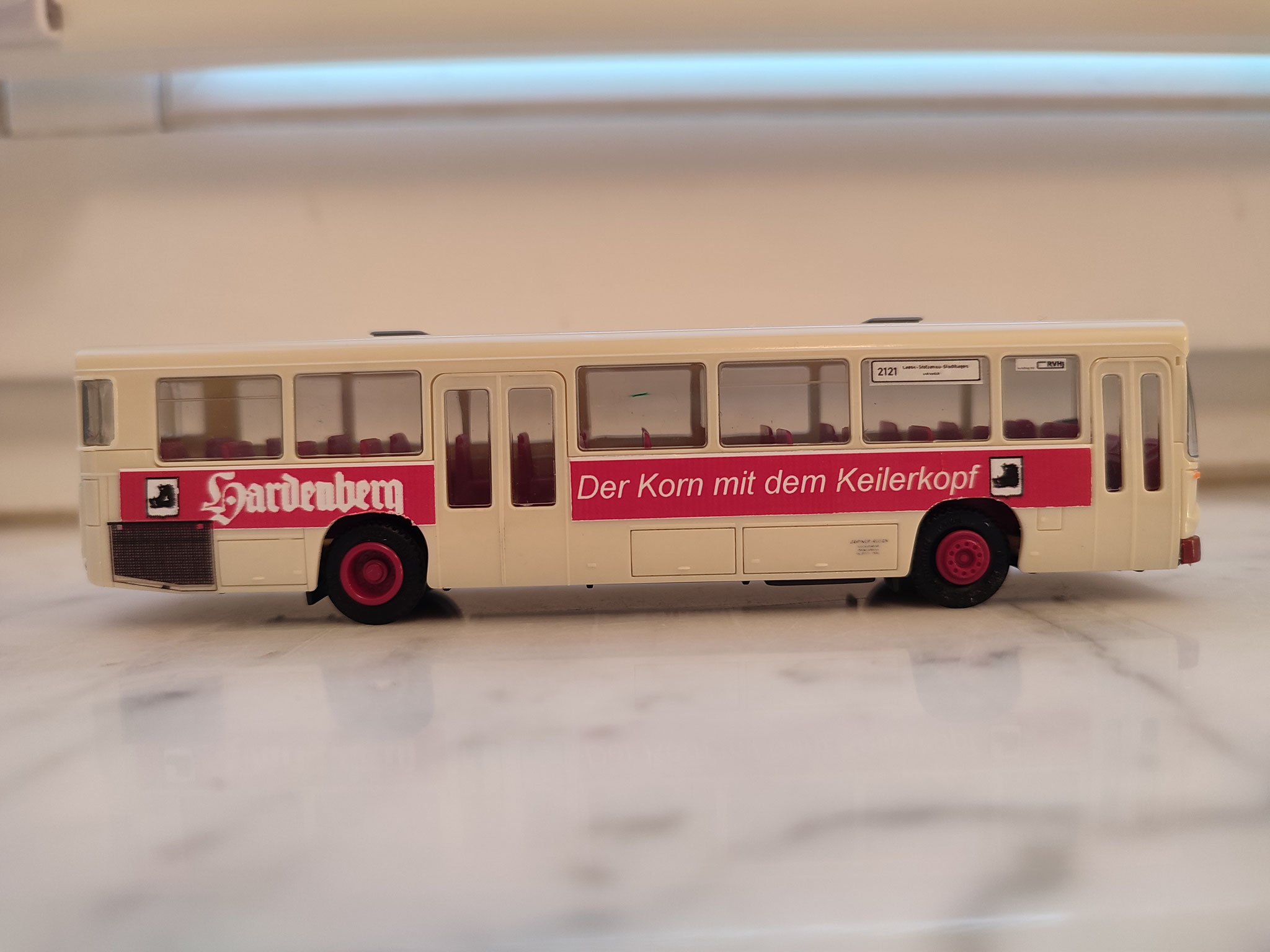 Von Herrn Wisotzki wurden diese Fotos eines MAN SÜ210 zur Verfügung gestellt. Werbung und Zielanzeiger stammen von RGModellbau, der Rest wurde vom Kunden besorgt. Basis das Modell von Herpa.