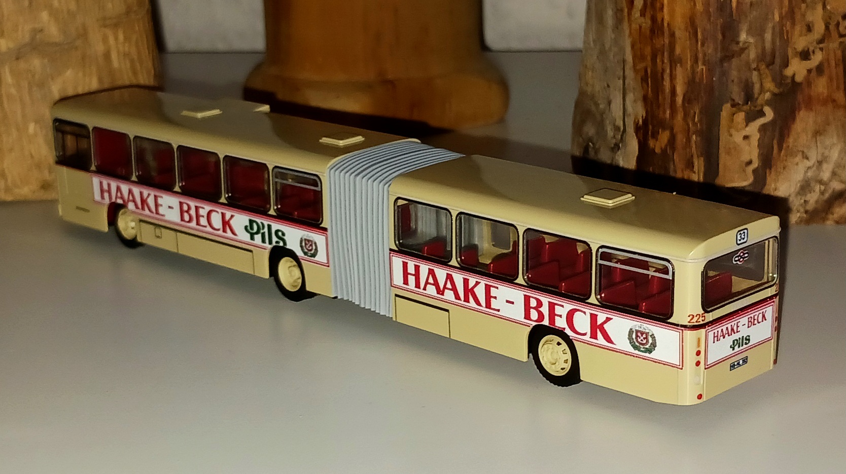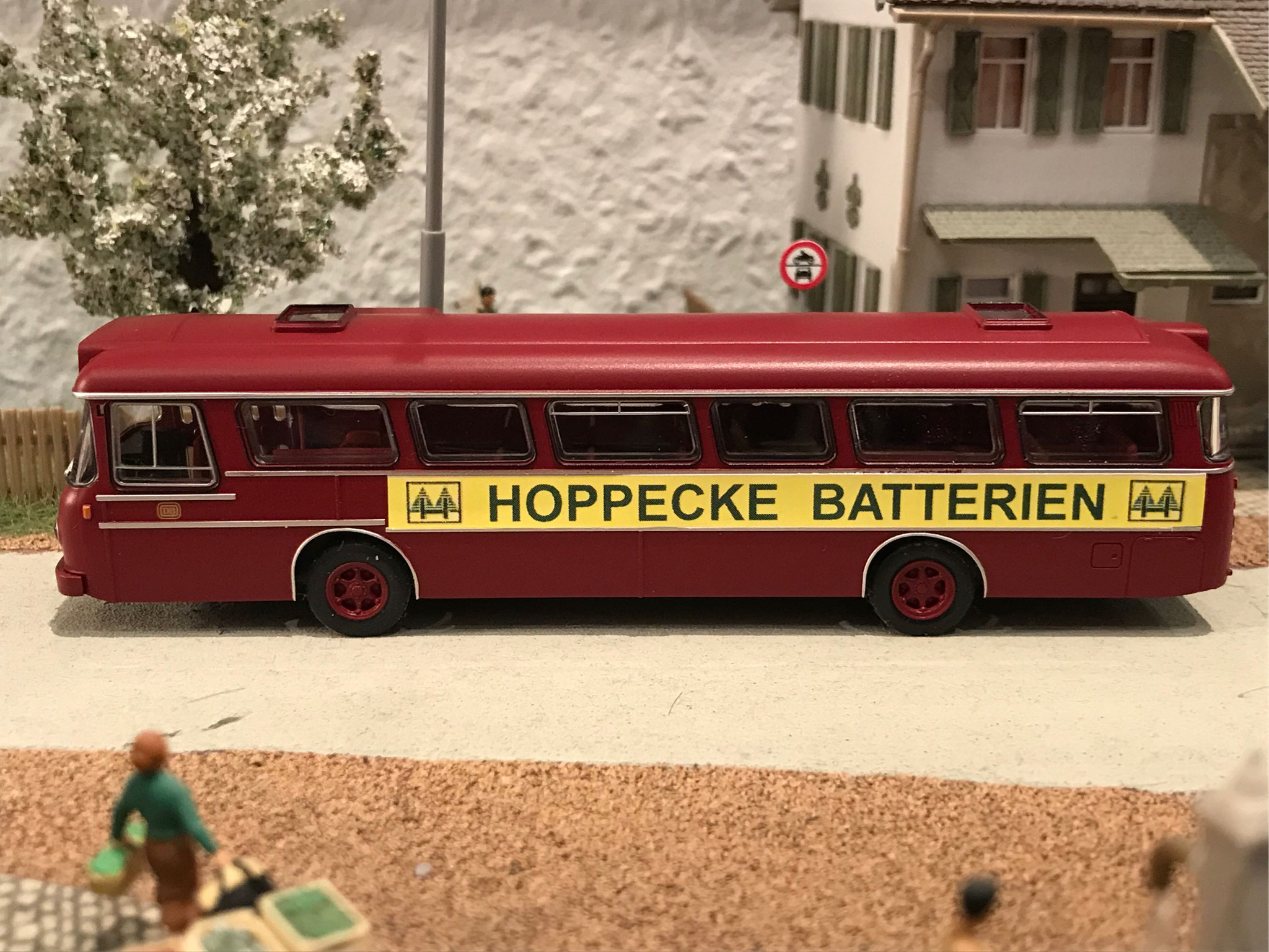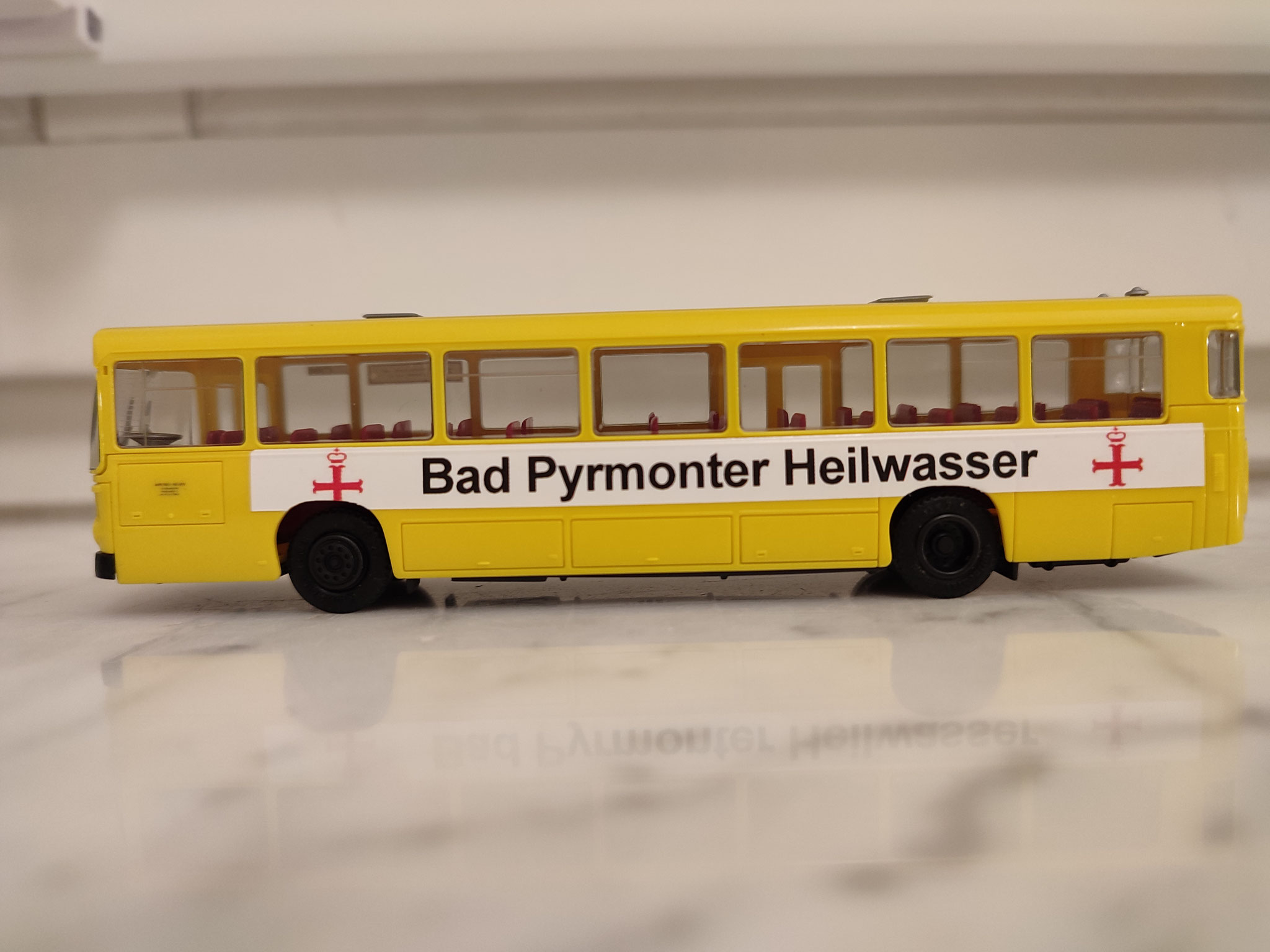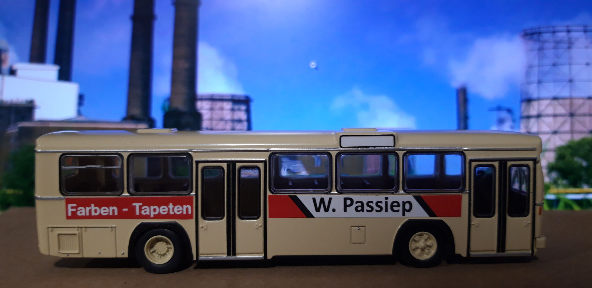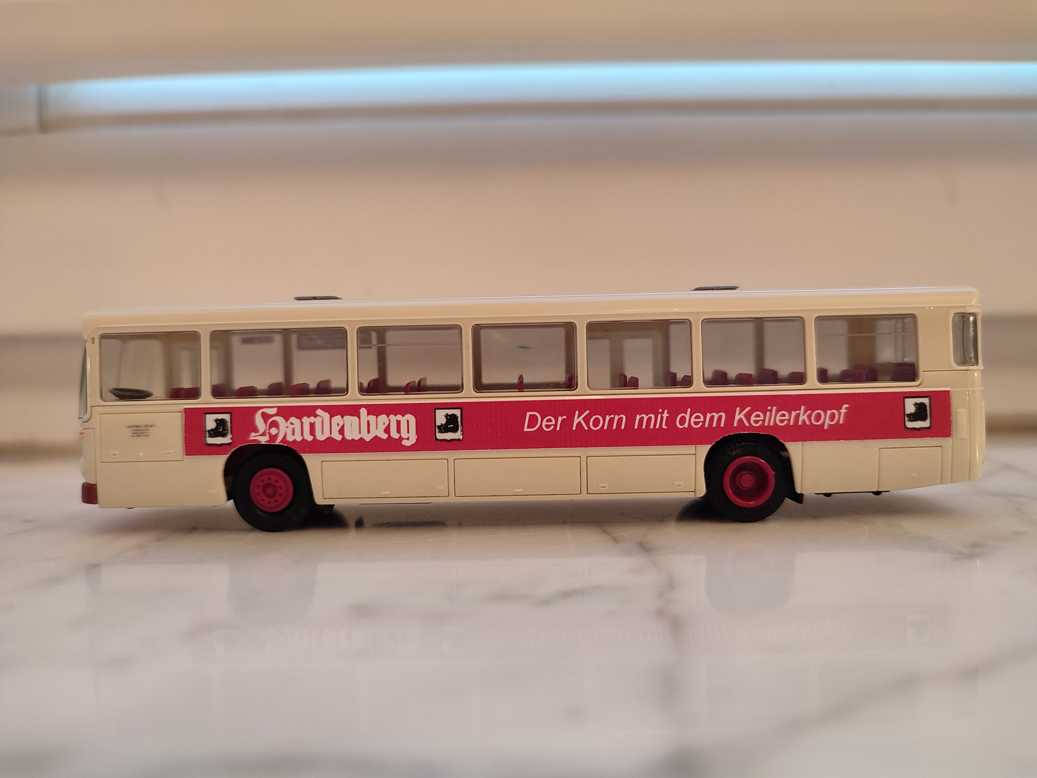 Von Herrn Wisotzki wurden diese Fotos eines MAN SÜ210 zur Verfügung gestellt. Werbung und Zielanzeiger stammen von RGModellbau, der Rest wurde vom Kunden besorgt. Basis das Modell von Herpa.