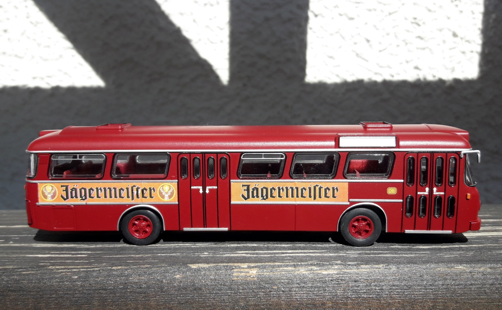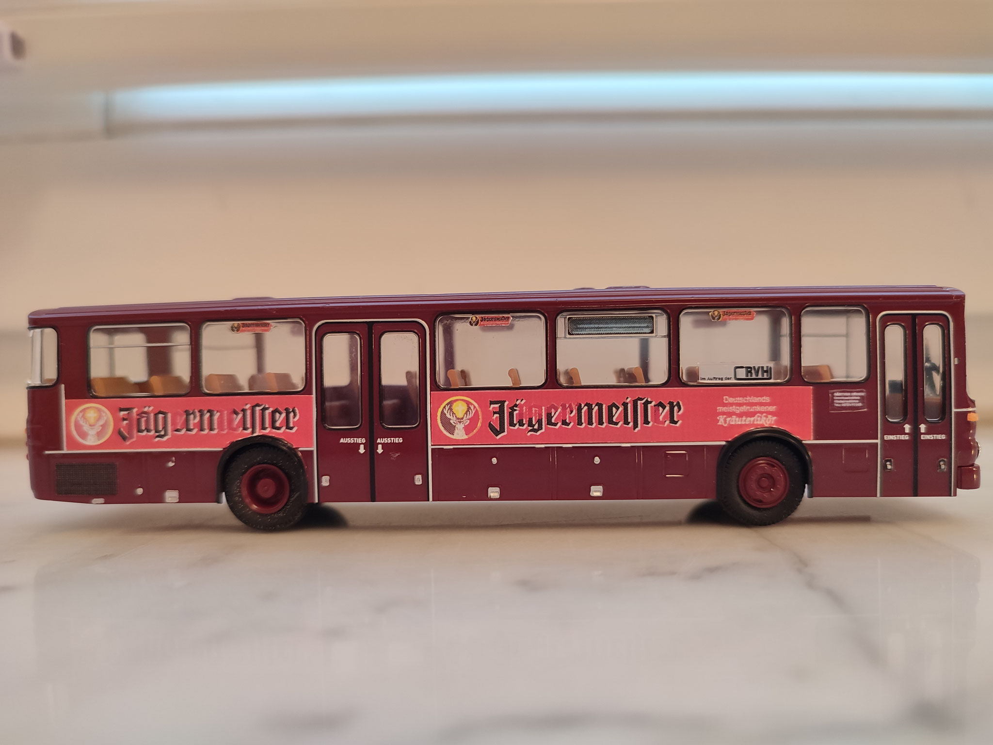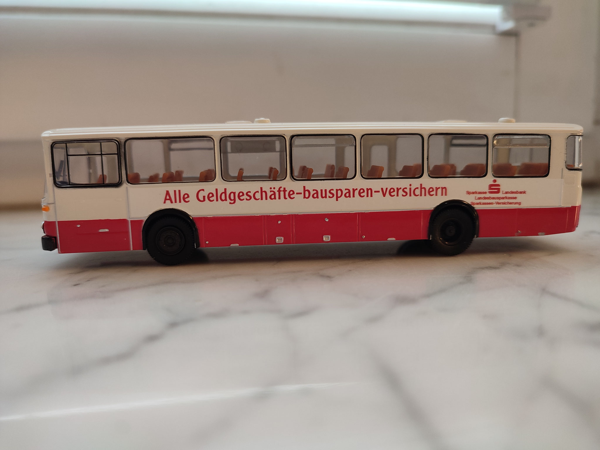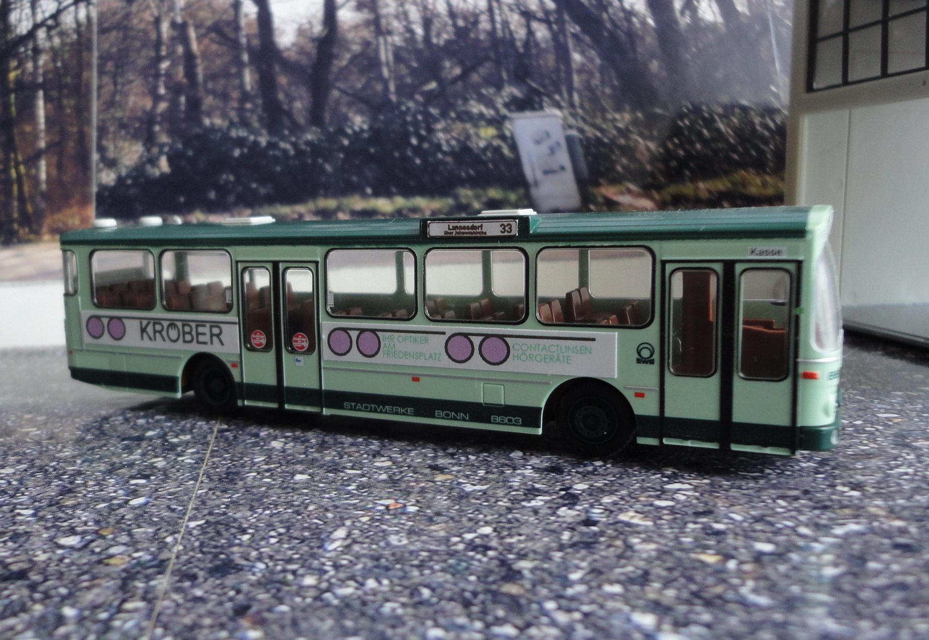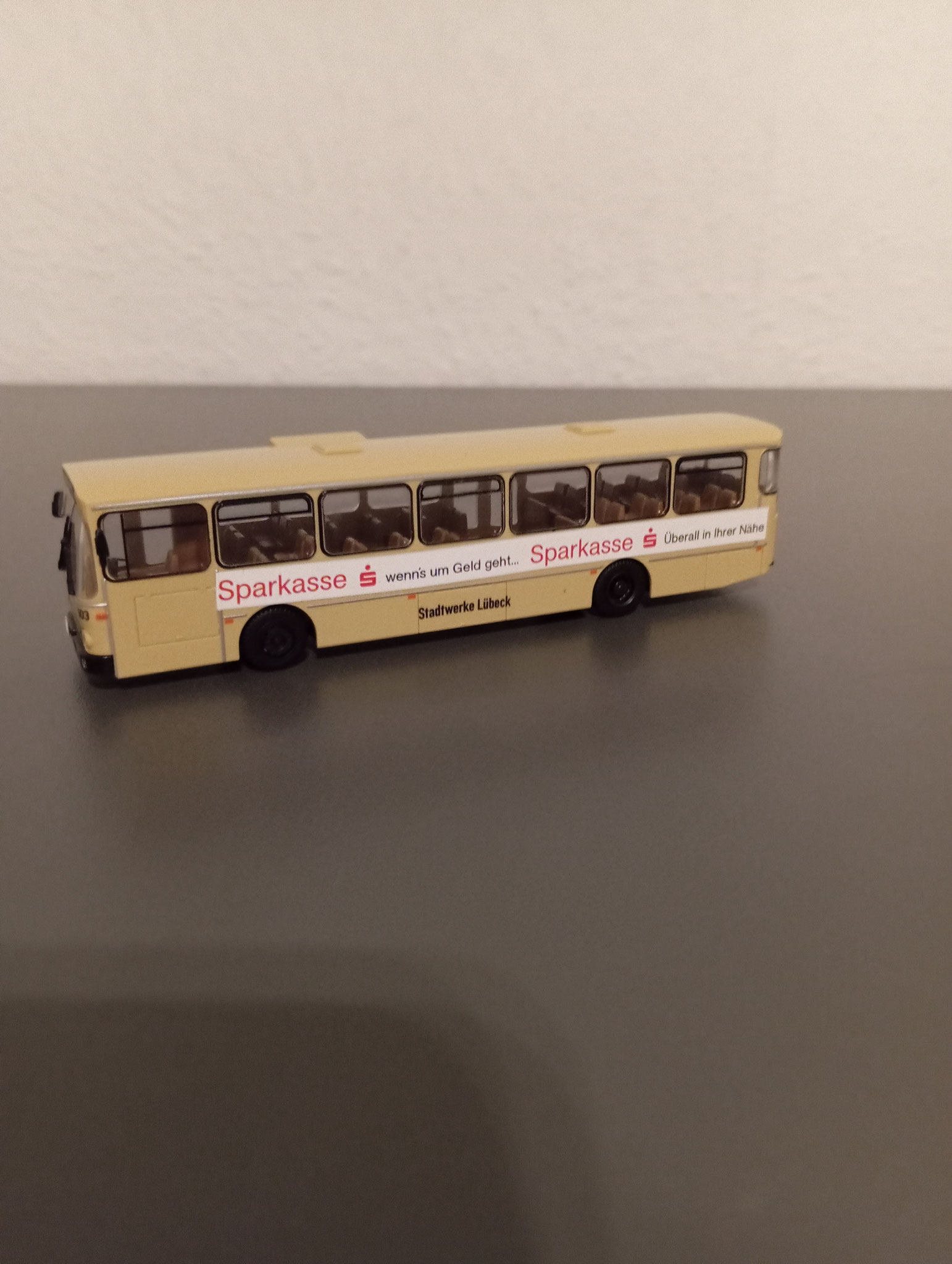 Von Herrn Wisotzki wurden diese Fotos eines MAN SÜ210 zur Verfügung gestellt. Werbung und Zielanzeiger stammen von RGModellbau, der Rest wurde vom Kunden besorgt. Basis das Modell von Herpa.