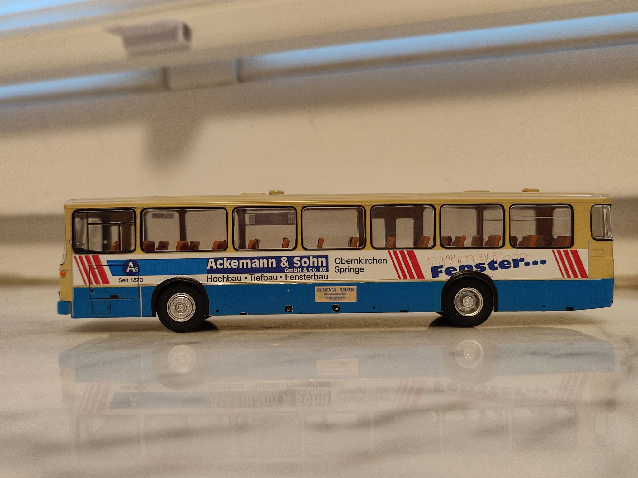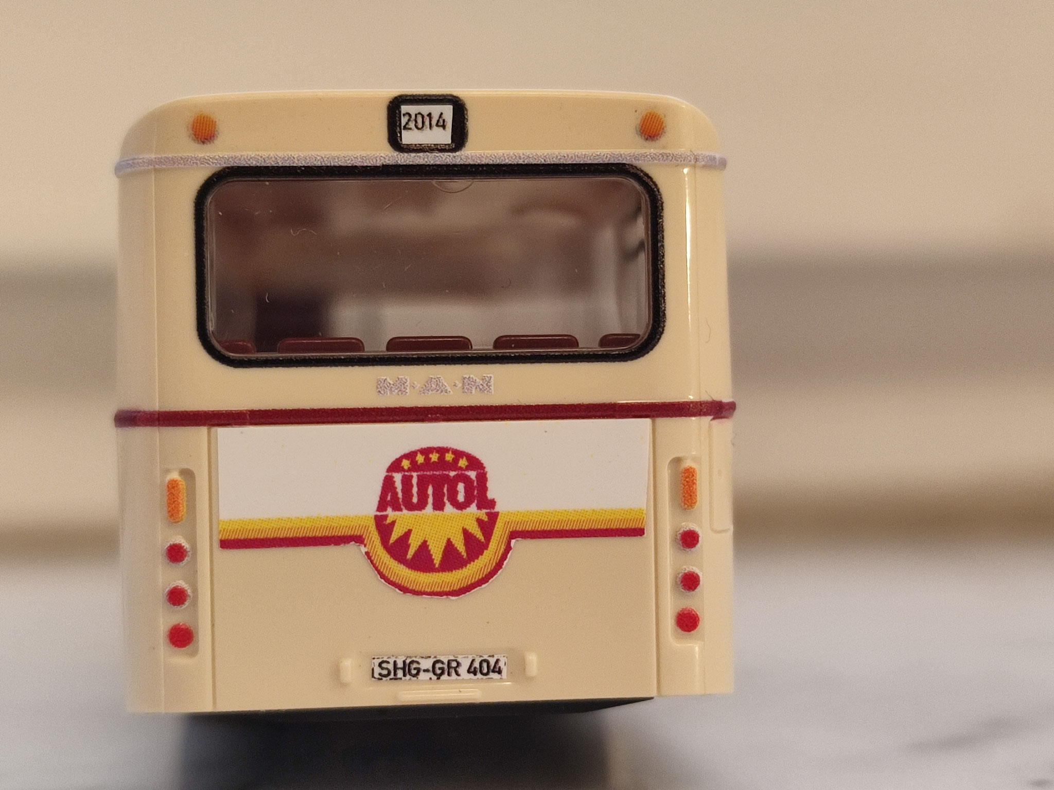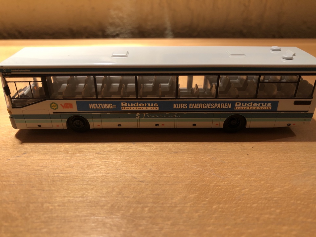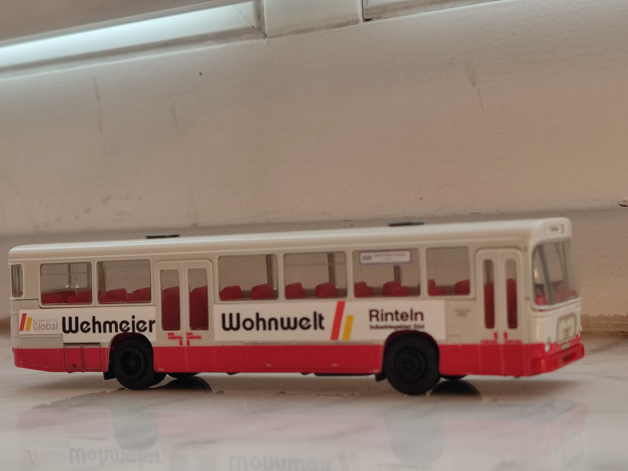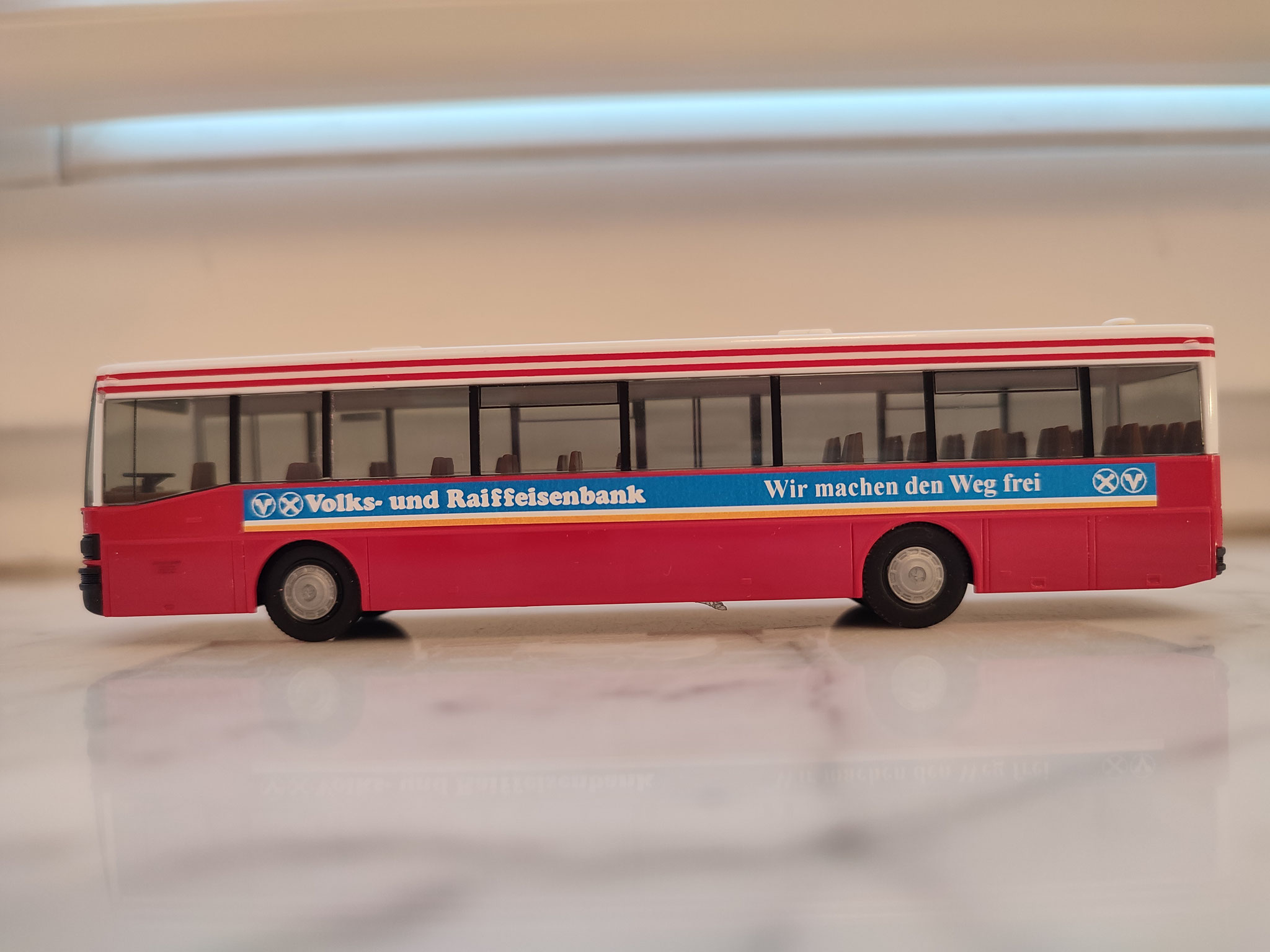 Von Herrn Wisotzki wurden diese Fotos eines MAN SÜ210 zur Verfügung gestellt. Werbung und Zielanzeiger stammen von RGModellbau, der Rest wurde vom Kunden besorgt. Basis das Modell von Herpa.