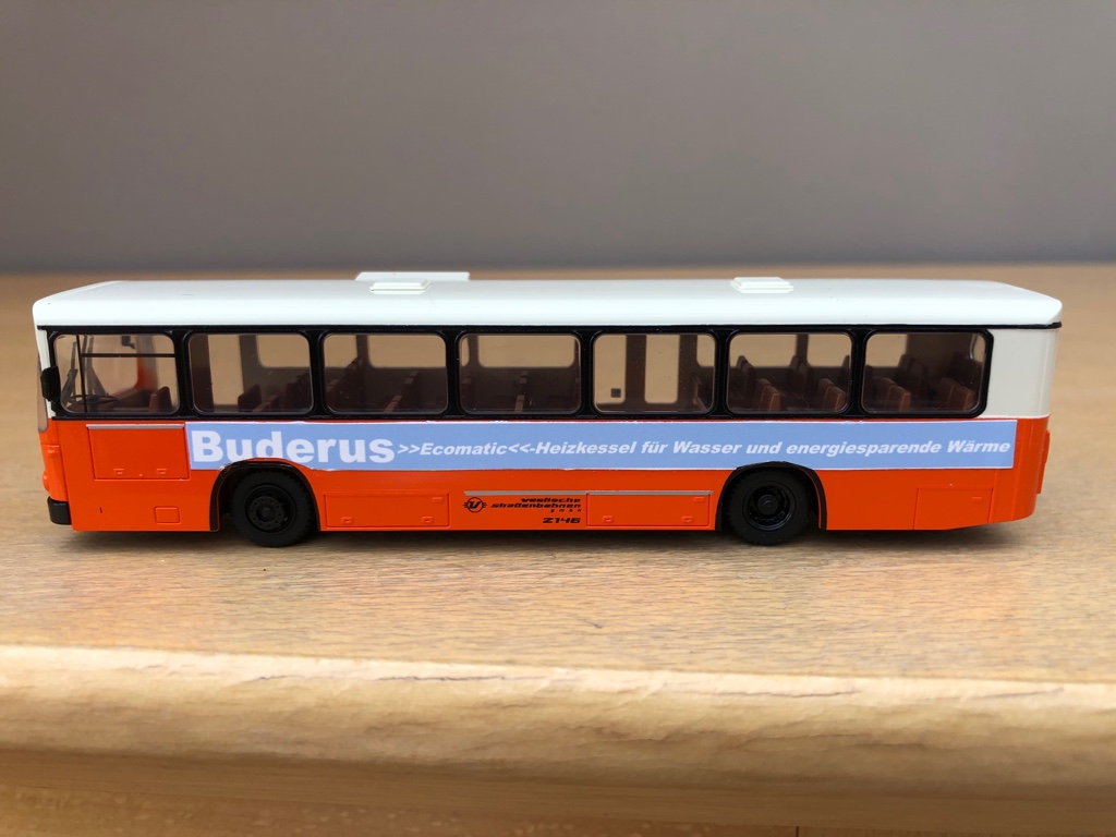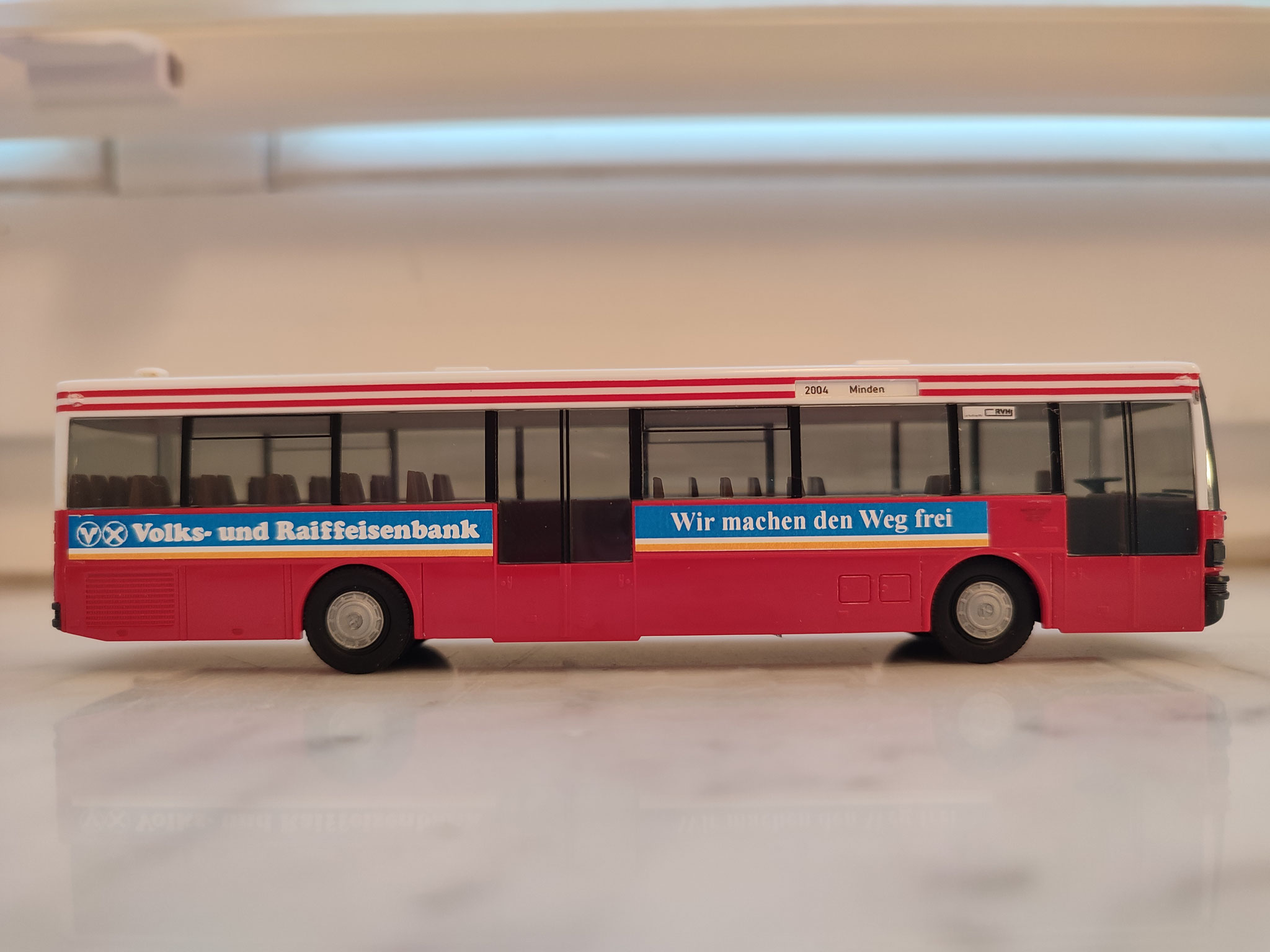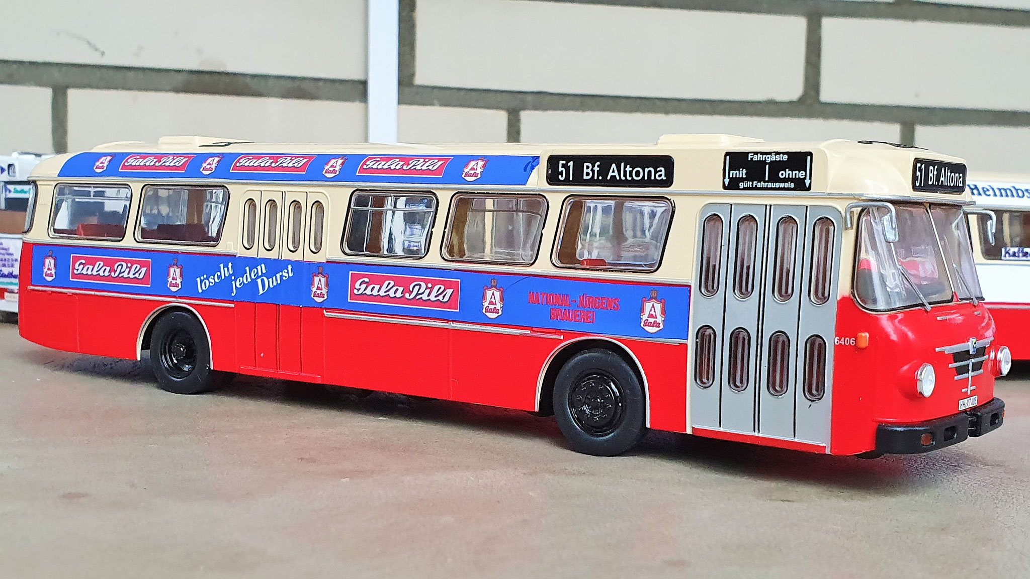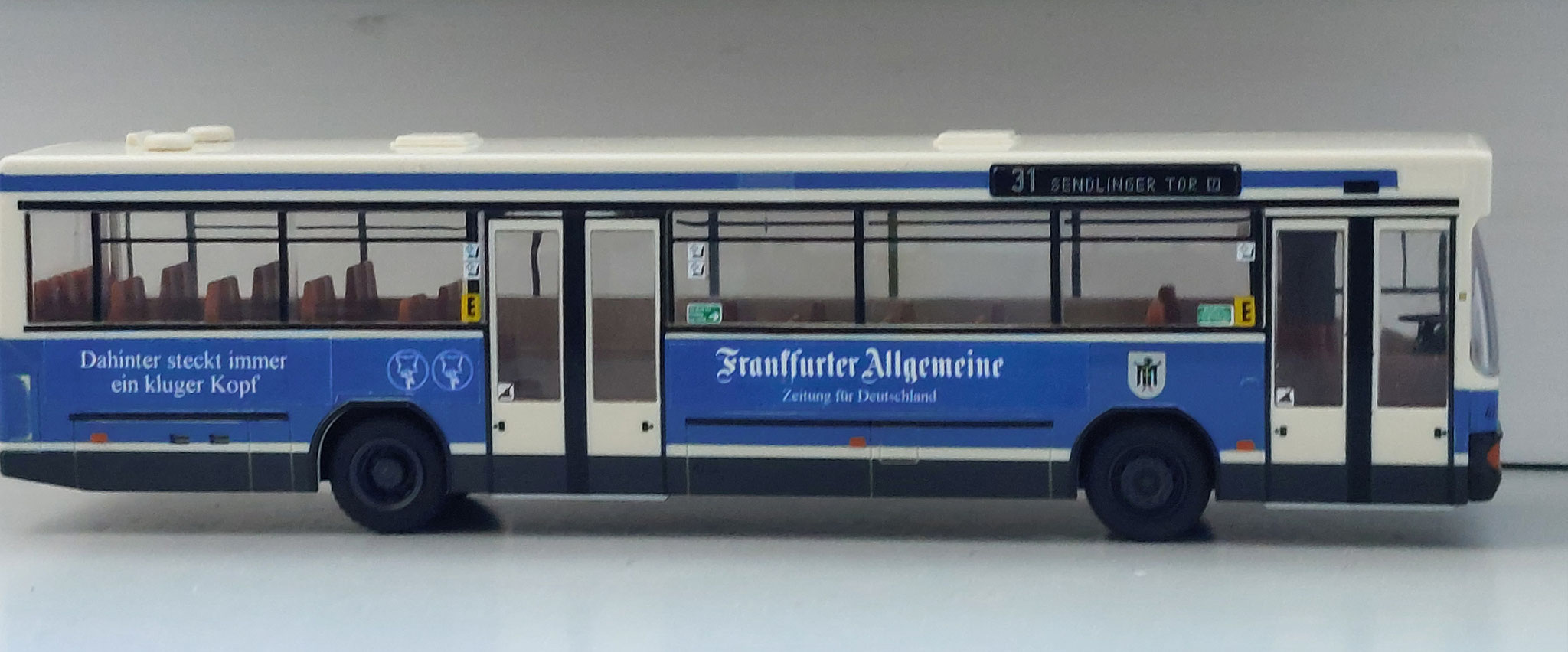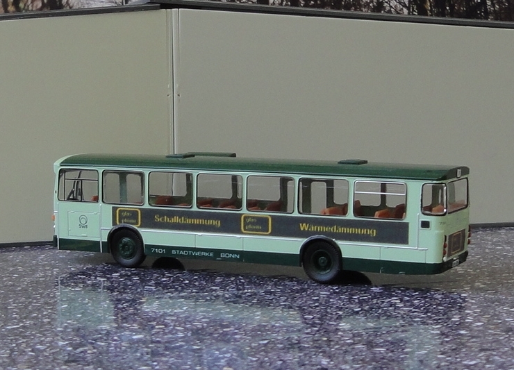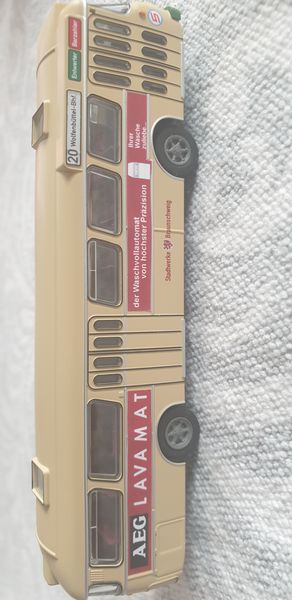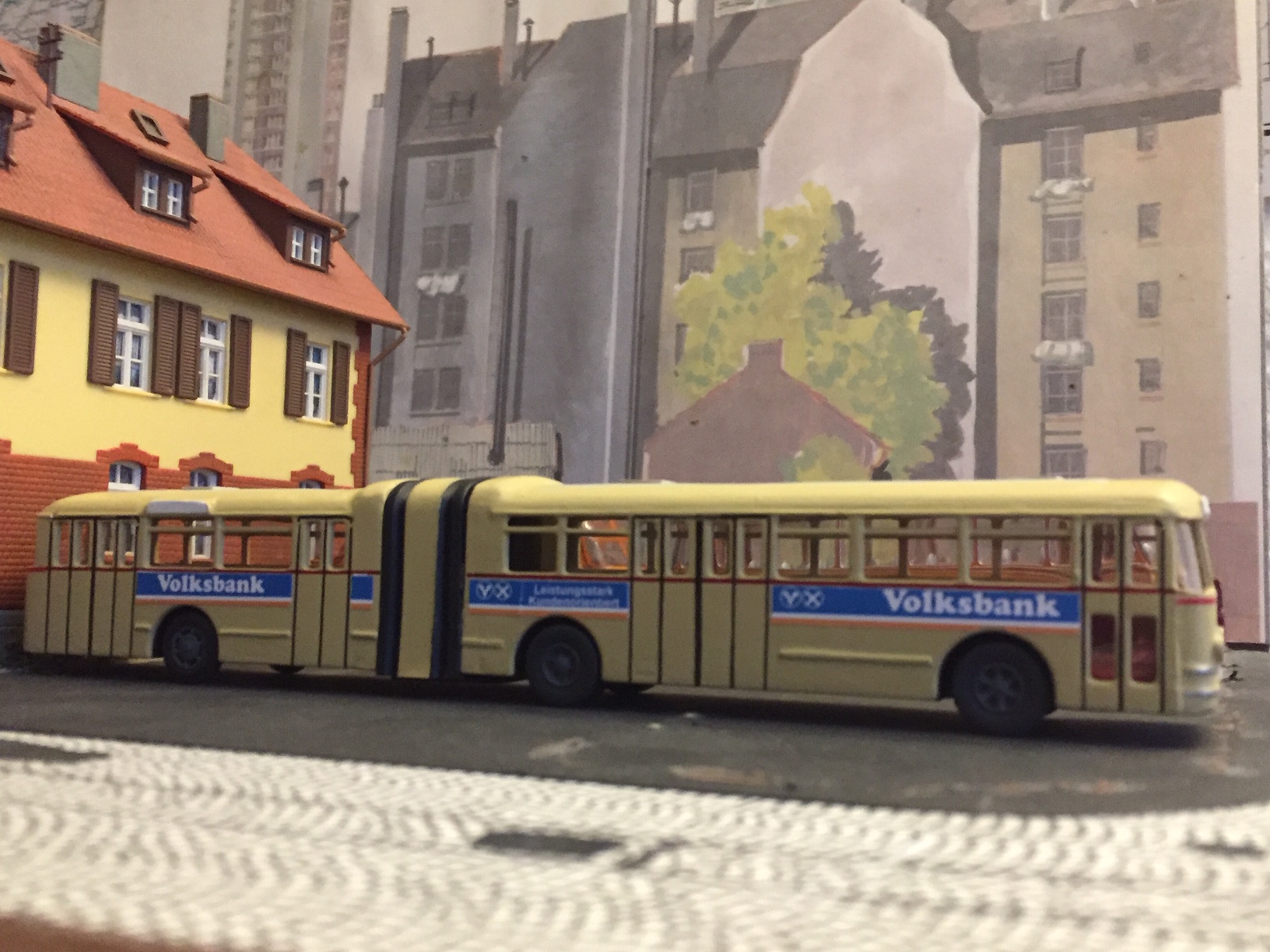 Von Herrn Wisotzki wurden diese Fotos eines MAN SÜ210 zur Verfügung gestellt. Werbung und Zielanzeiger stammen von RGModellbau, der Rest wurde vom Kunden besorgt. Basis das Modell von Herpa.