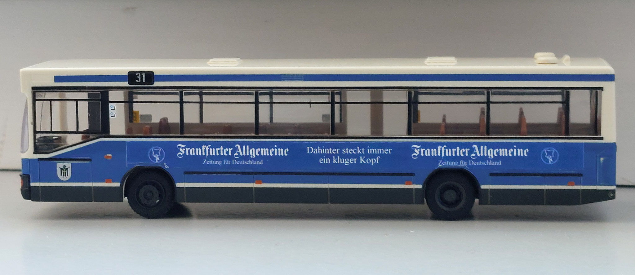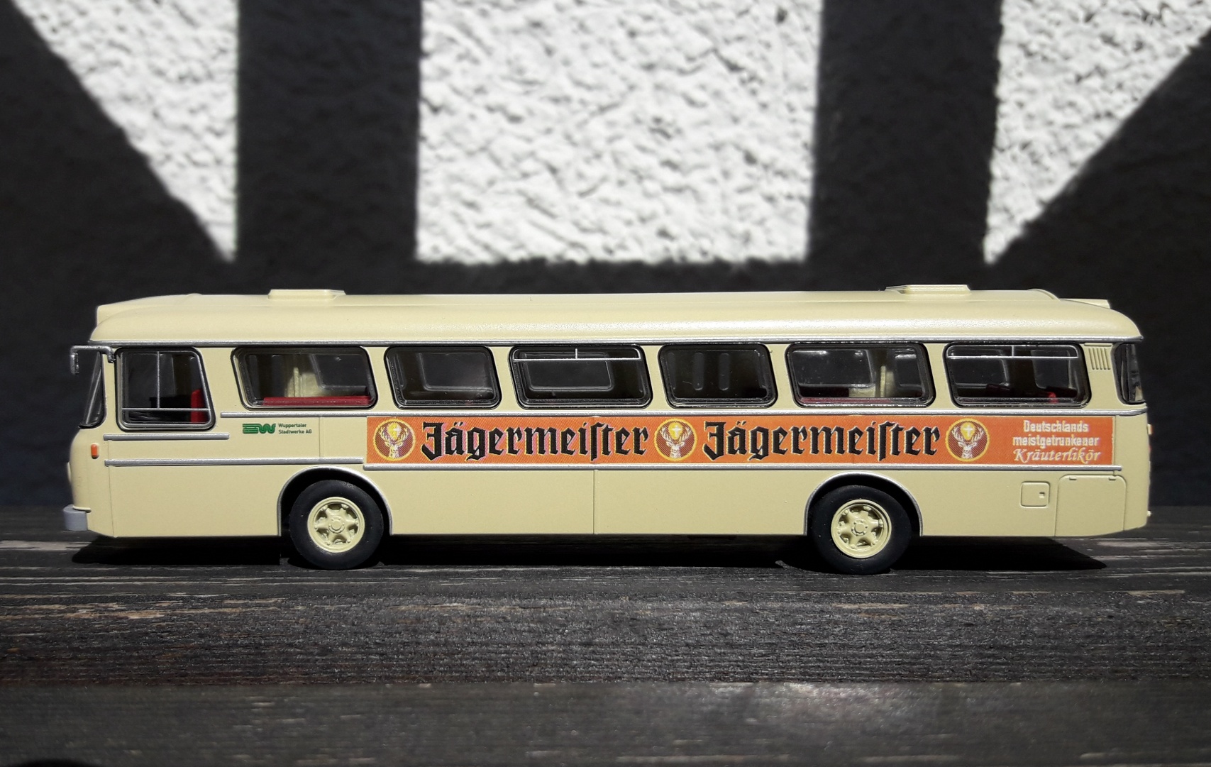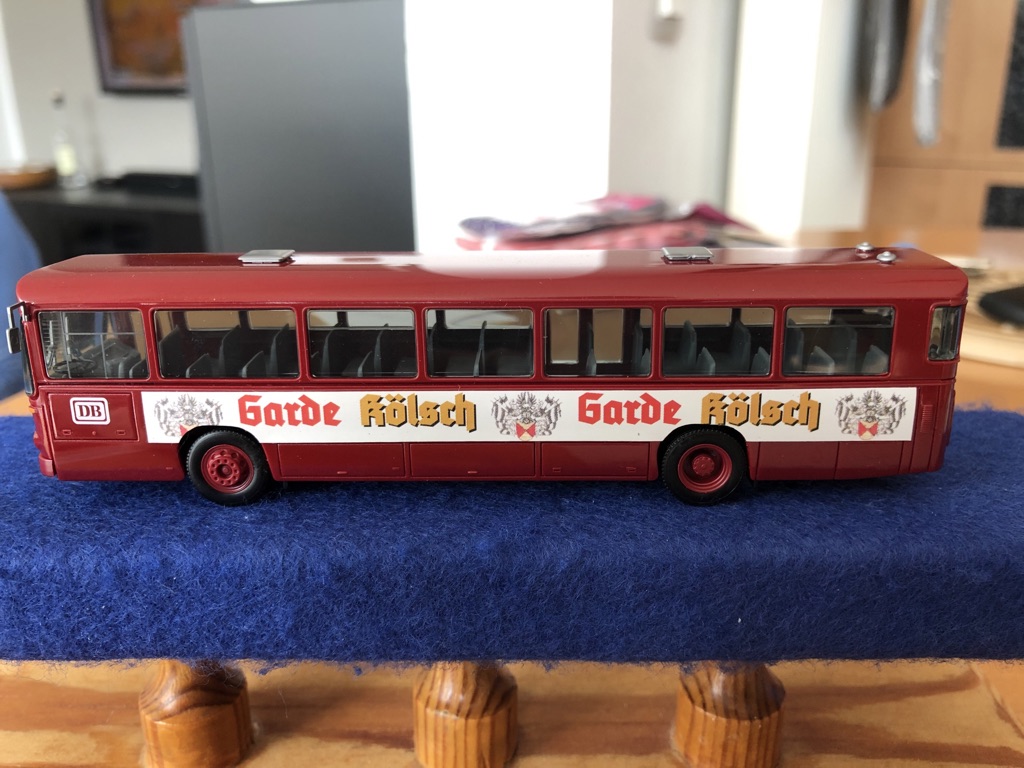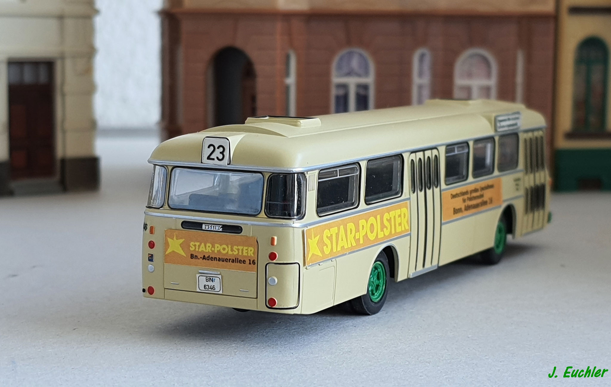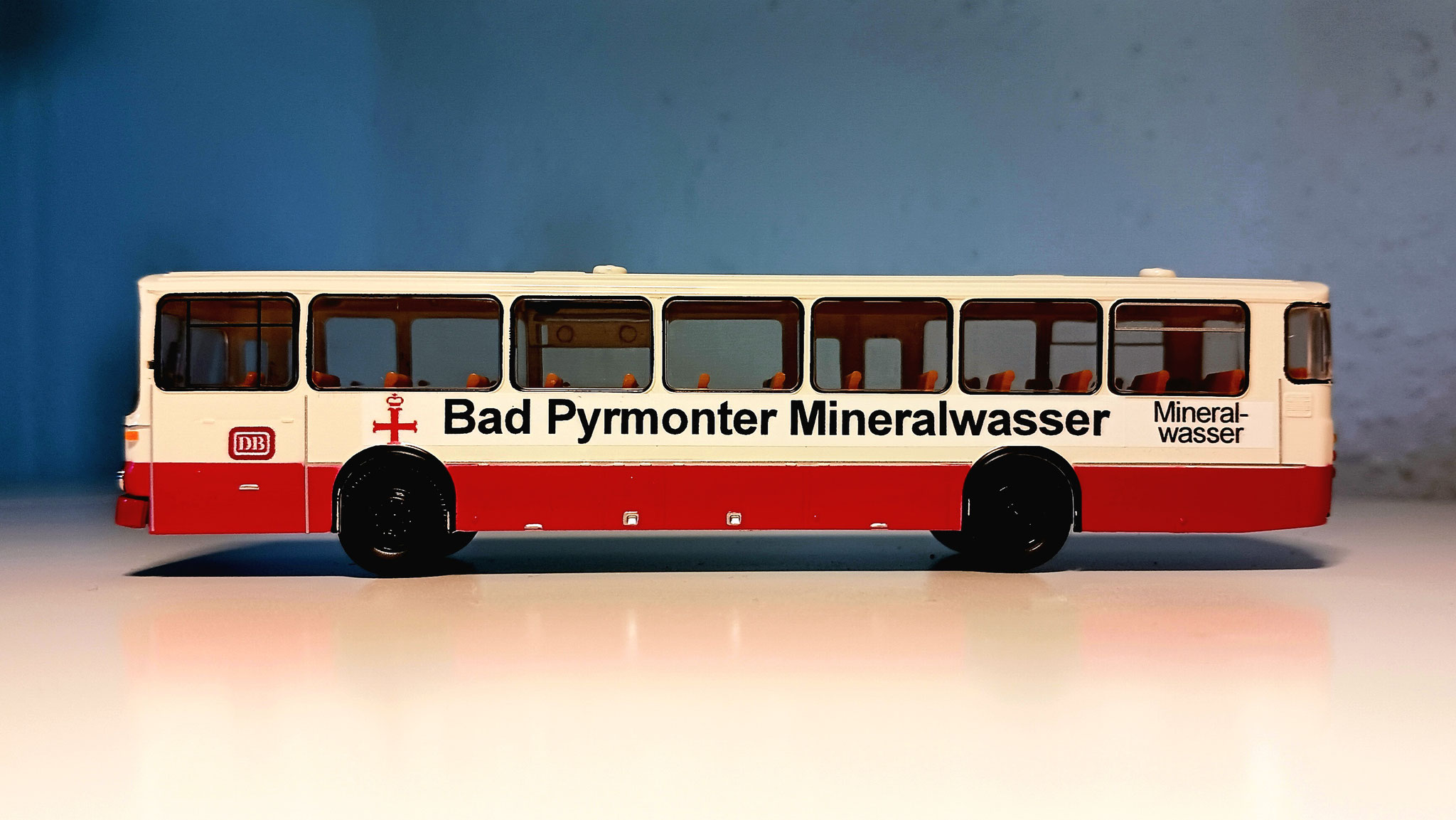 Von Herrn Wisotzki wurden diese Fotos eines MAN SÜ210 zur Verfügung gestellt. Werbung und Zielanzeiger stammen von RGModellbau, der Rest wurde vom Kunden besorgt. Basis das Modell von Herpa.