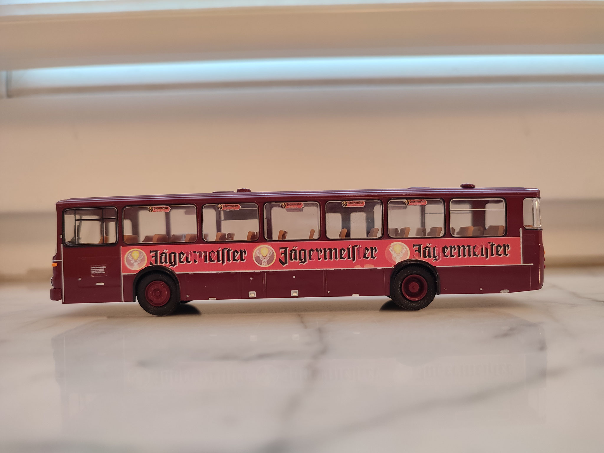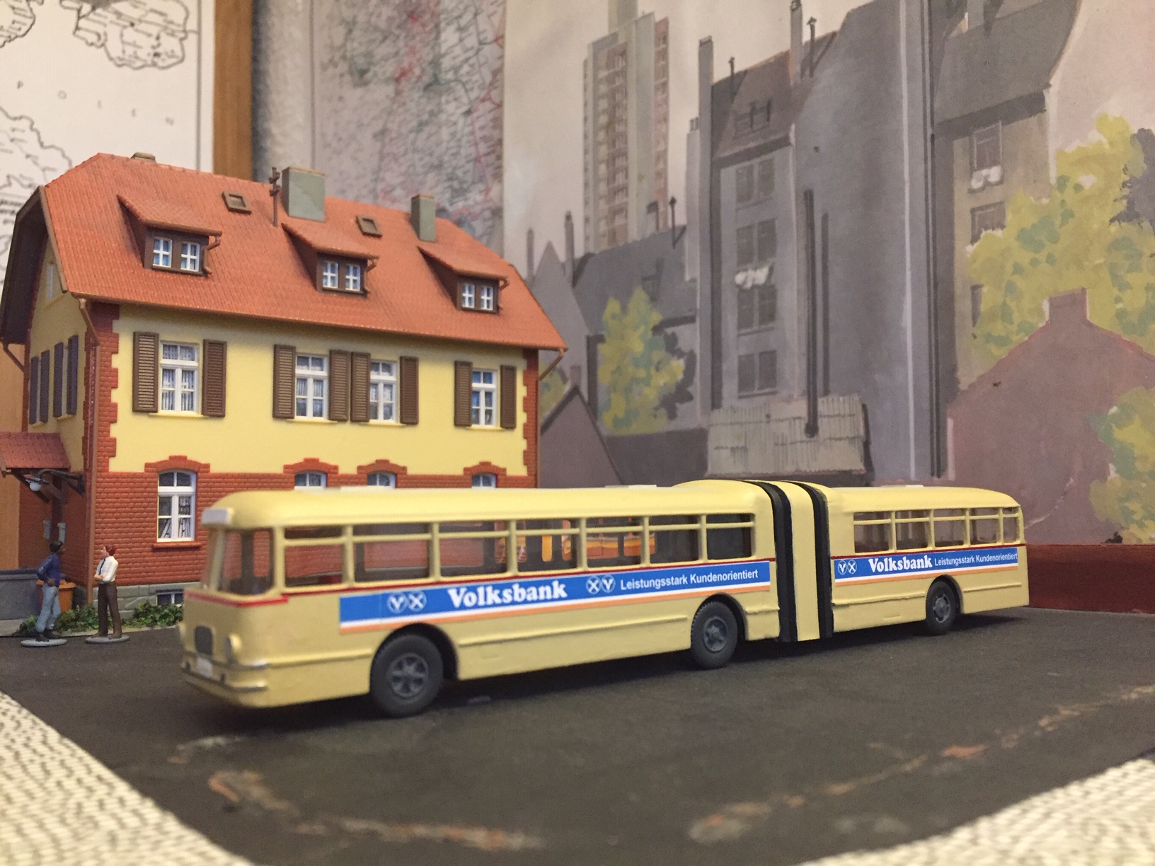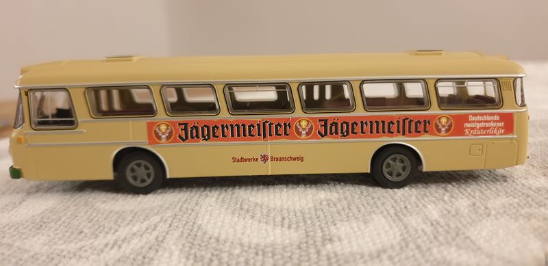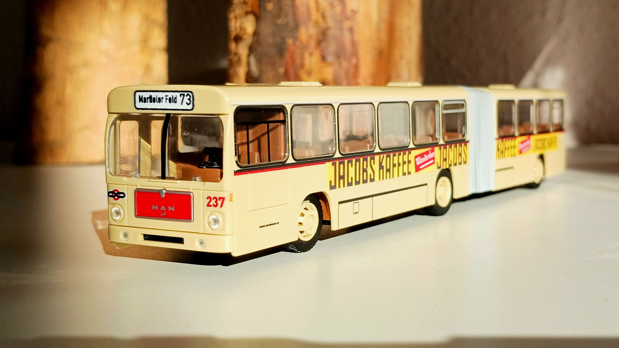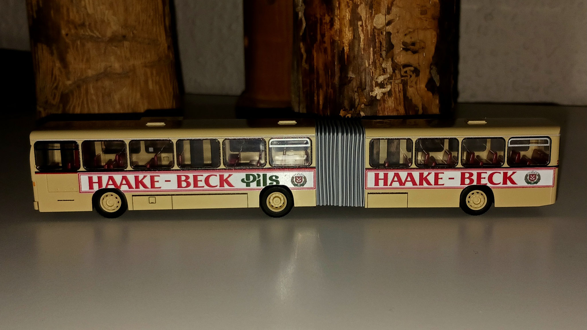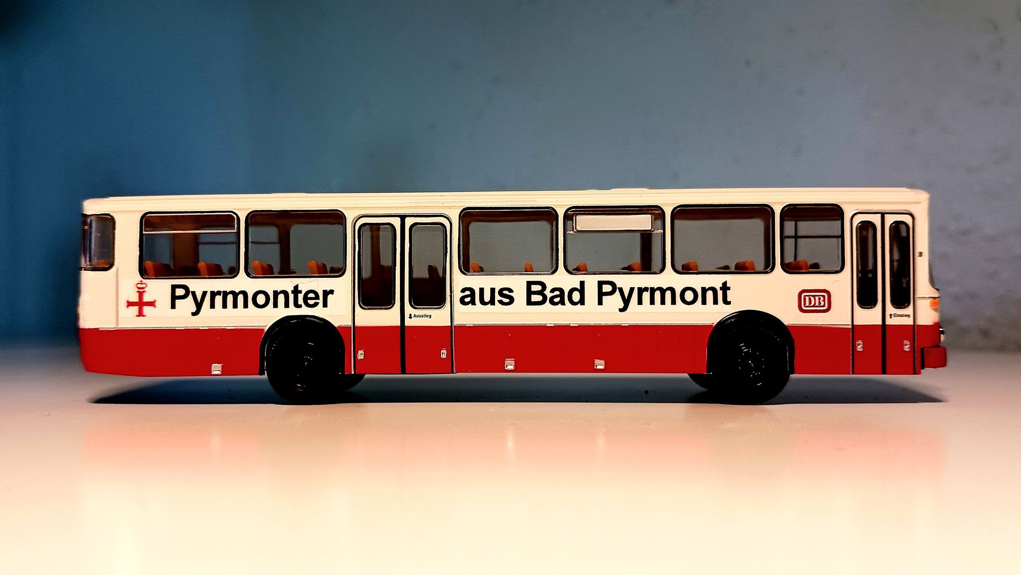Von Herrn Wisotzki wurden diese Fotos eines MAN SÜ210 zur Verfügung gestellt. Werbung und Zielanzeiger stammen von RGModellbau, der Rest wurde vom Kunden besorgt. Basis das Modell von Herpa.