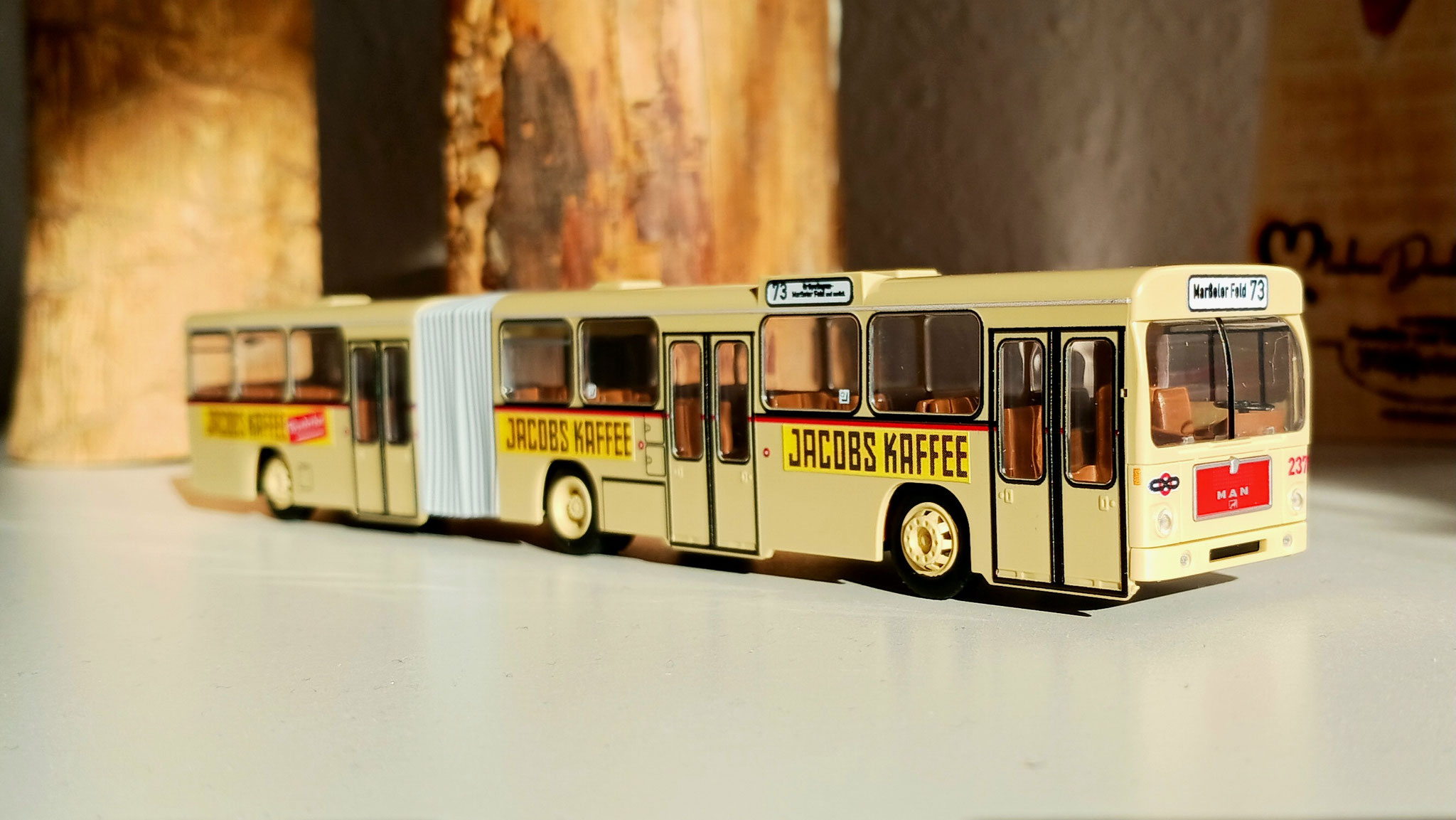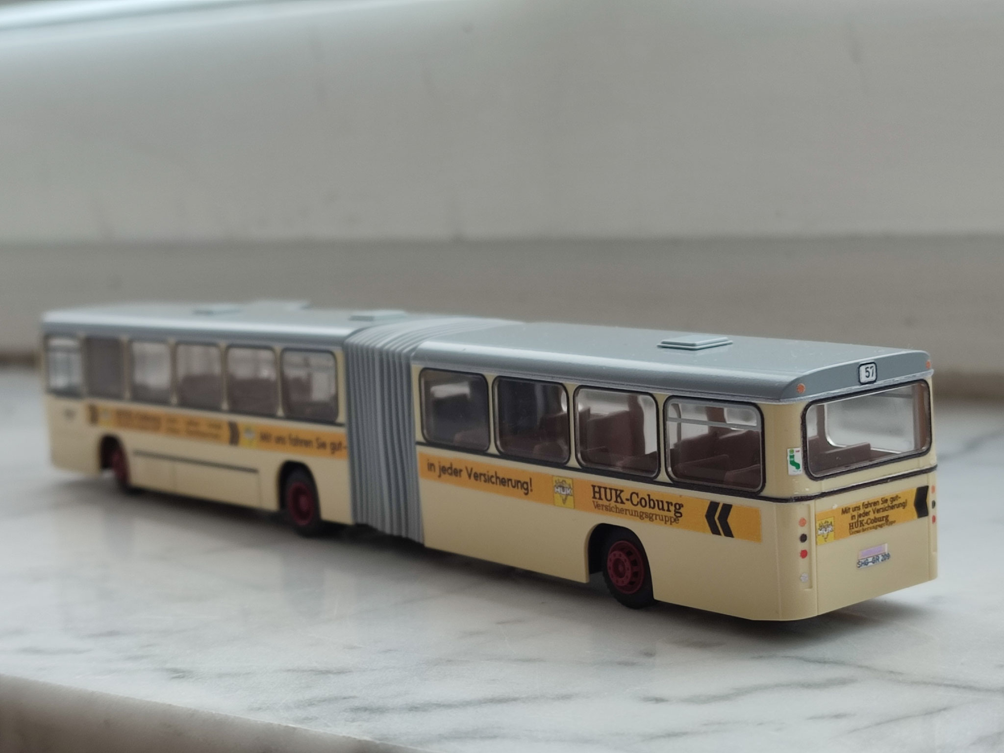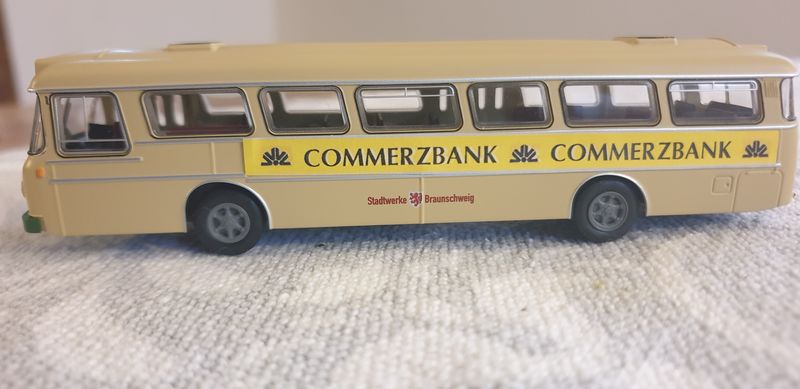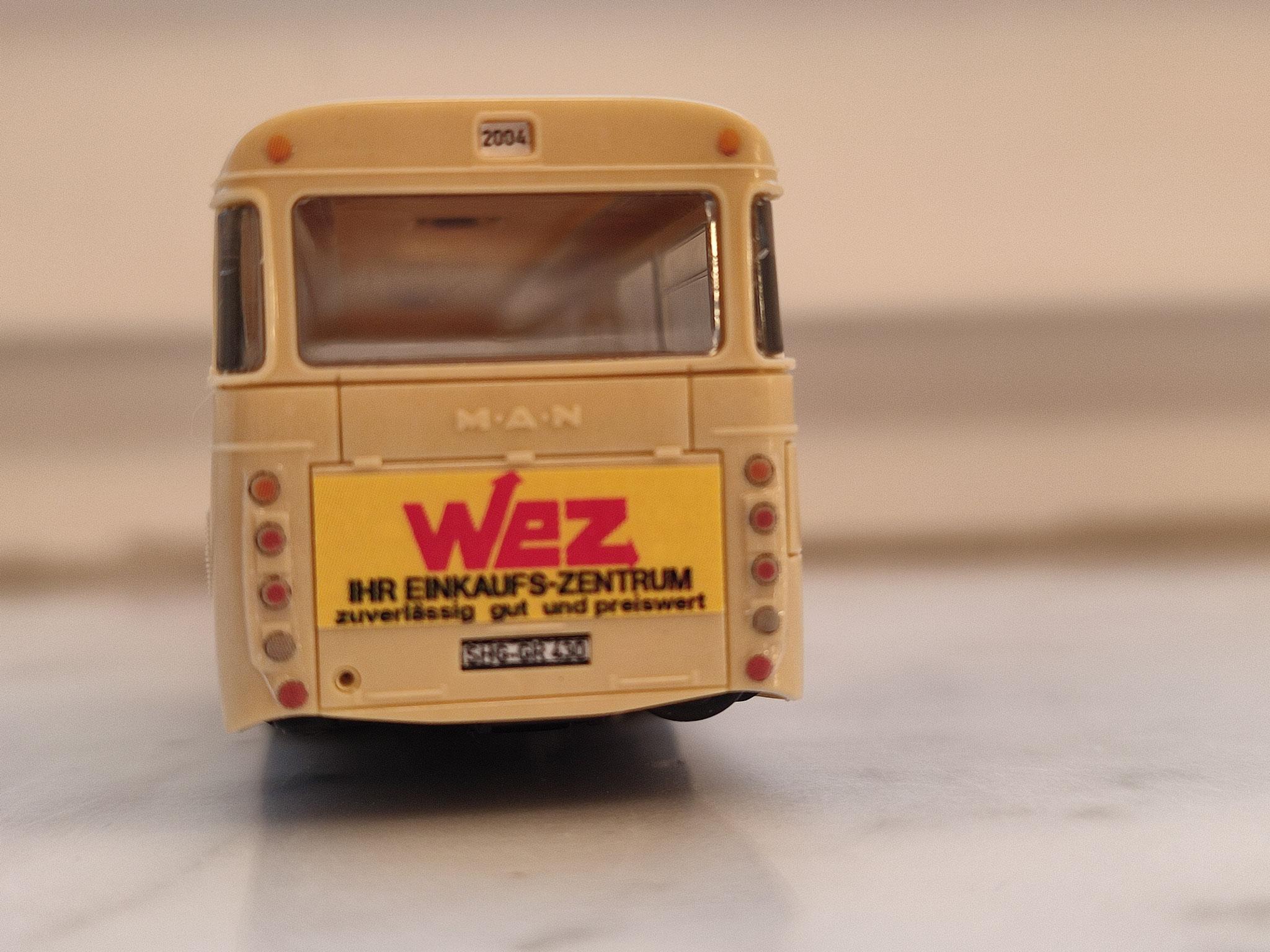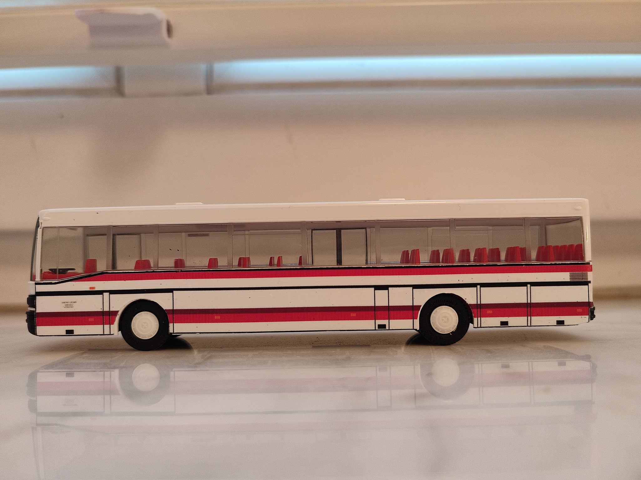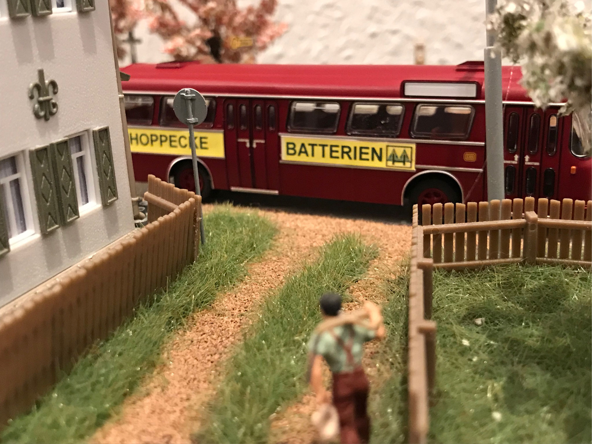 Von Herrn Wisotzki wurden diese Fotos eines MAN SÜ210 zur Verfügung gestellt. Werbung und Zielanzeiger stammen von RGModellbau, der Rest wurde vom Kunden besorgt. Basis das Modell von Herpa.