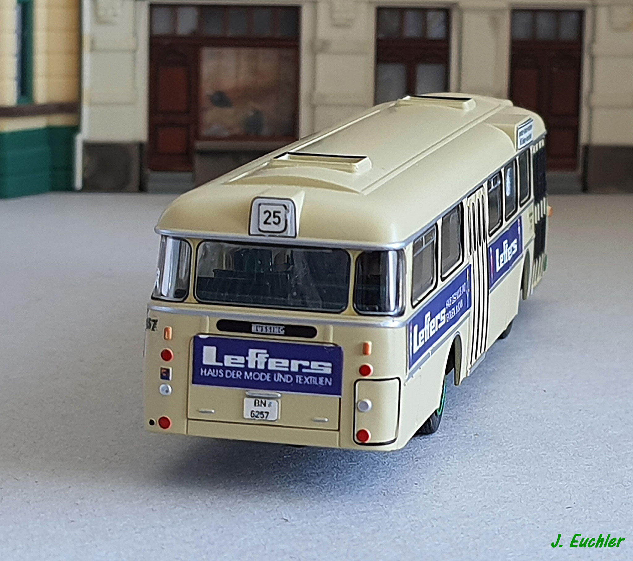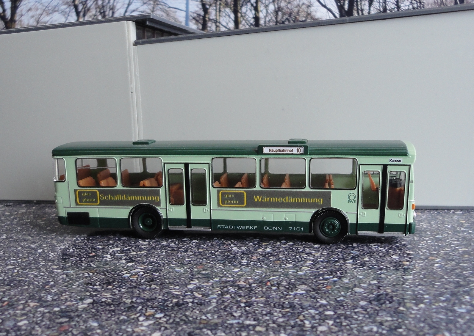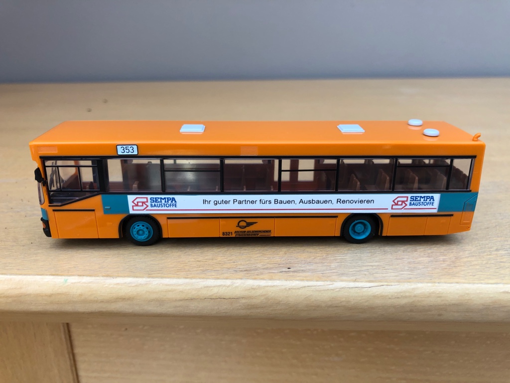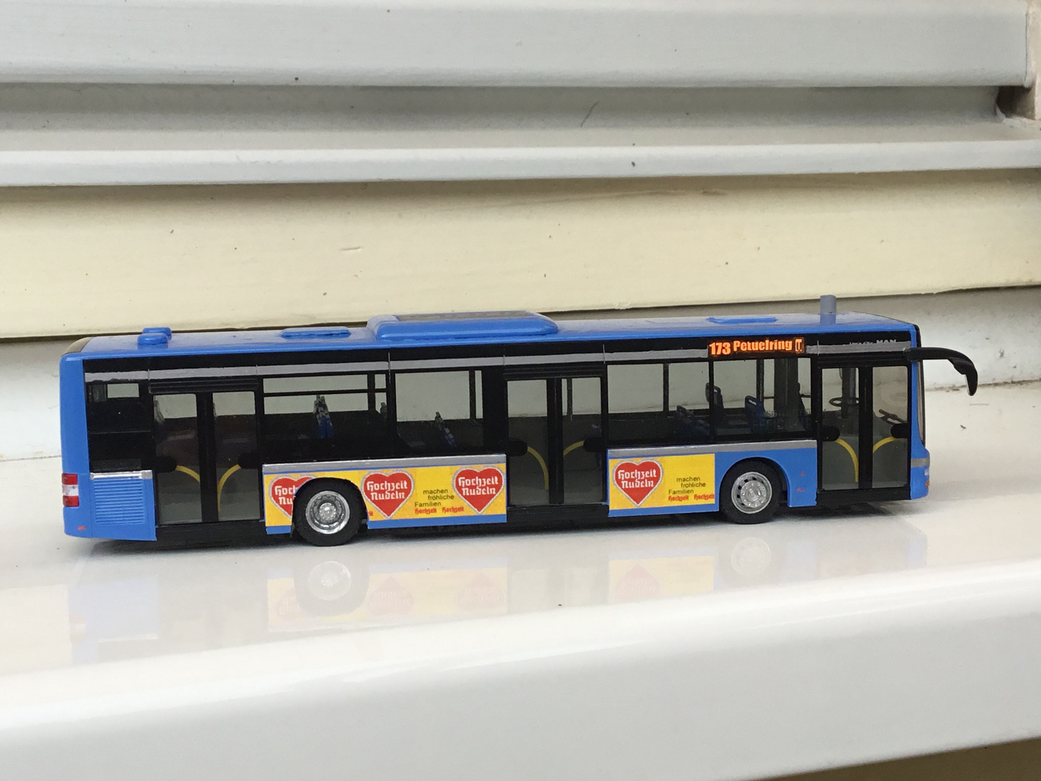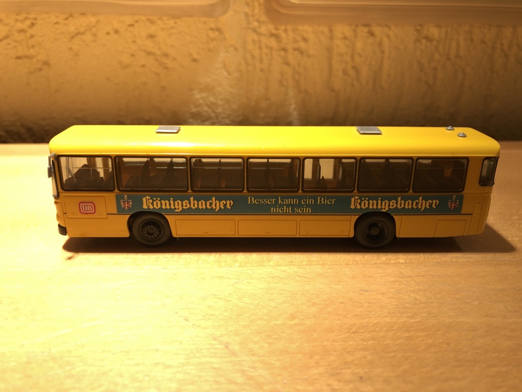 Von Herrn Wisotzki wurden diese Fotos eines MAN SÜ210 zur Verfügung gestellt. Werbung und Zielanzeiger stammen von RGModellbau, der Rest wurde vom Kunden besorgt. Basis das Modell von Herpa.