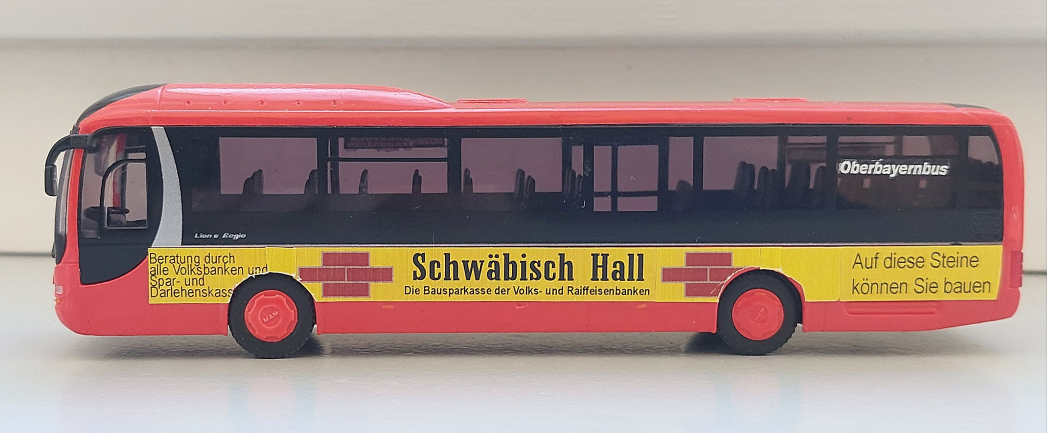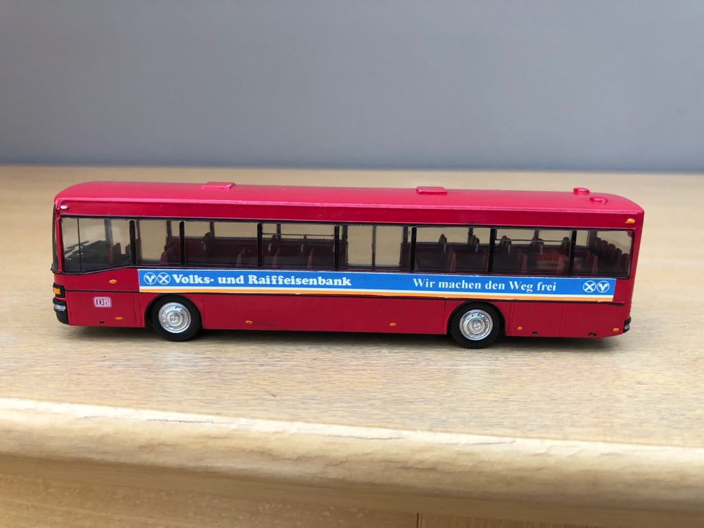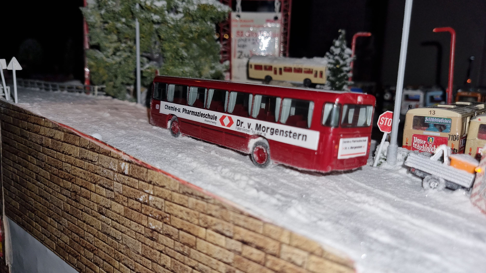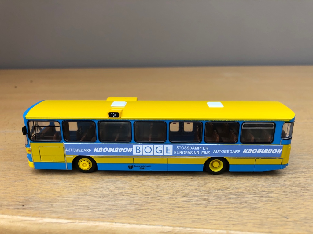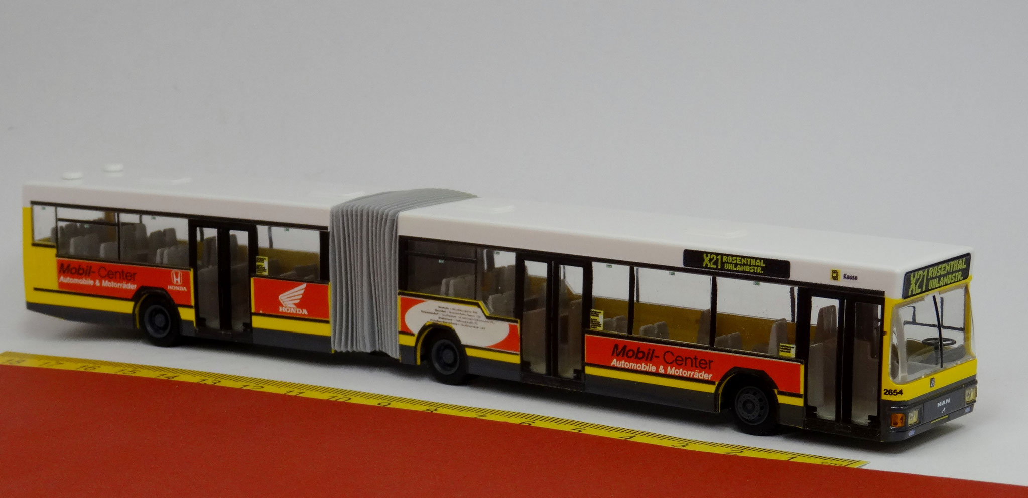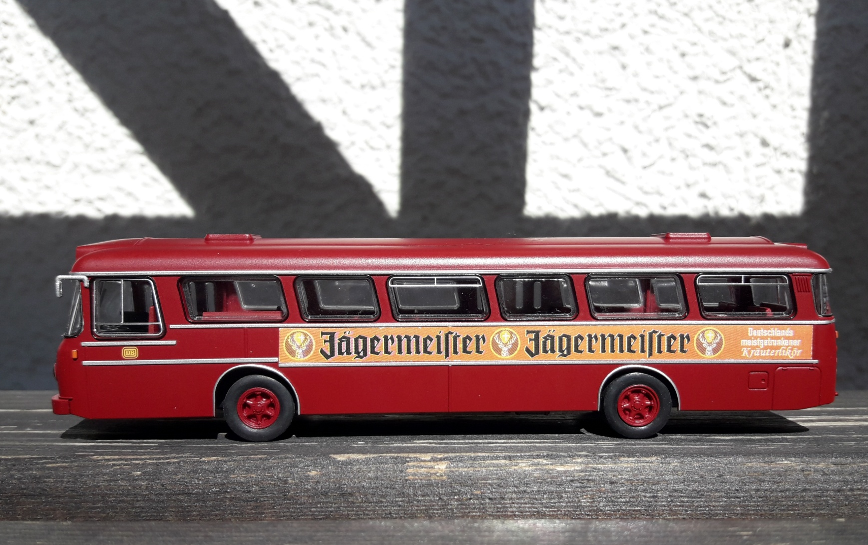 Von Herrn Wisotzki wurden diese Fotos eines MAN SÜ210 zur Verfügung gestellt. Werbung und Zielanzeiger stammen von RGModellbau, der Rest wurde vom Kunden besorgt. Basis das Modell von Herpa.