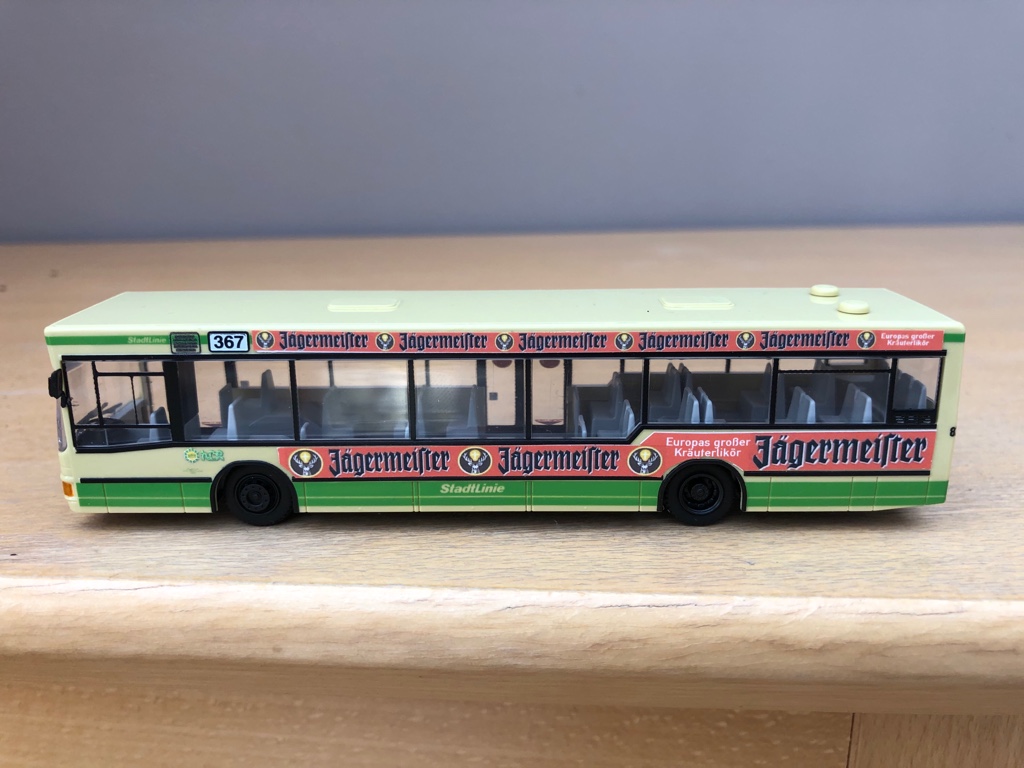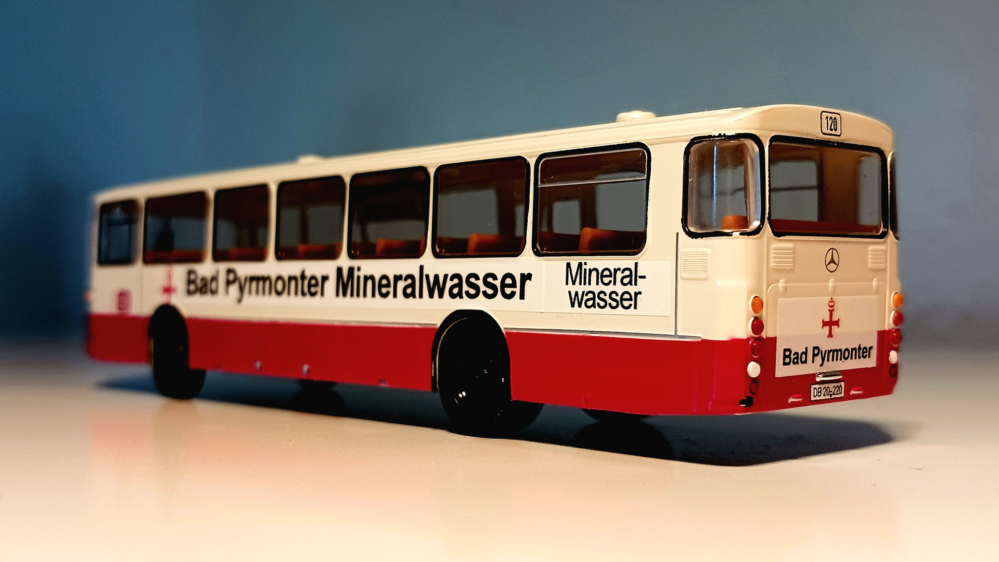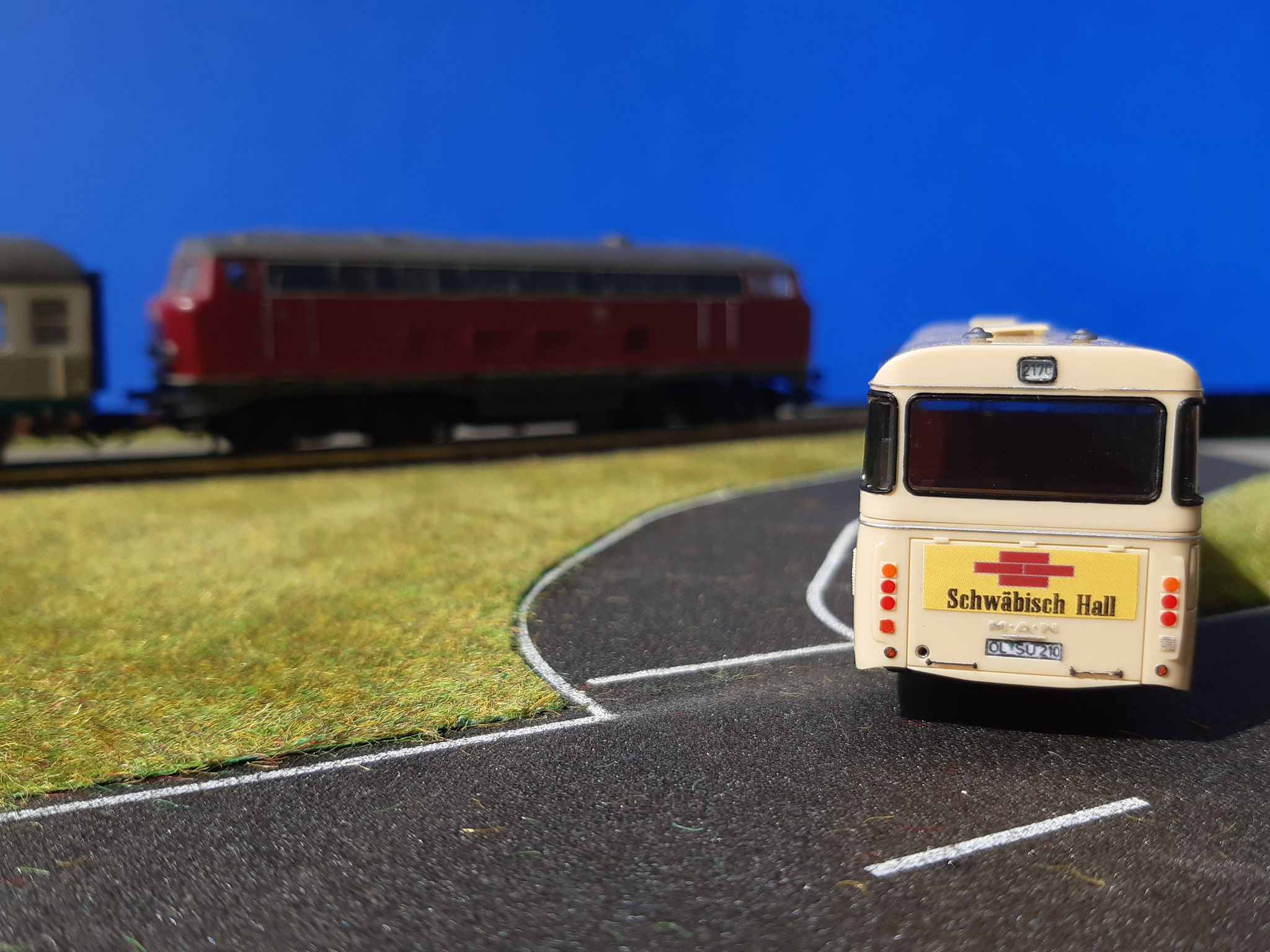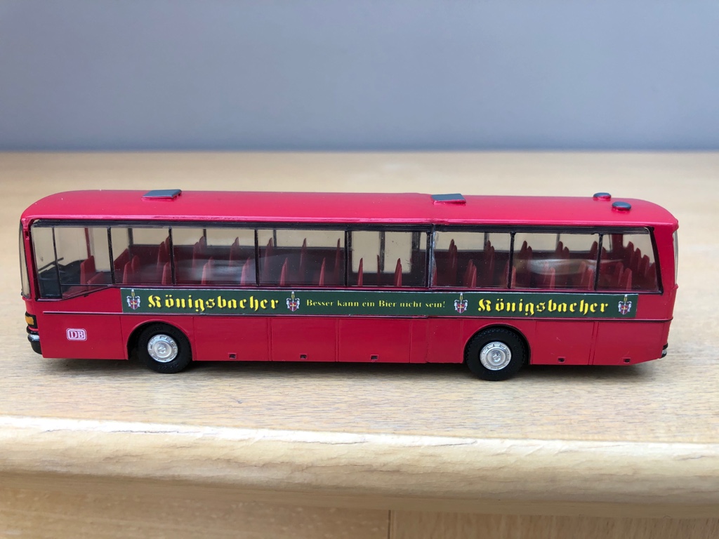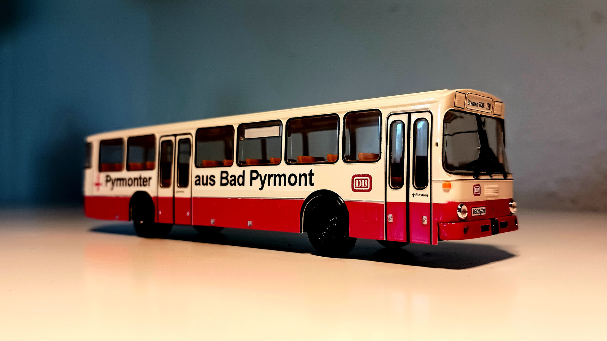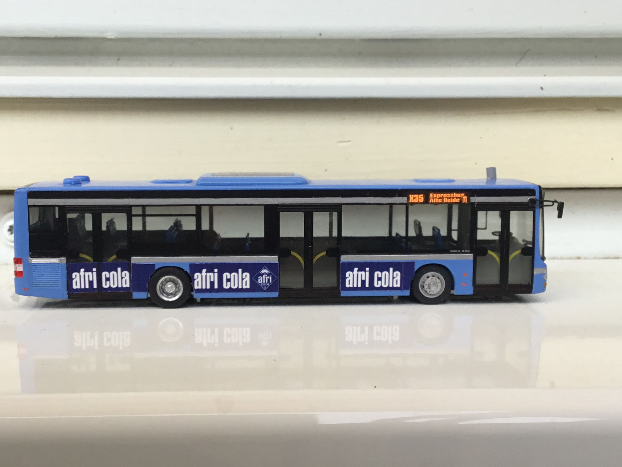 Von Herrn Wisotzki wurden diese Fotos eines MAN SÜ210 zur Verfügung gestellt. Werbung und Zielanzeiger stammen von RGModellbau, der Rest wurde vom Kunden besorgt. Basis das Modell von Herpa.