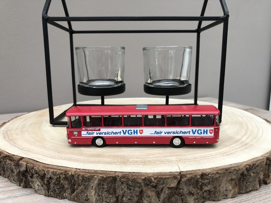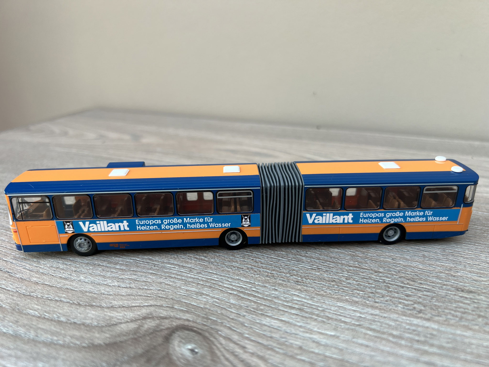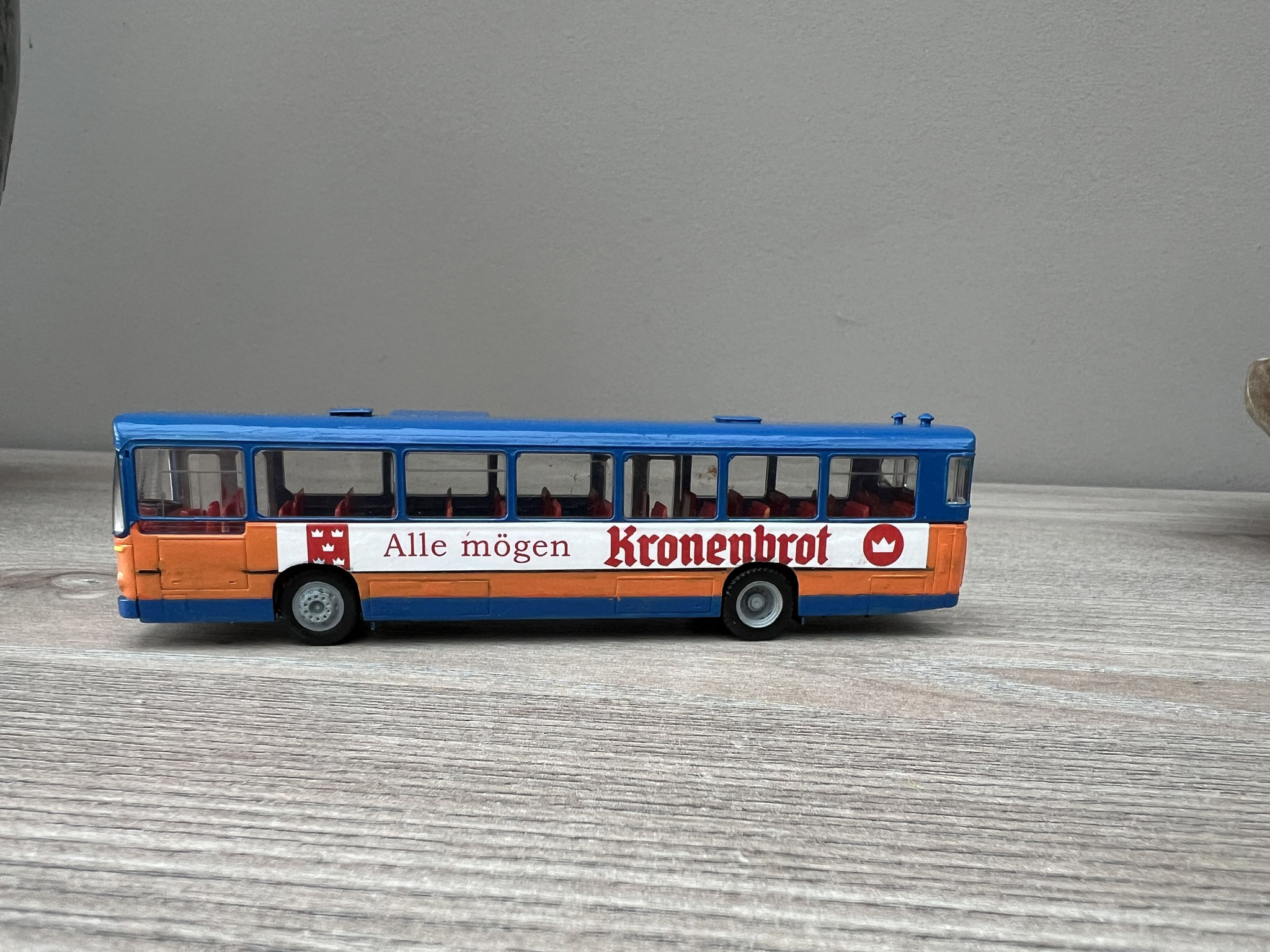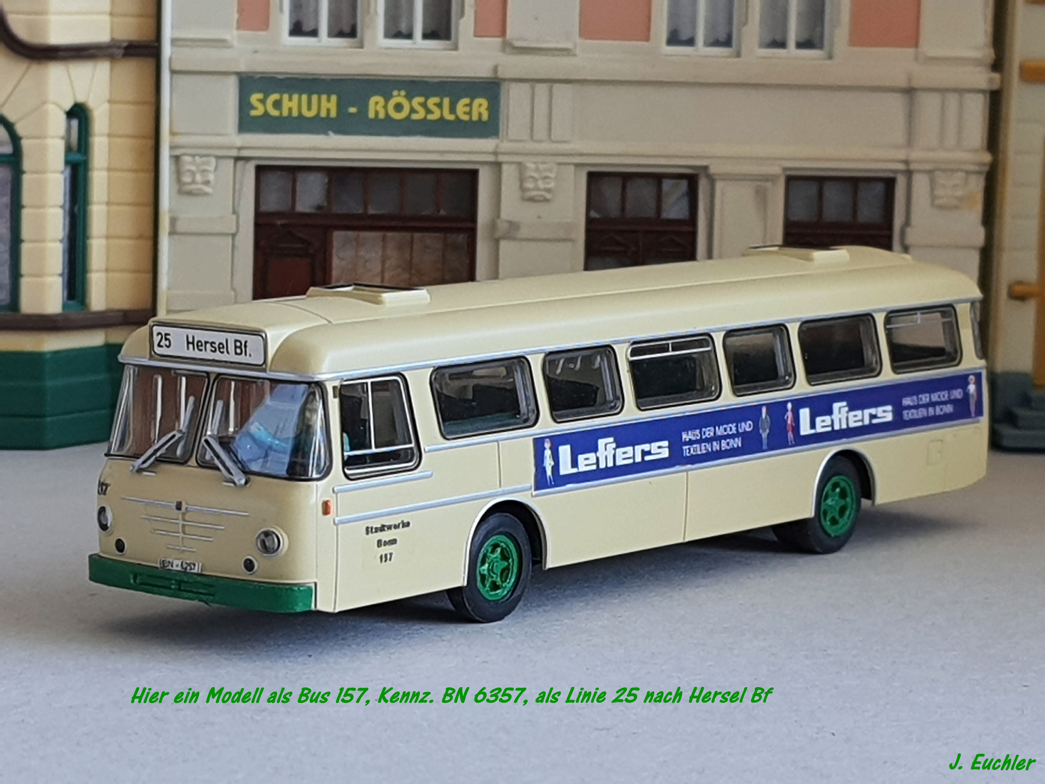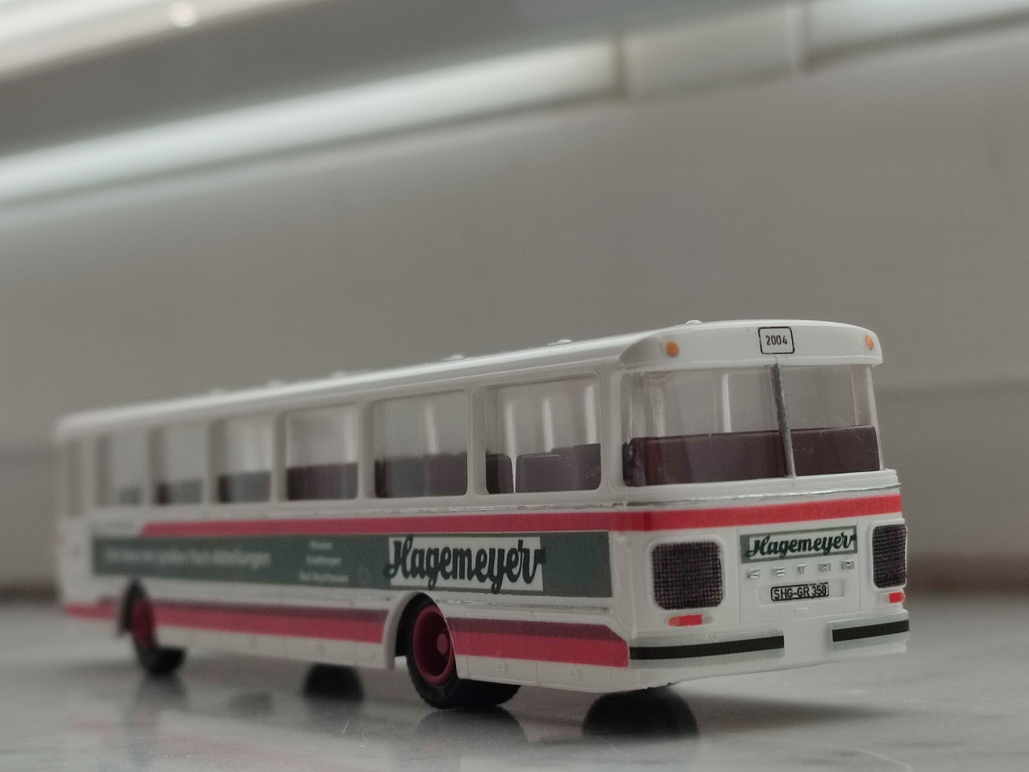 Von Herrn Wisotzki wurden diese Fotos eines MAN SÜ210 zur Verfügung gestellt. Werbung und Zielanzeiger stammen von RGModellbau, der Rest wurde vom Kunden besorgt. Basis das Modell von Herpa.