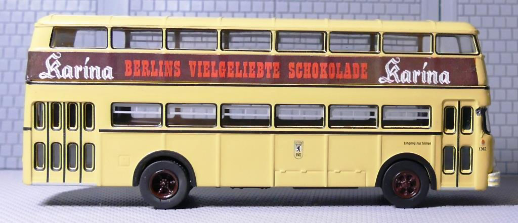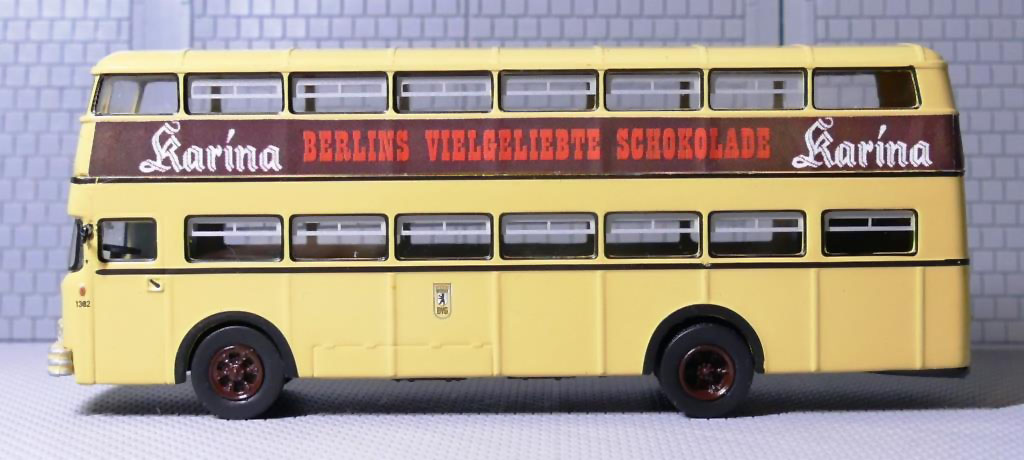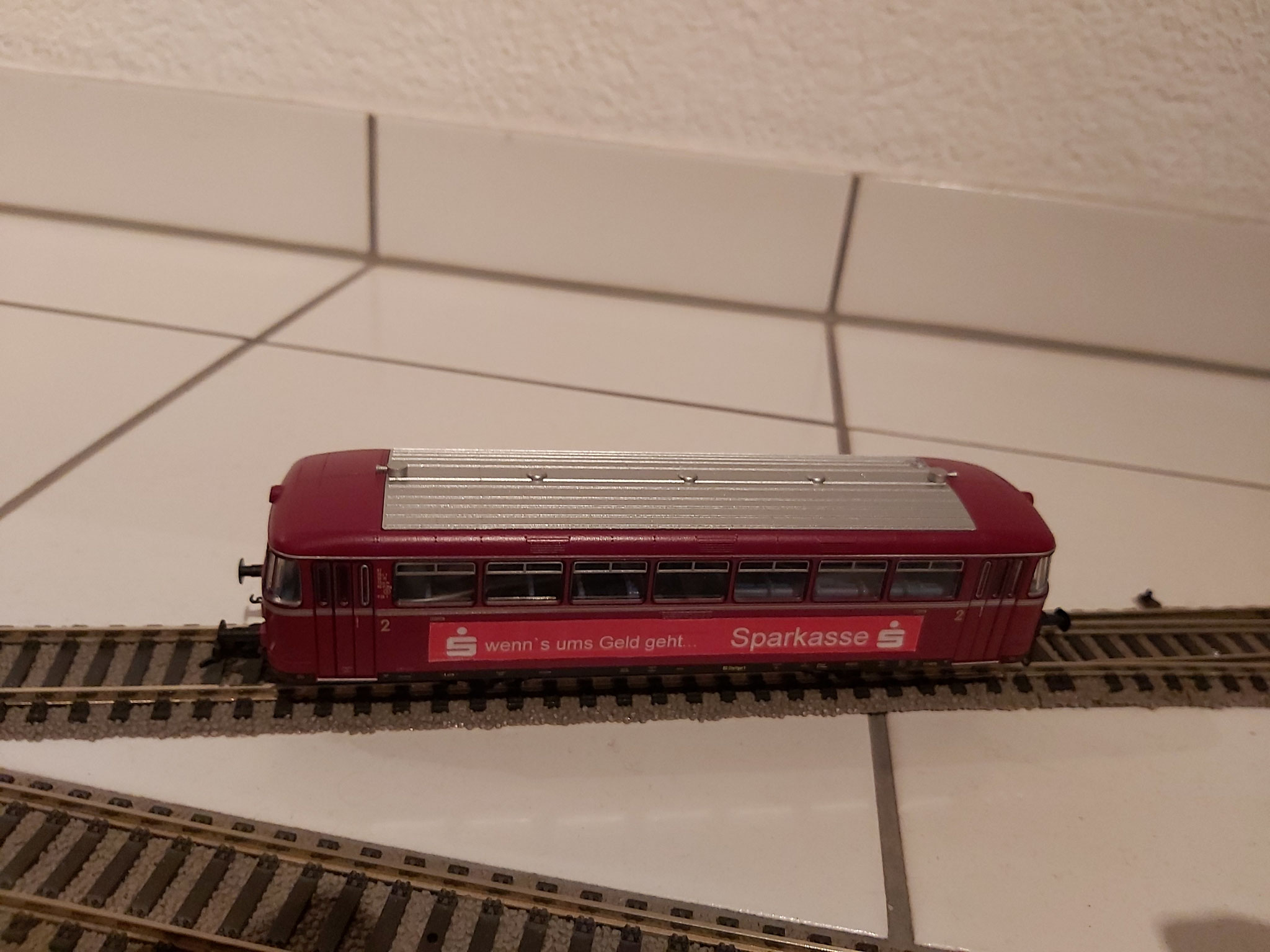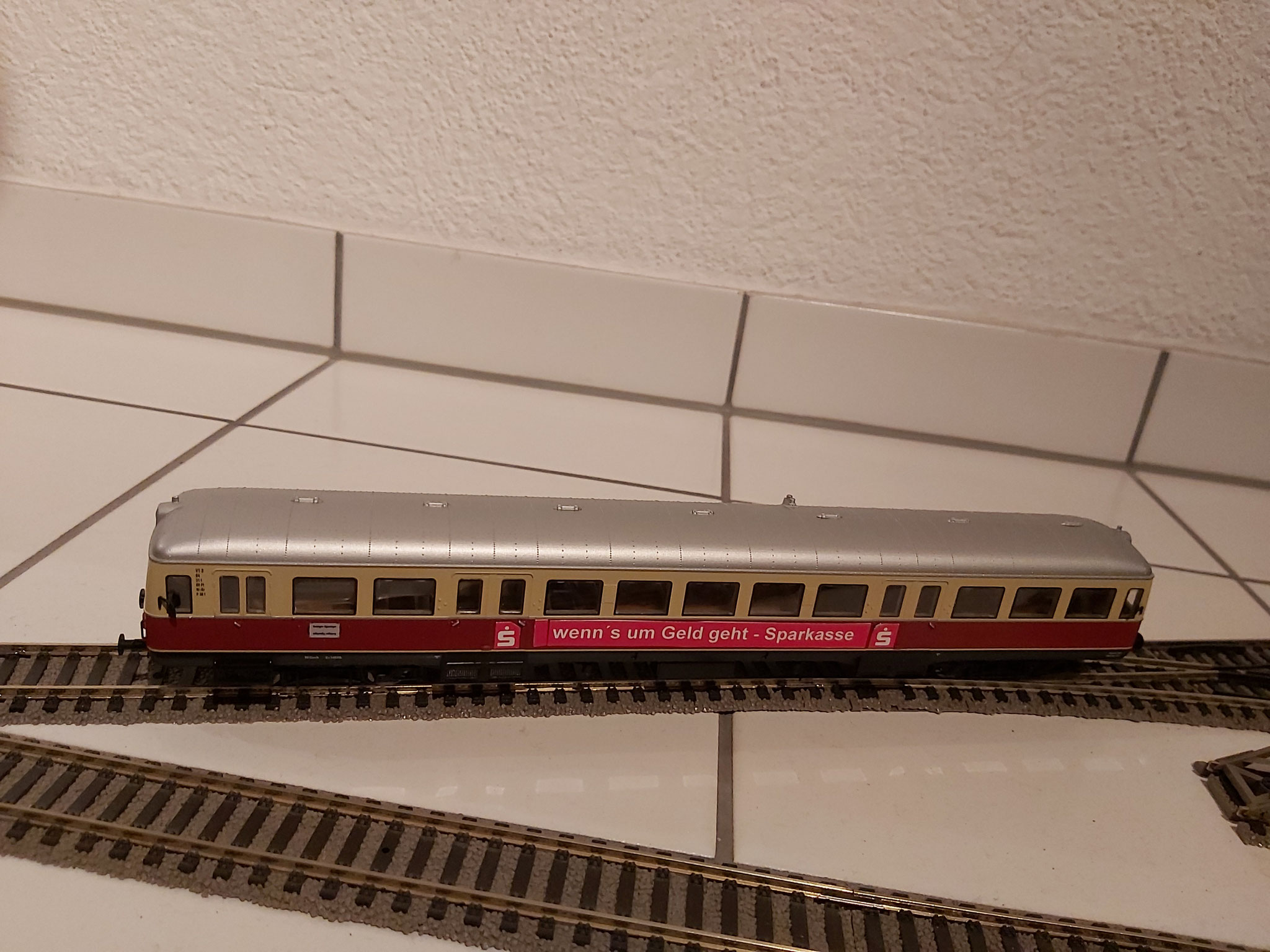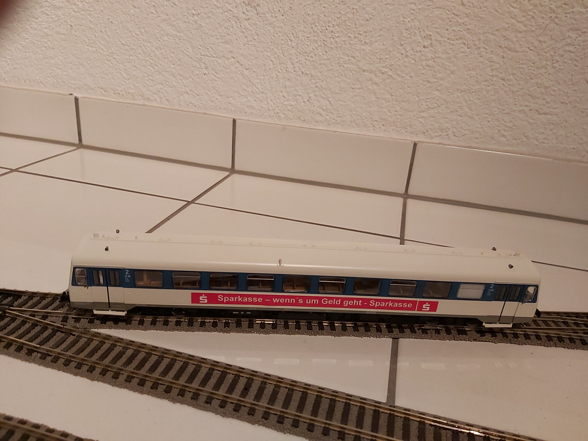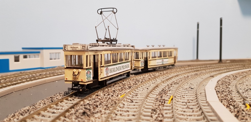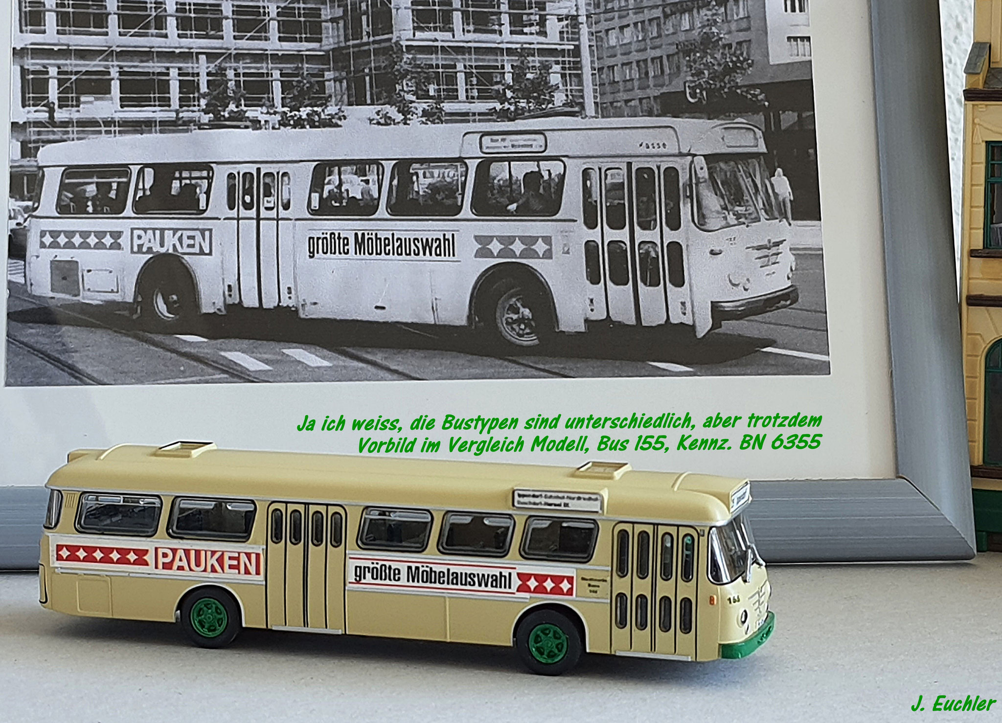 Jetzt ist der Wagen mit Laufwerk von pmt und Werbung und Beschriftung von RGModellbau doch noch fertig geworden, wobei man der heute nicht mehr ganz zeitgemäßen Verglasung das Alter der