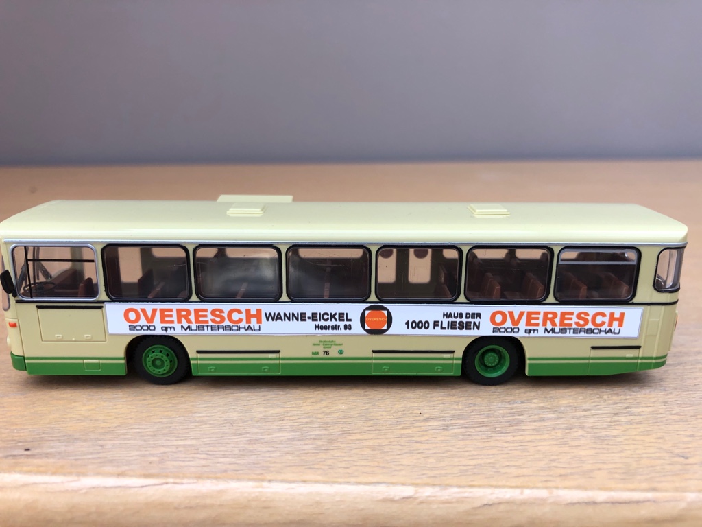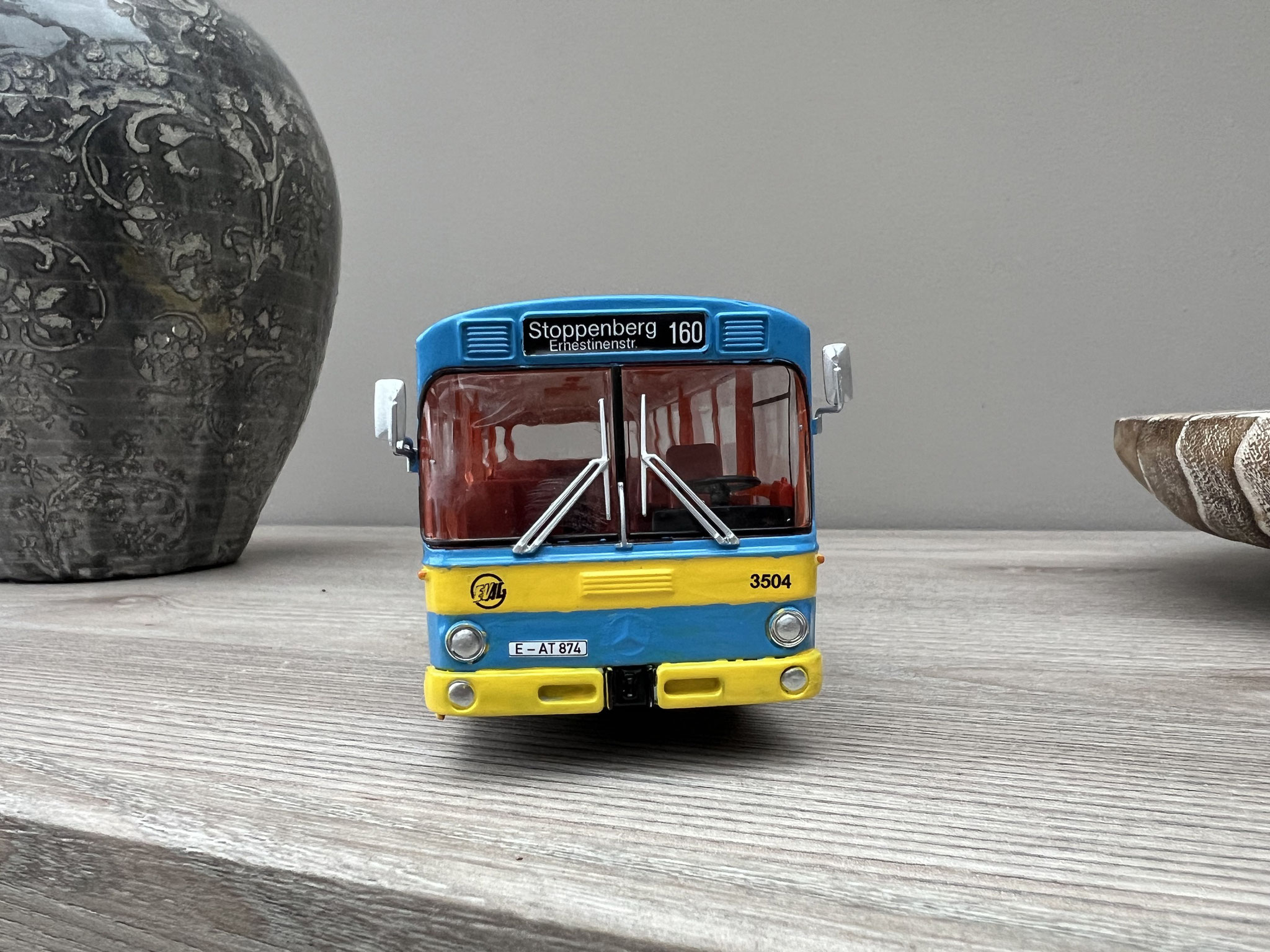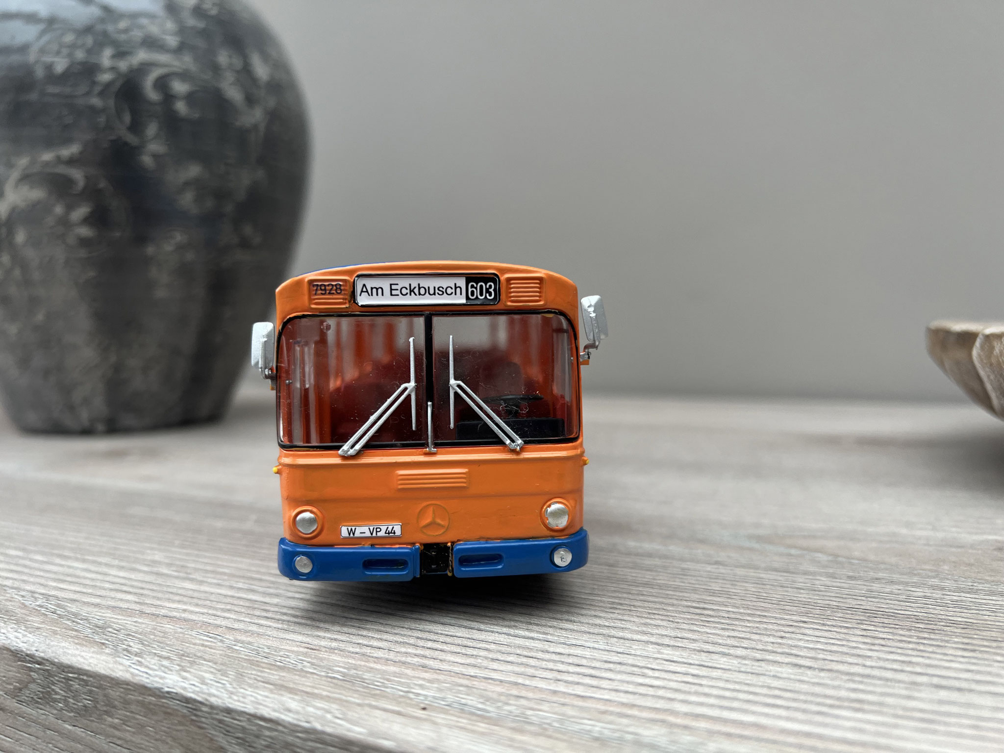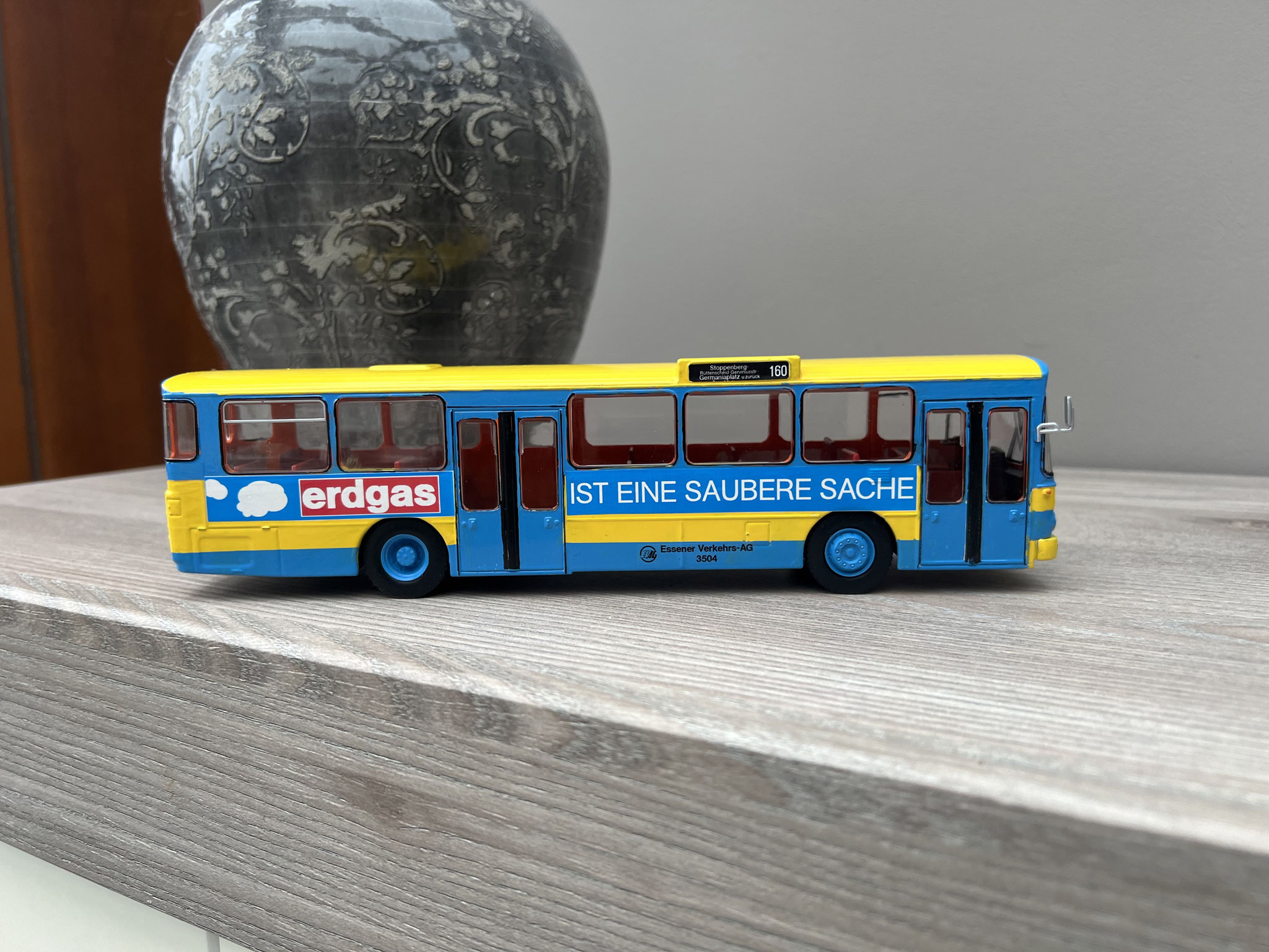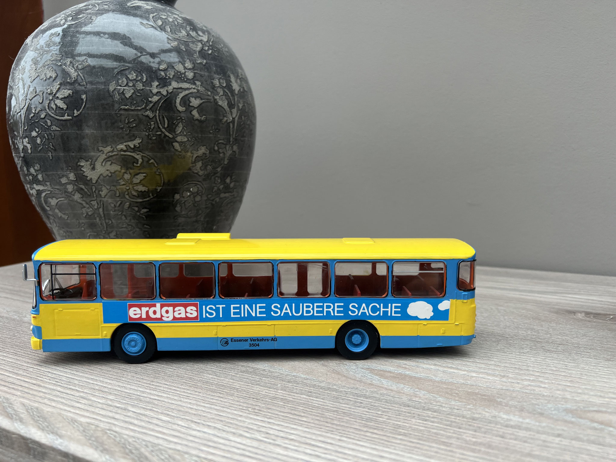 Im Maßstab 1:43 entstanden bei Herrn Steingroever zwei MB O305 nach Essener und Wuppertaler Vorbild auf Basis des IXO Modell. Werbung , Beschriftung und Kennzeichen entstanden bei RGModellbau.