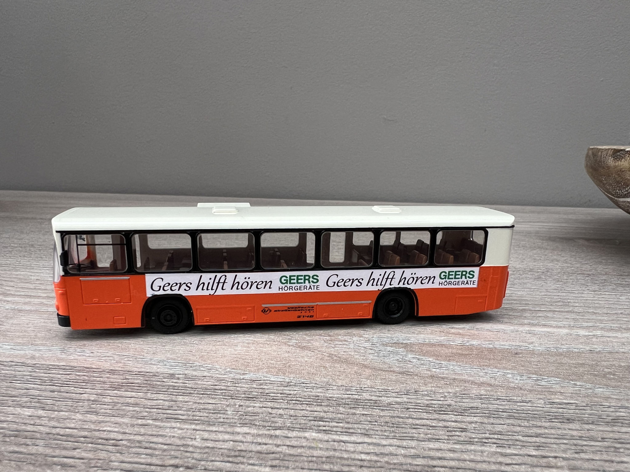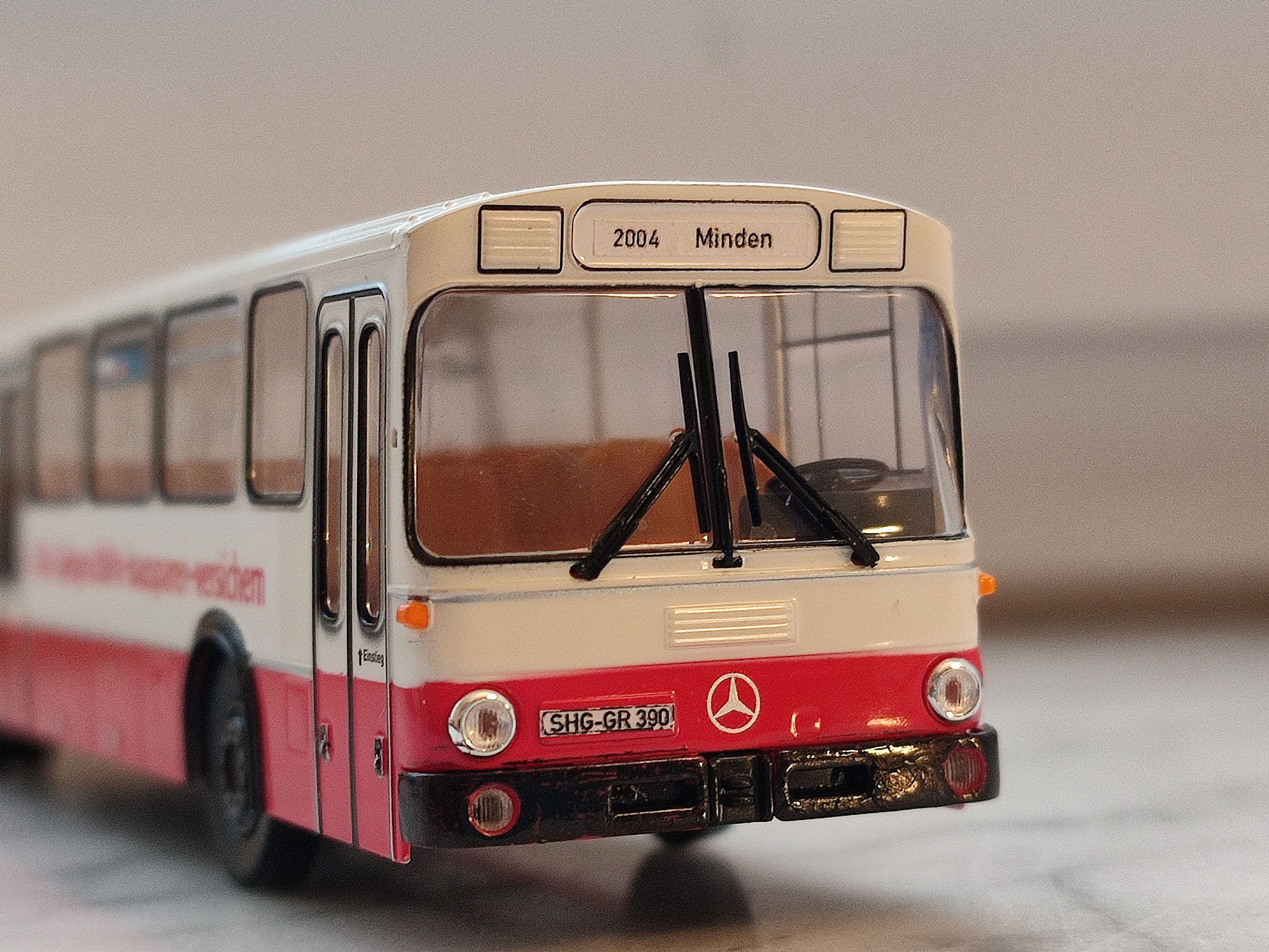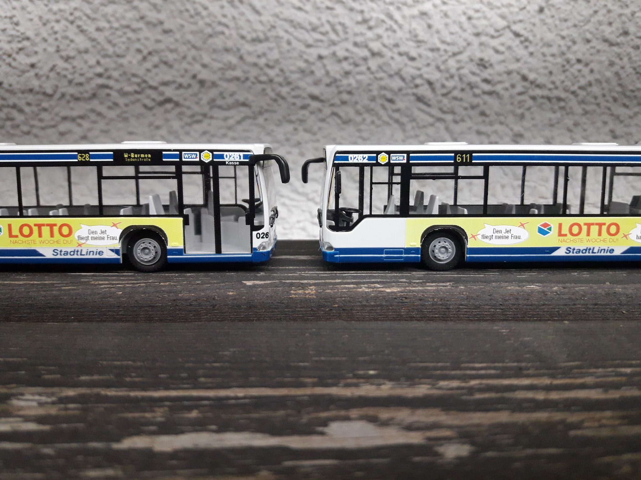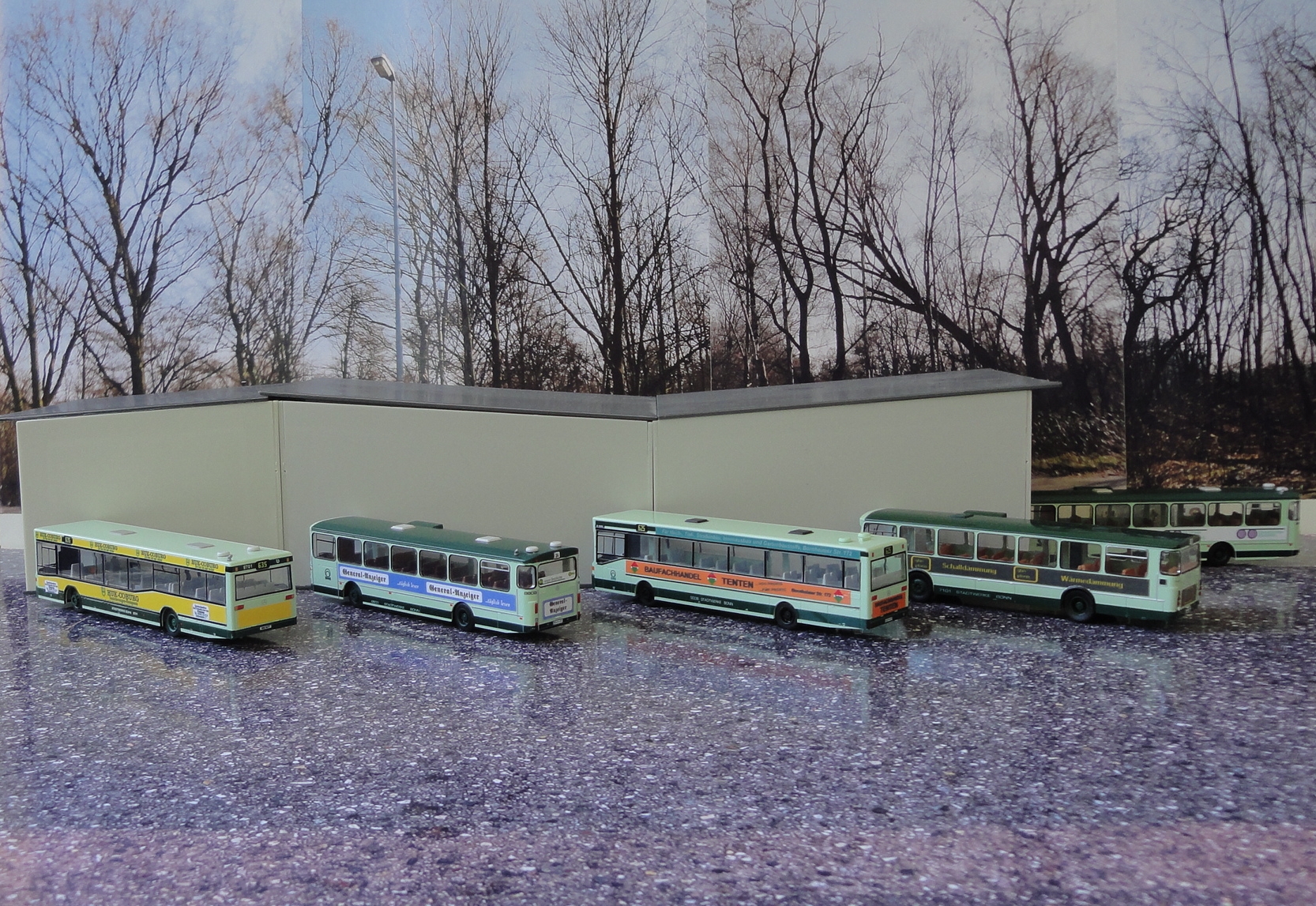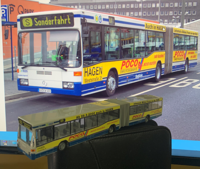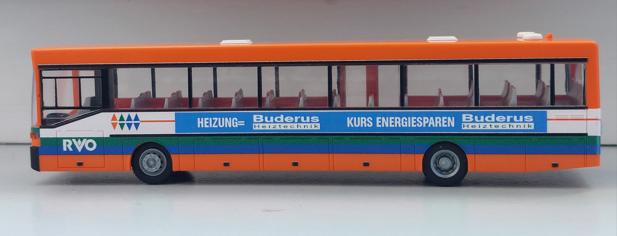 Im Maßstab 1:43 entstanden bei Herrn Steingroever zwei MB O305 nach Essener und Wuppertaler Vorbild auf Basis des IXO Modell. Werbung , Beschriftung und Kennzeichen entstanden bei RGModellbau.