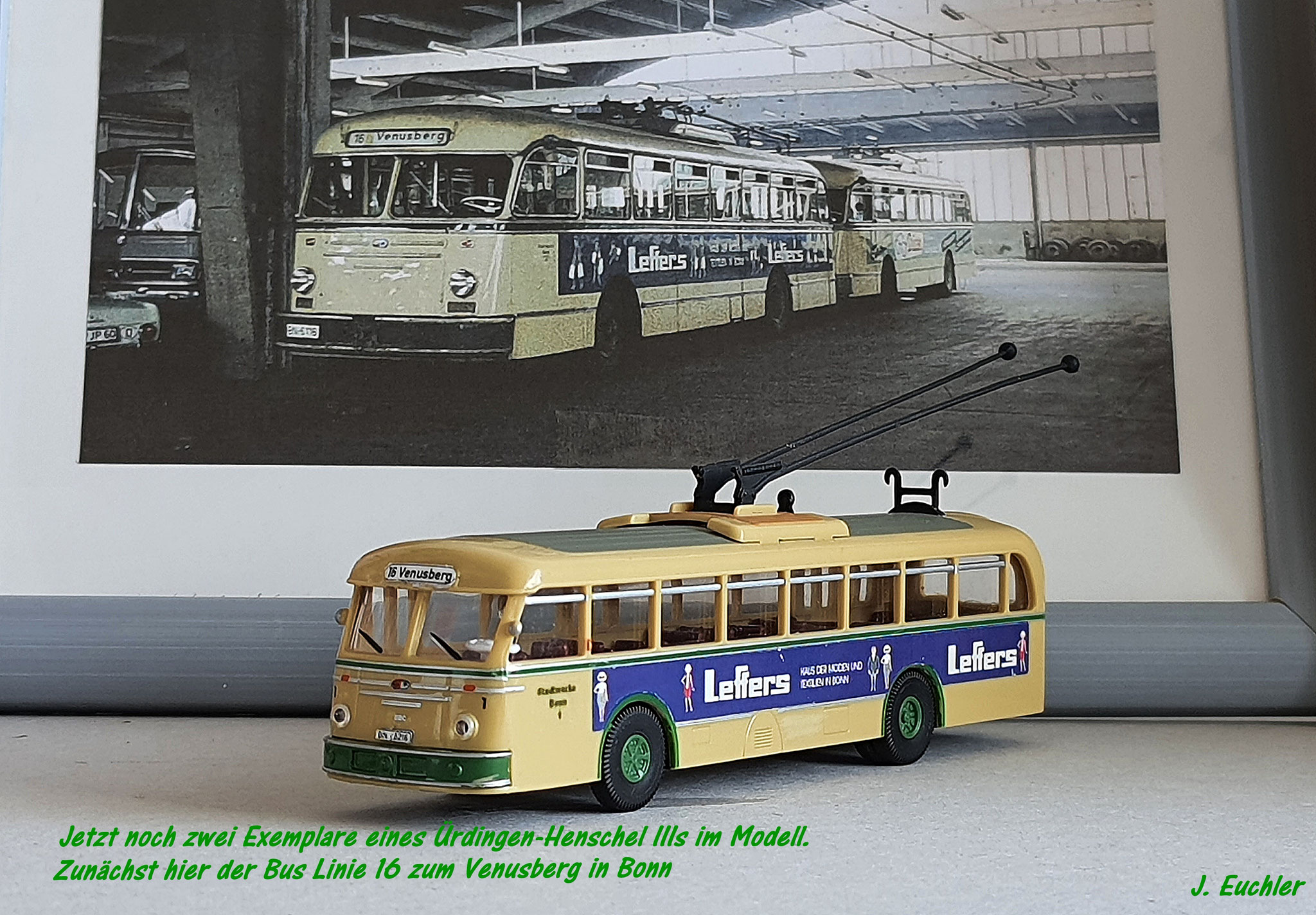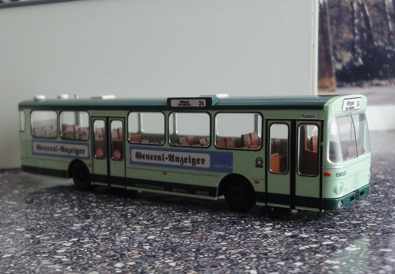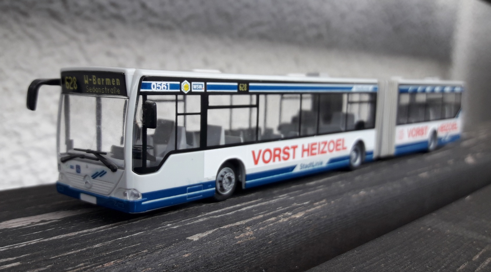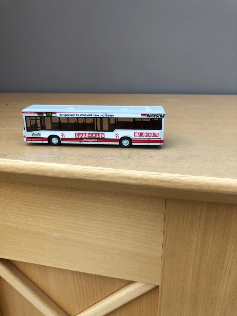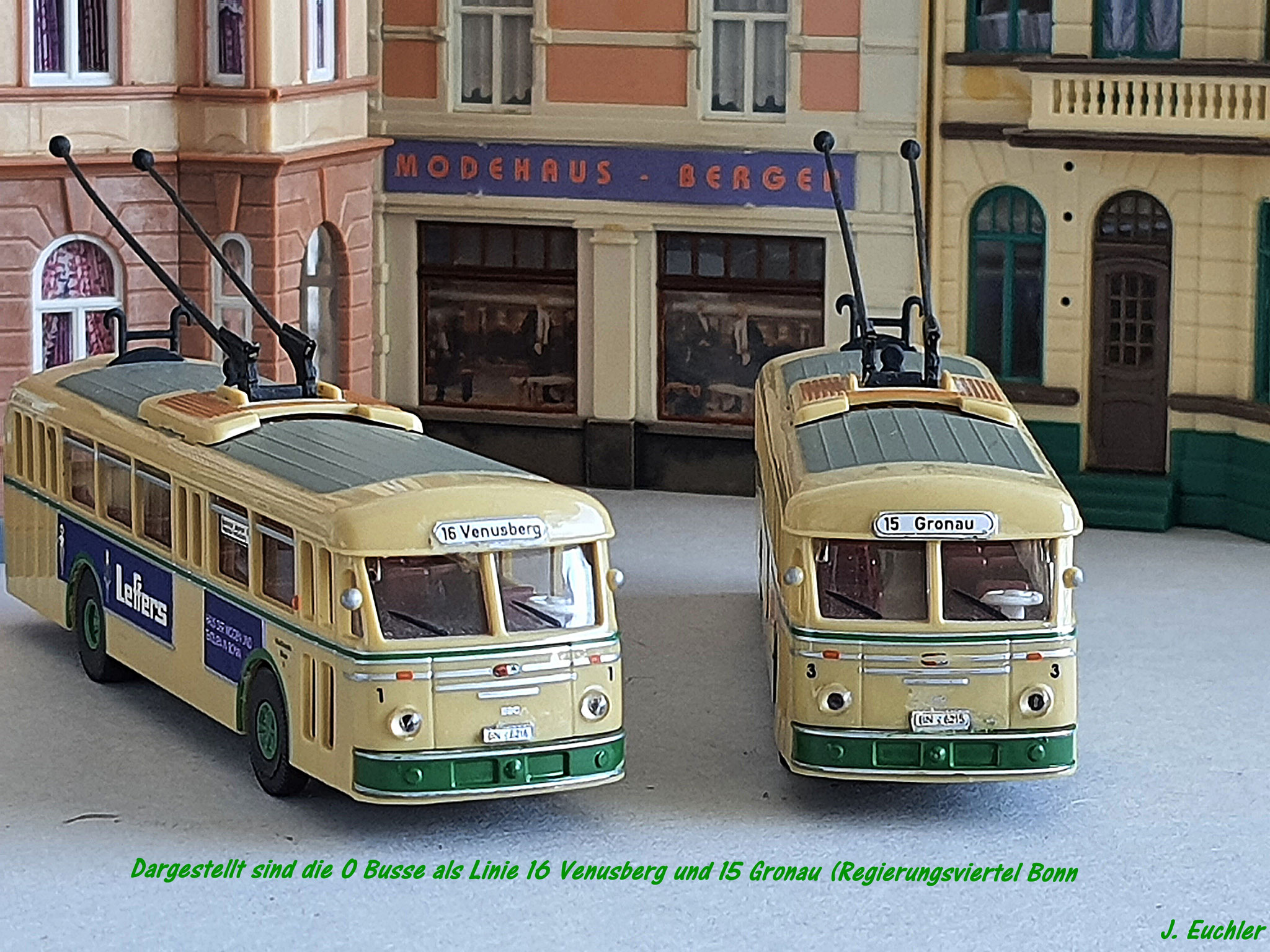 Im Maßstab 1:43 entstanden bei Herrn Steingroever zwei MB O305 nach Essener und Wuppertaler Vorbild auf Basis des IXO Modell. Werbung , Beschriftung und Kennzeichen entstanden bei RGModellbau.