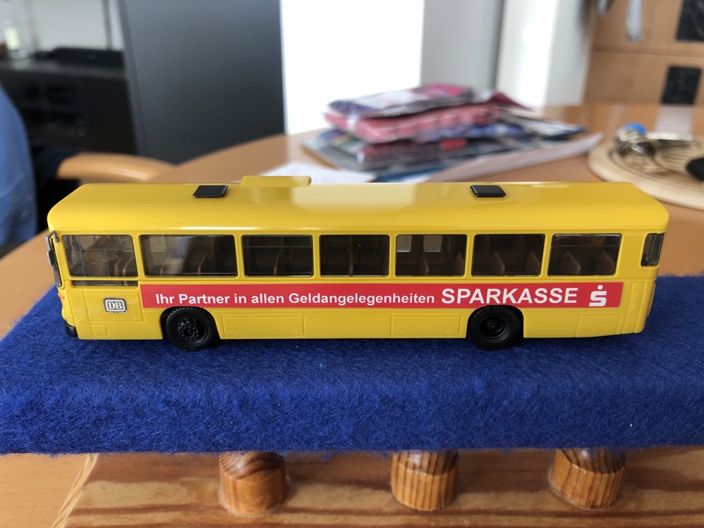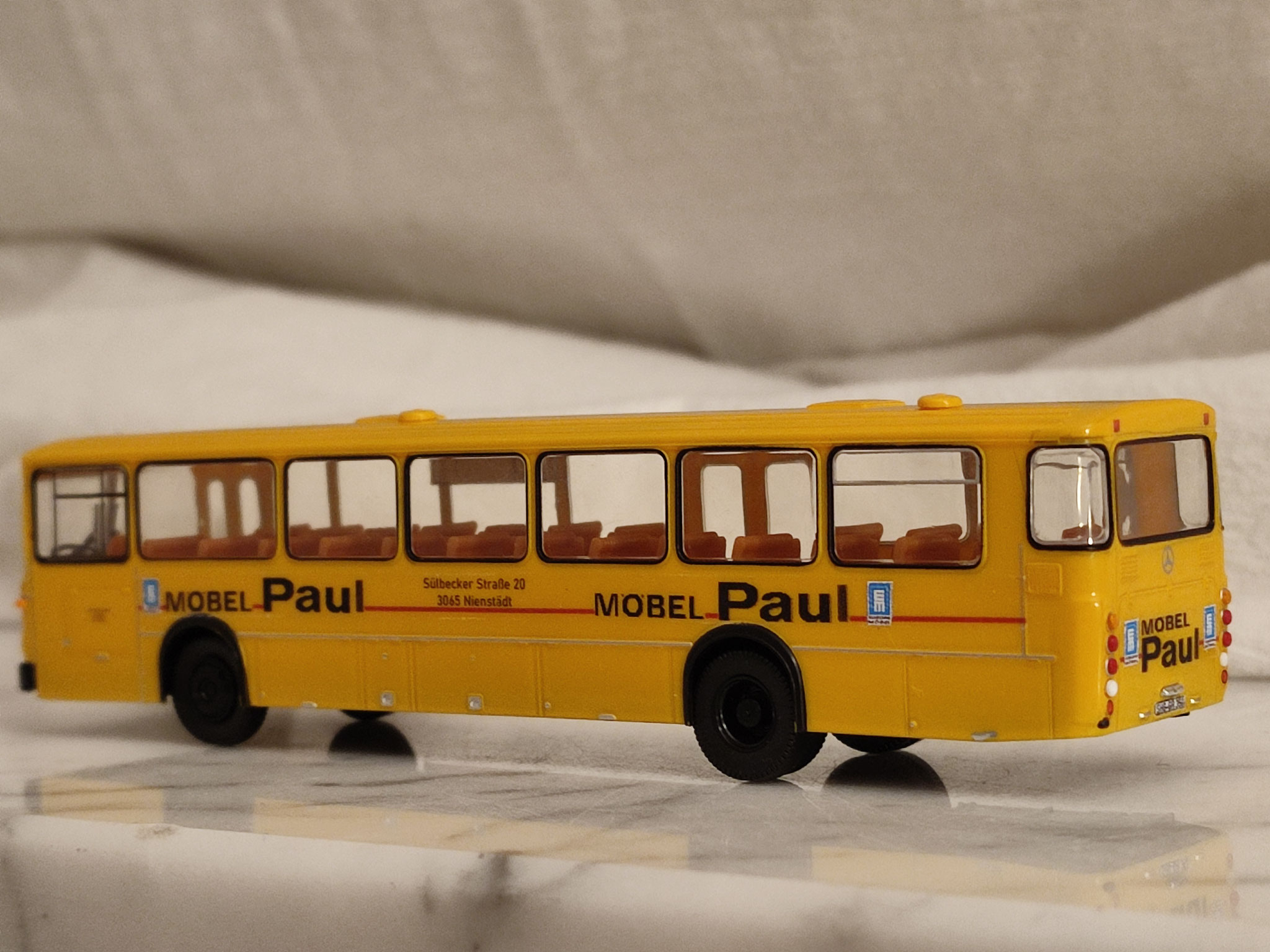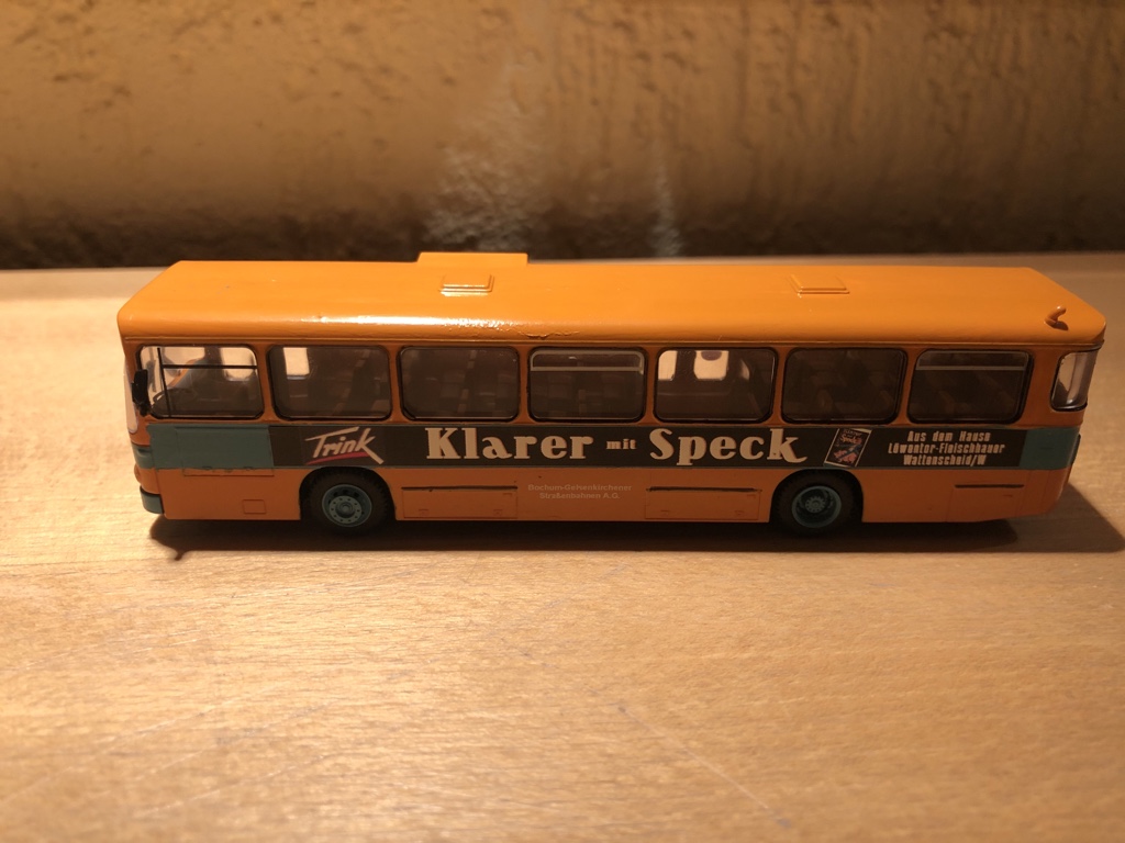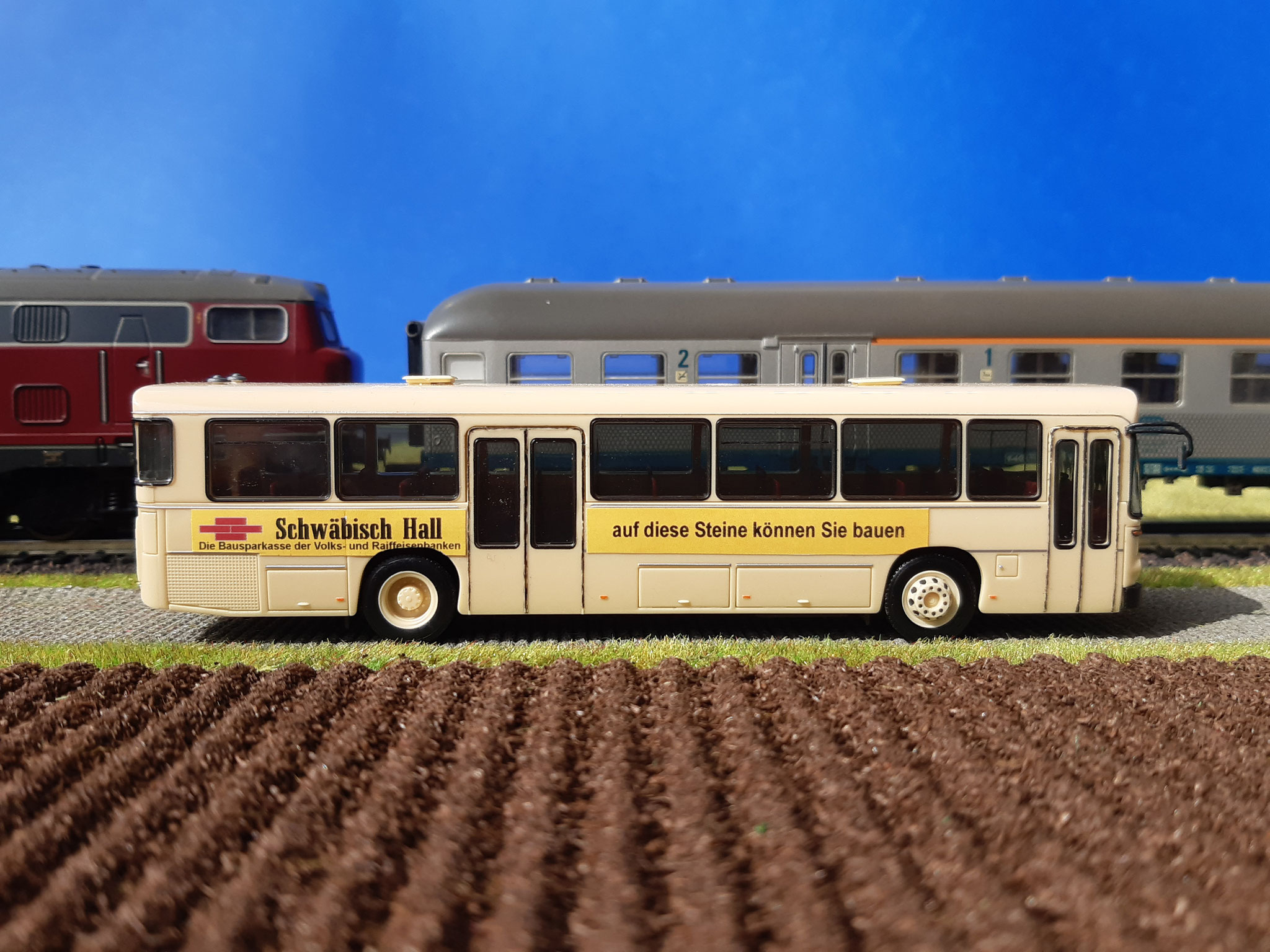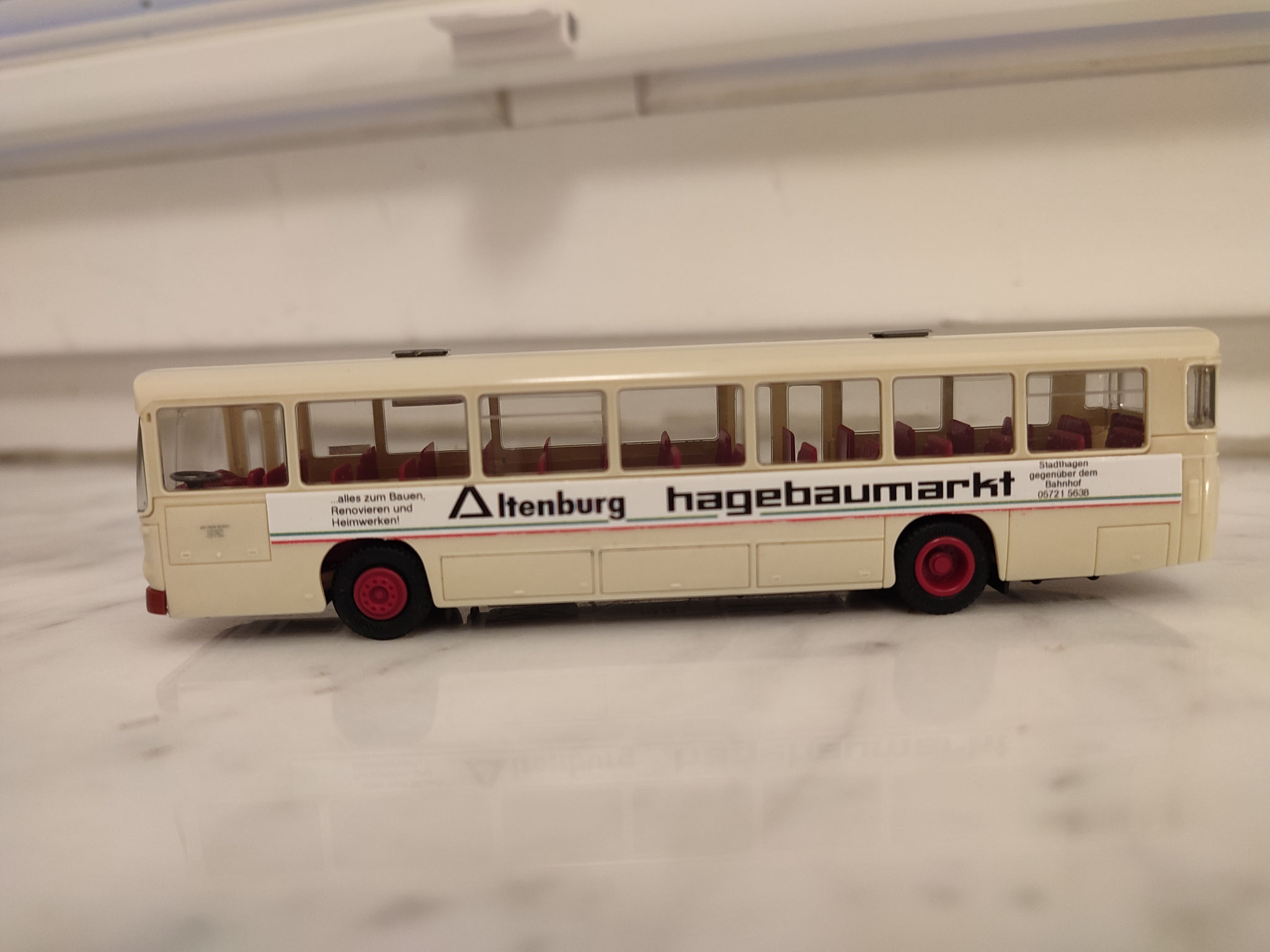 Für Herrn Hellmund entstand auf Basis des MB O407 von Rietze die Marktkaufwerbung. Das Fahrzeug wurde zusätzlich passend lackiert und von mir stammt nur die Werbung selber.