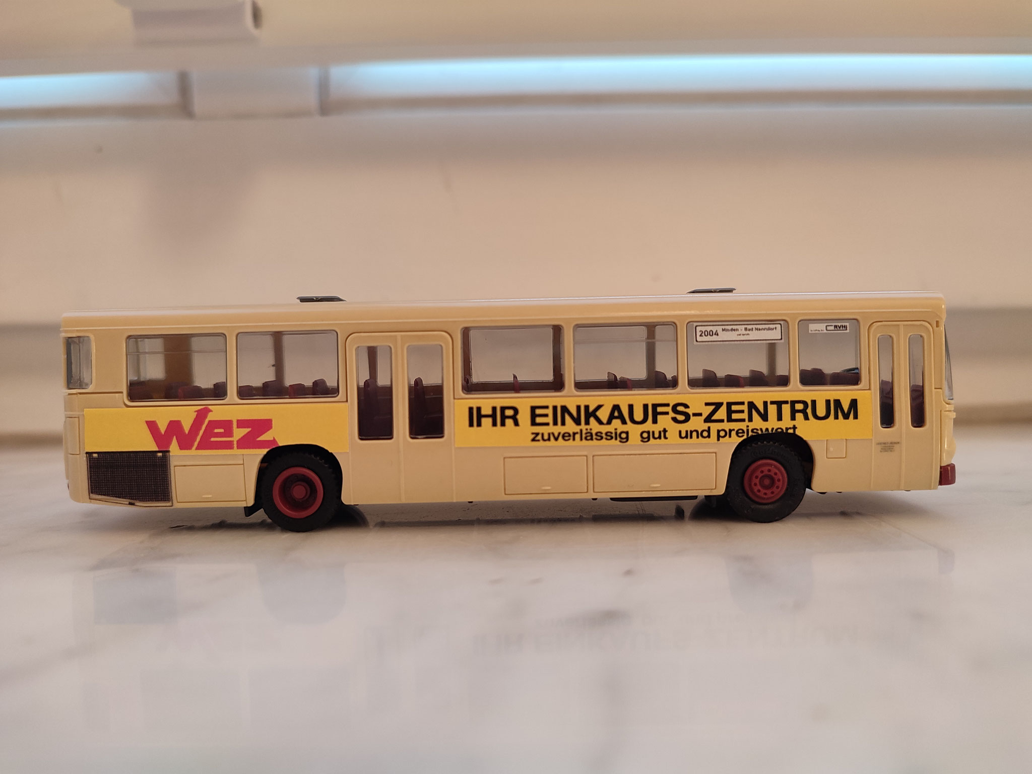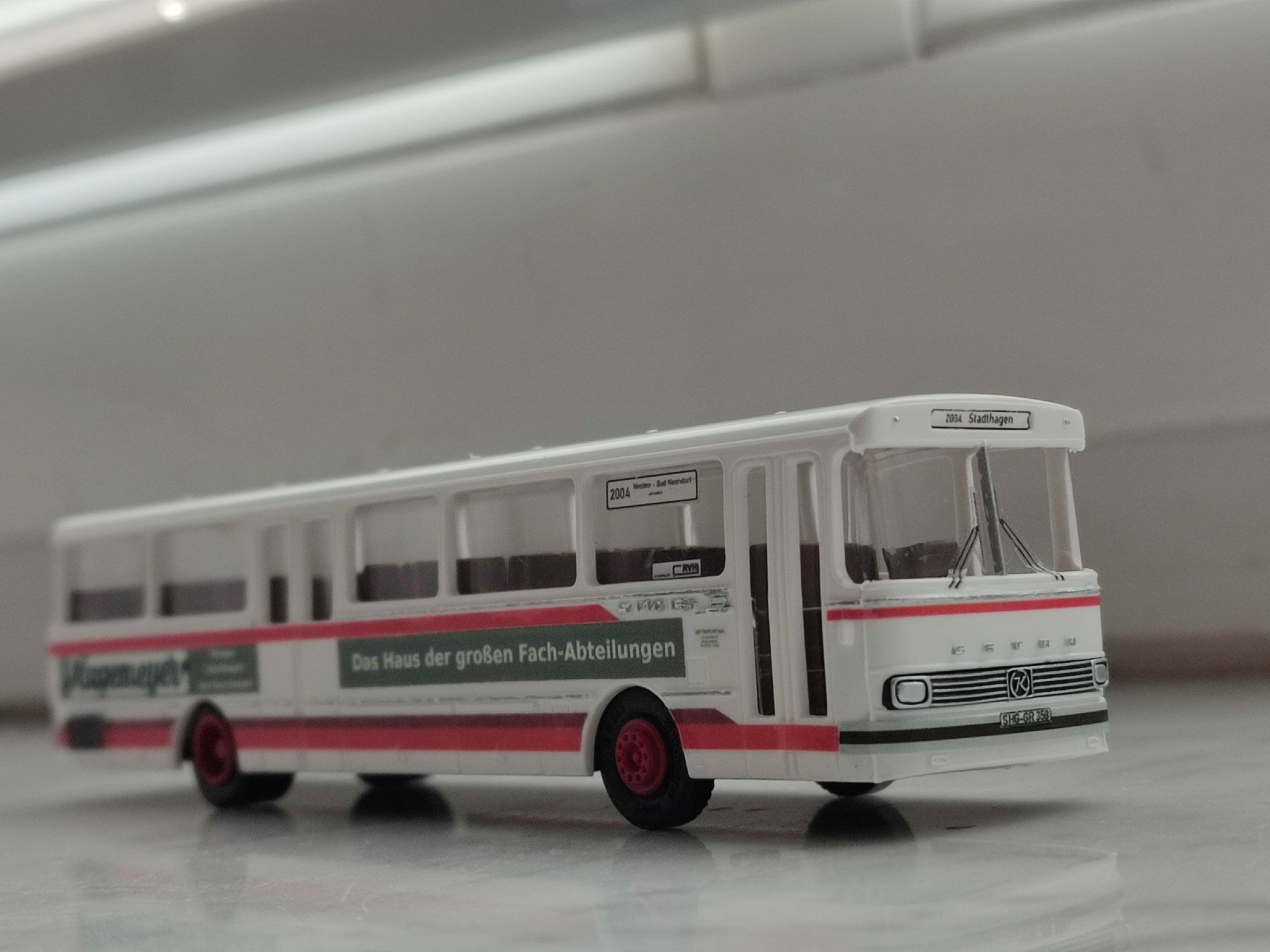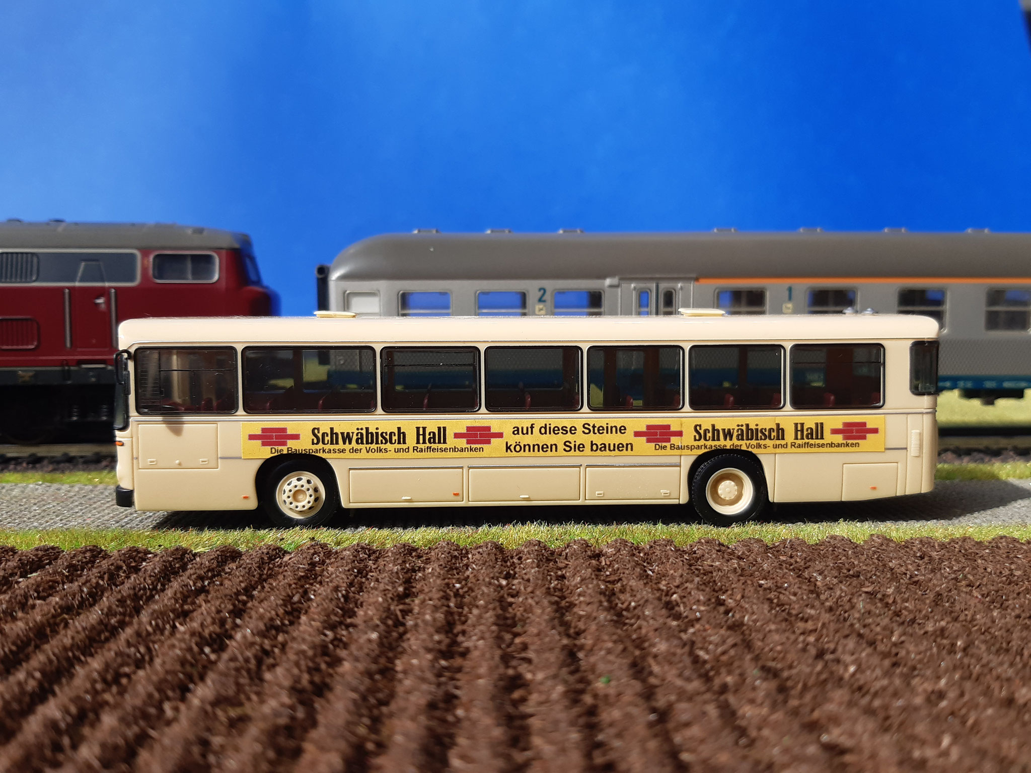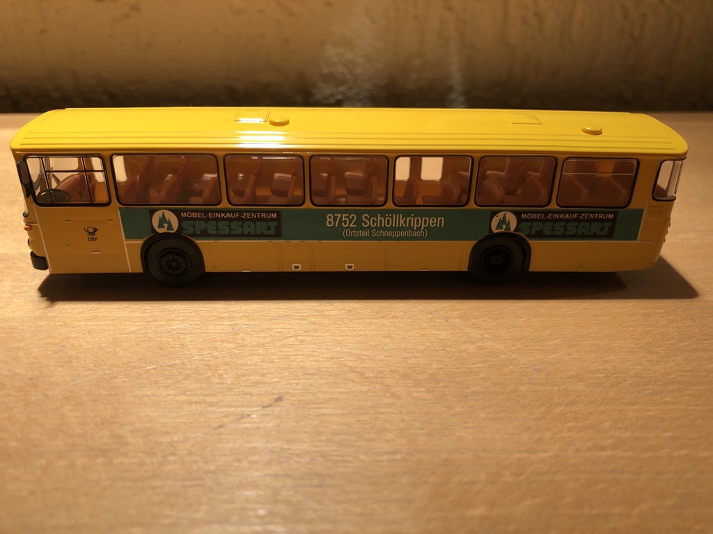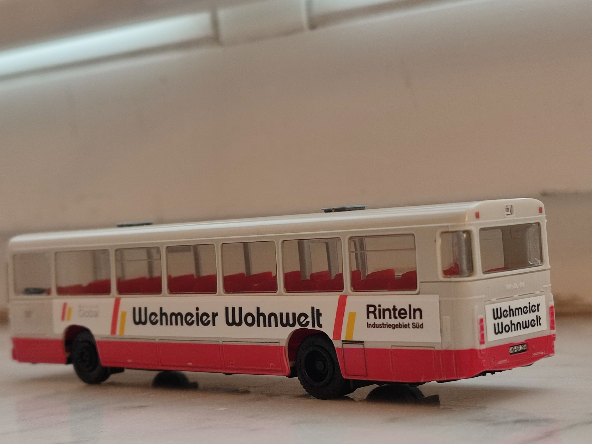 Für Herrn Hellmund entstand auf Basis des MB O407 von Rietze die Marktkaufwerbung. Das Fahrzeug wurde zusätzlich passend lackiert und von mir stammt nur die Werbung selber.