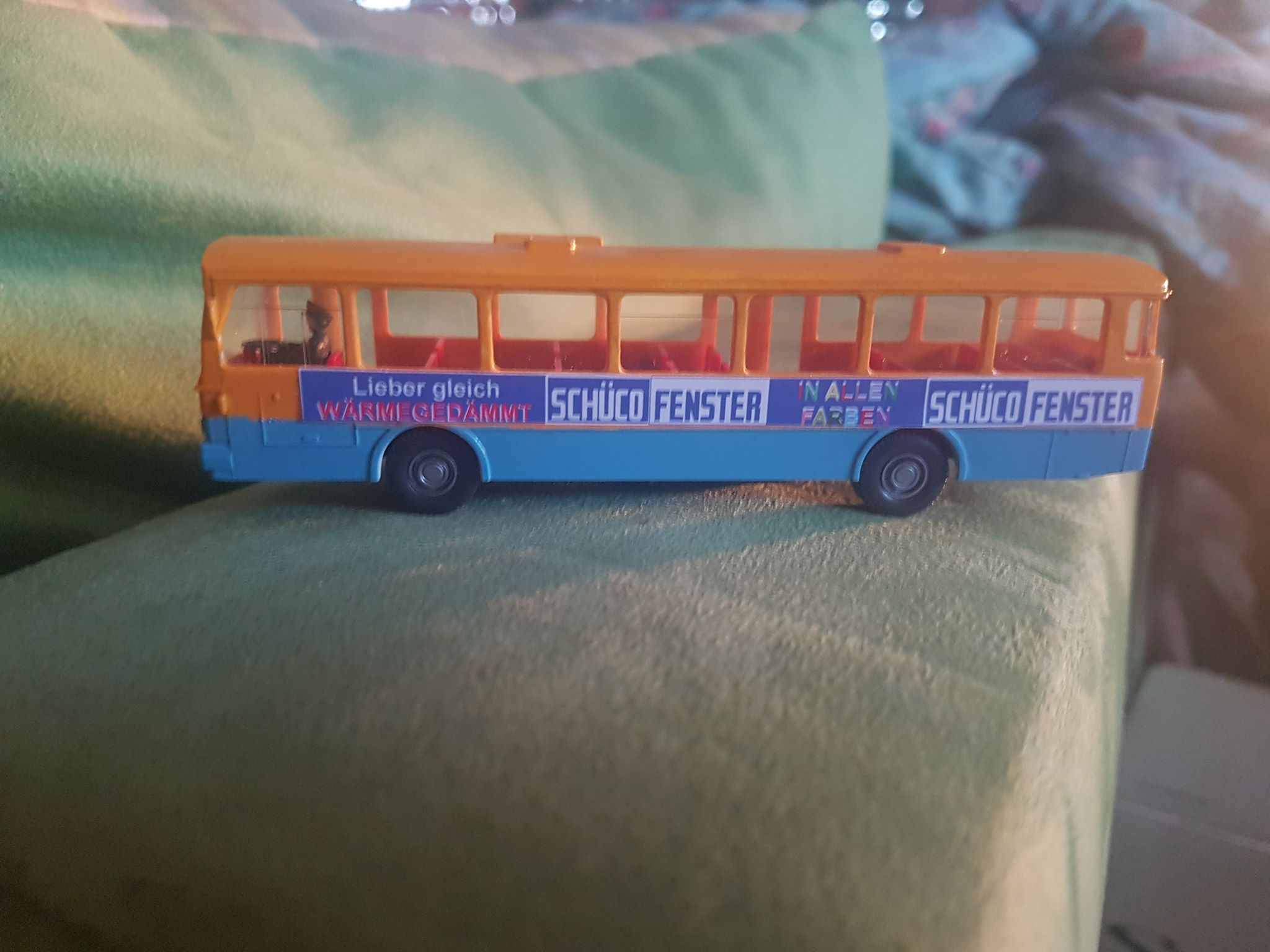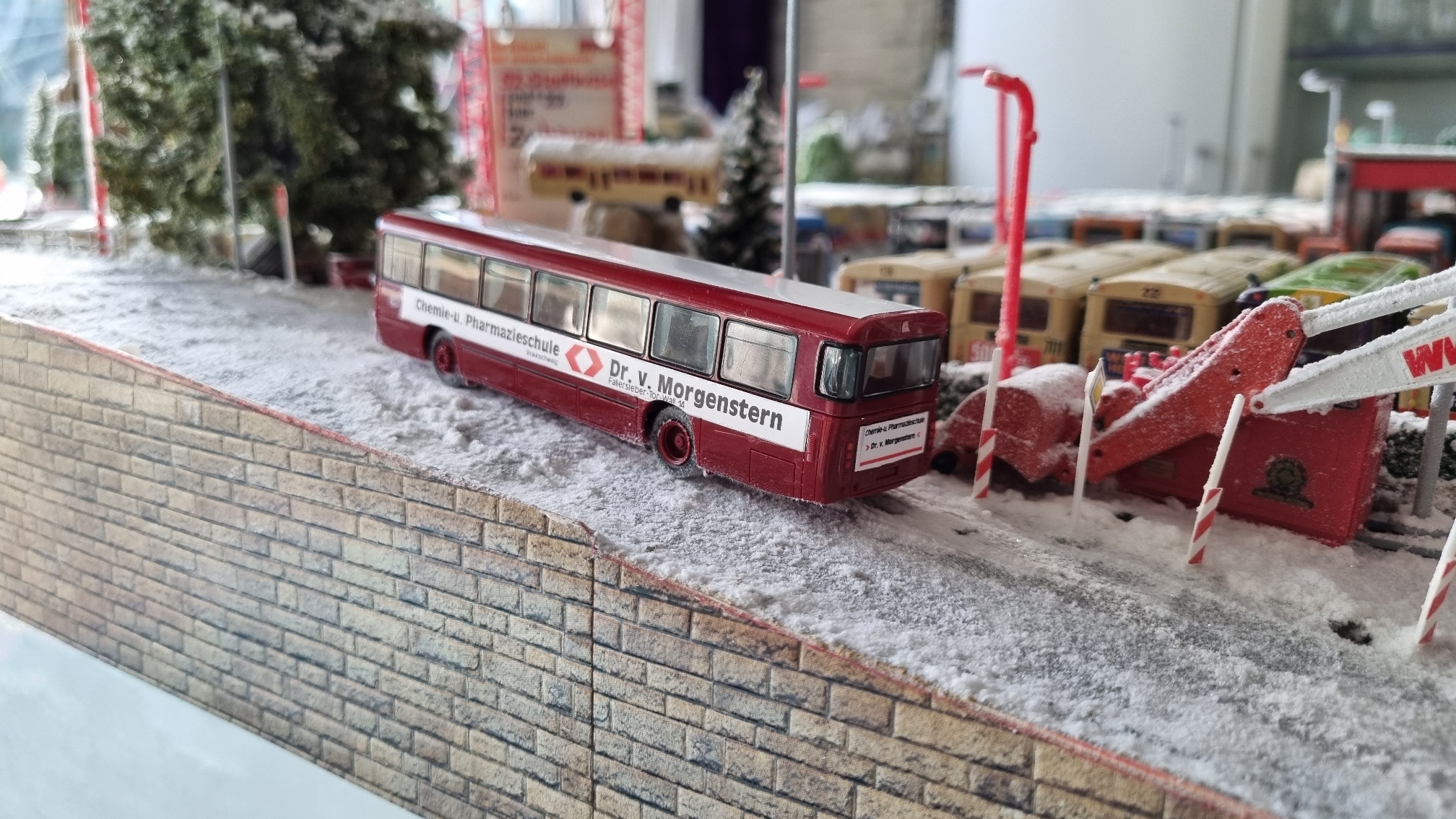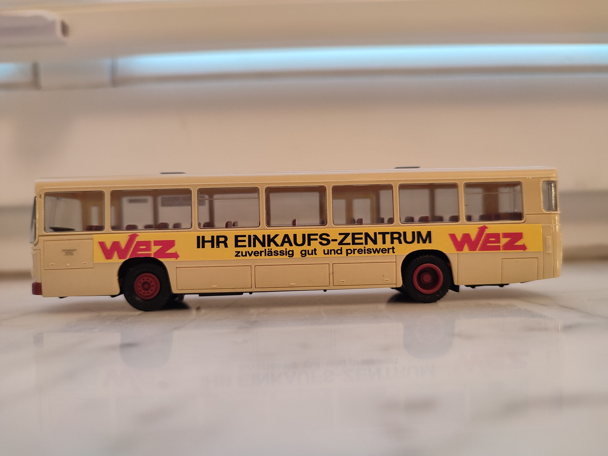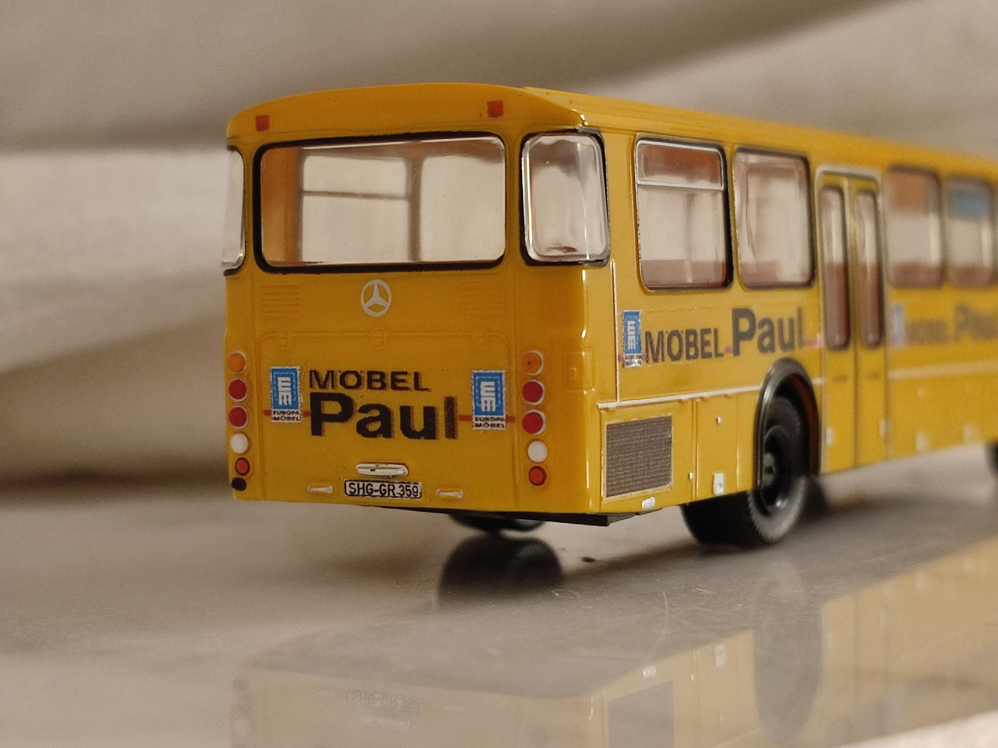 Für Herrn Hellmund entstand auf Basis des MB O407 von Rietze die Marktkaufwerbung. Das Fahrzeug wurde zusätzlich passend lackiert und von mir stammt nur die Werbung selber.