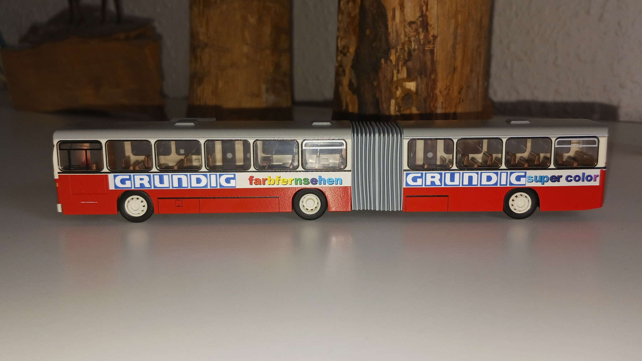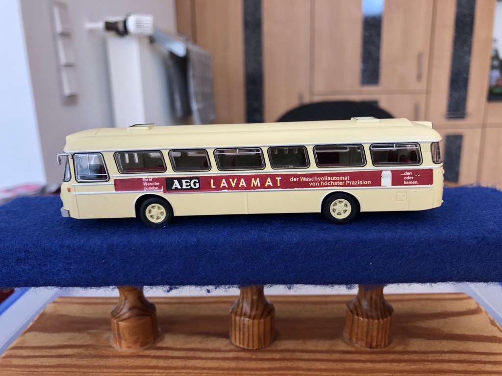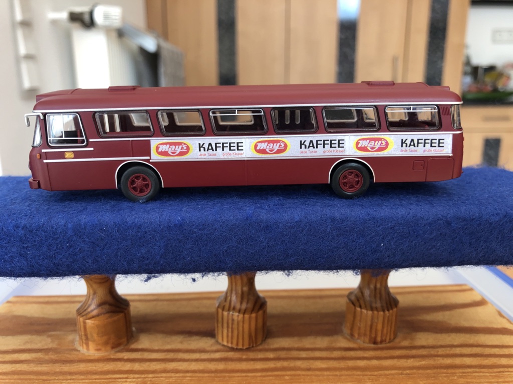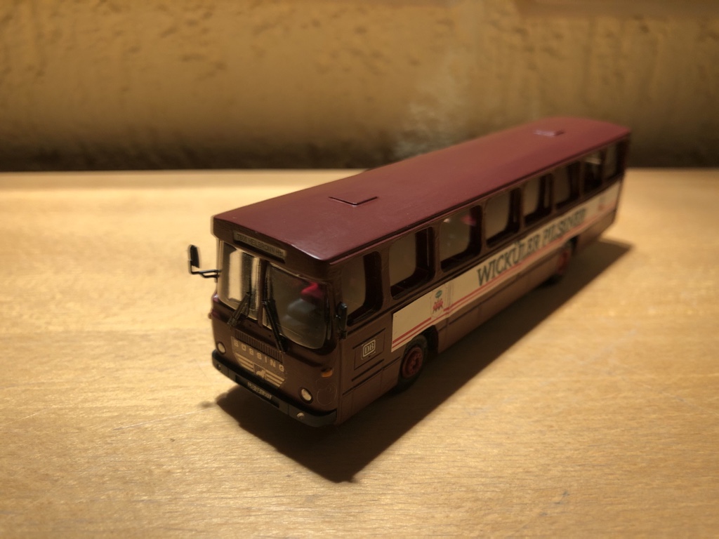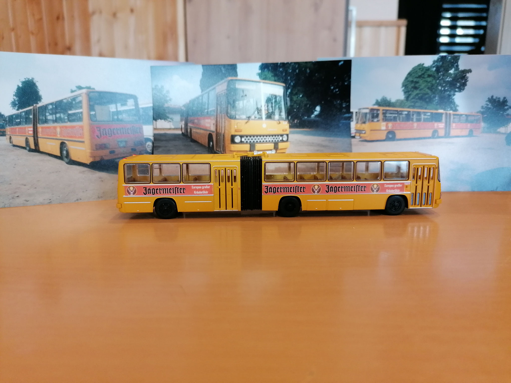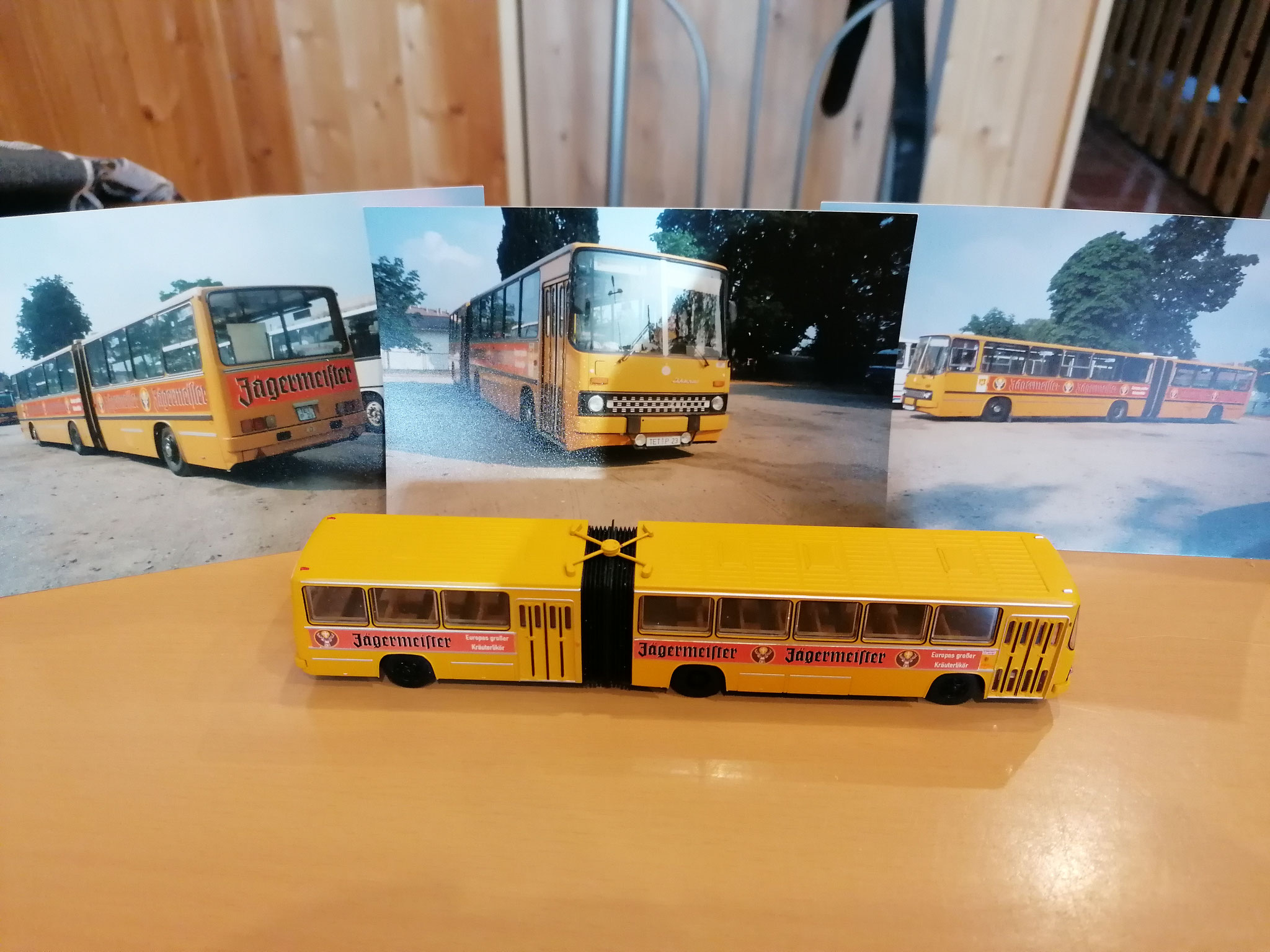 Aus der Werbung 16009 für Tatra Straßenbahnen erstellte Herr Klingberg diesen sehr schönen Ikarus Bus von Brekina nach original Vorbild.