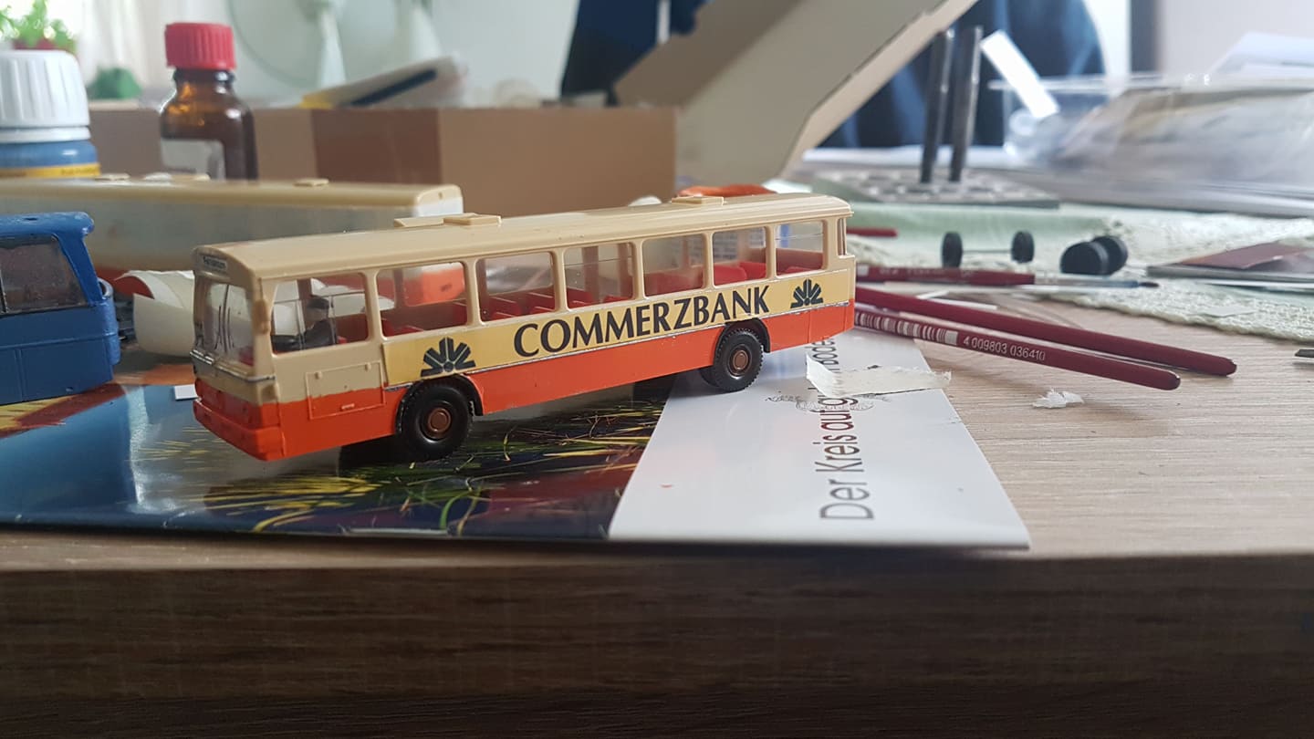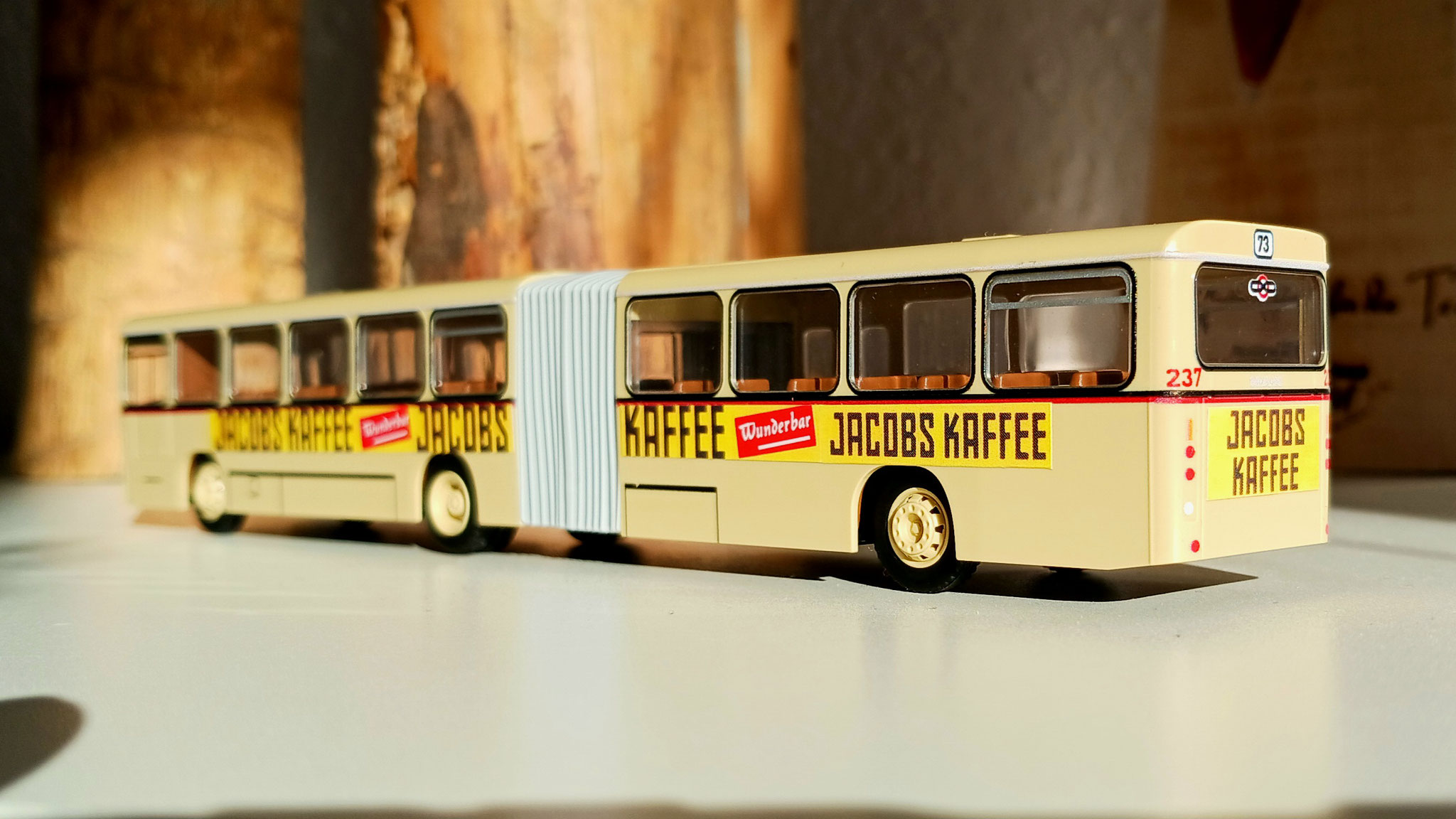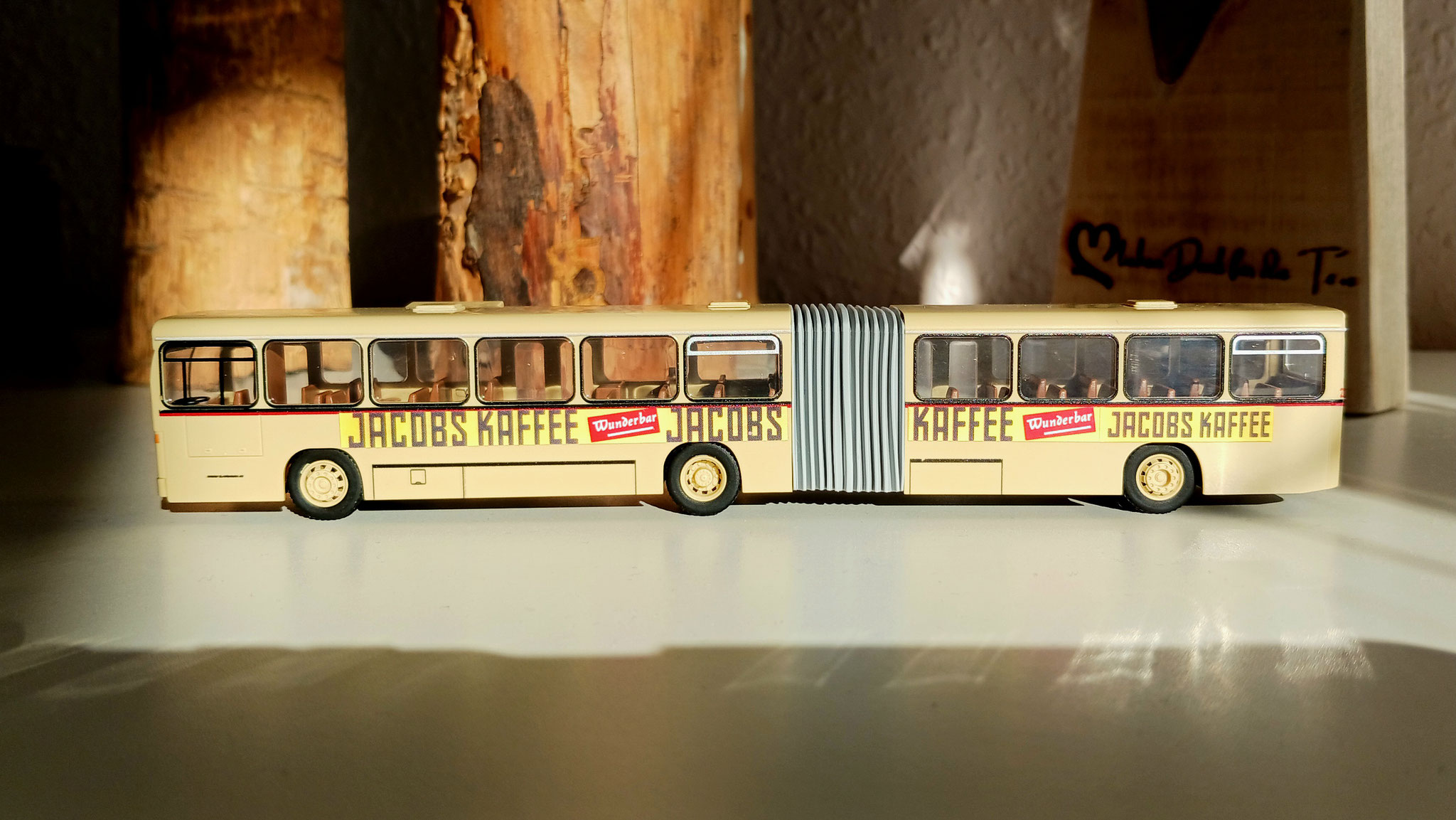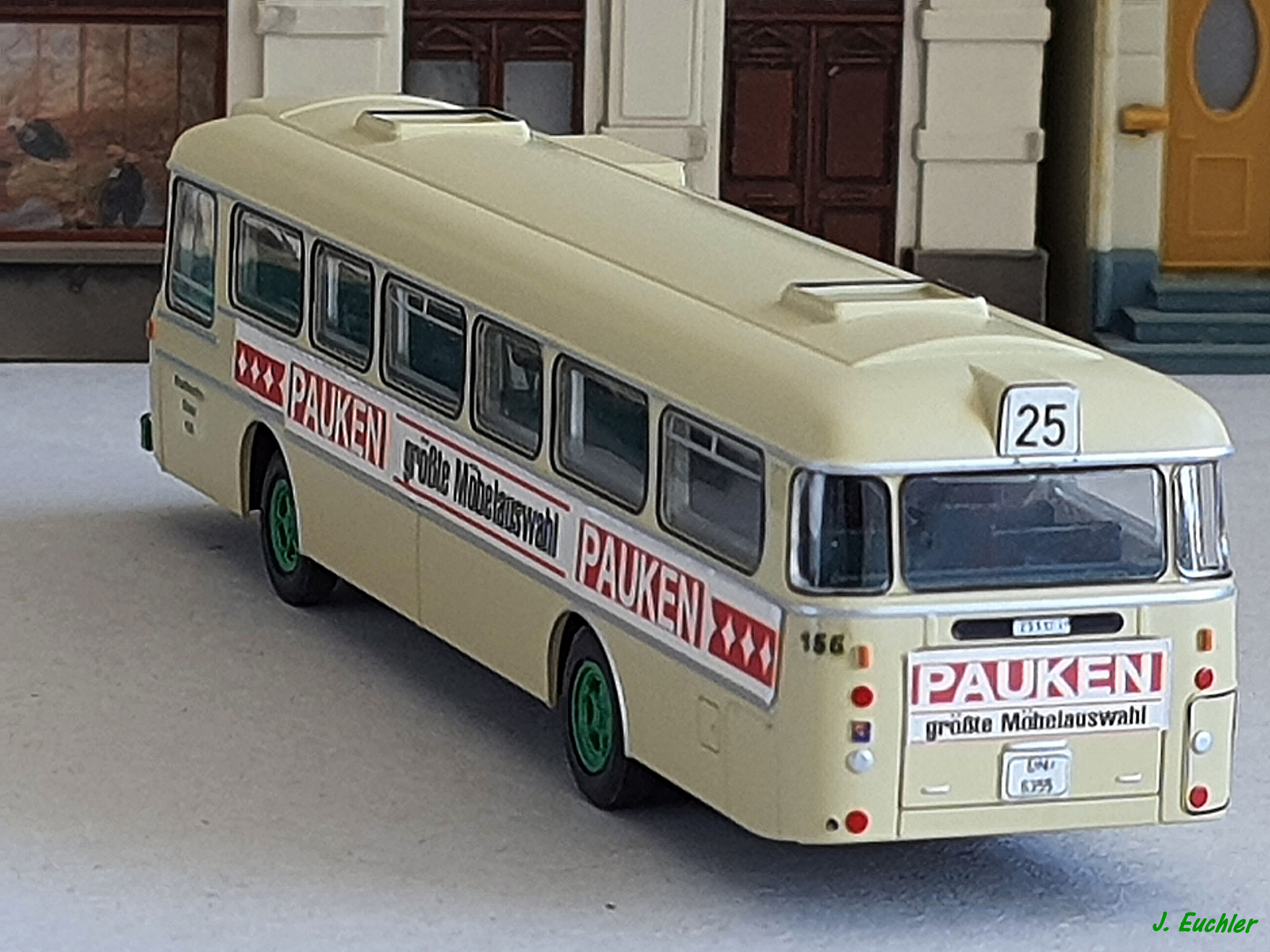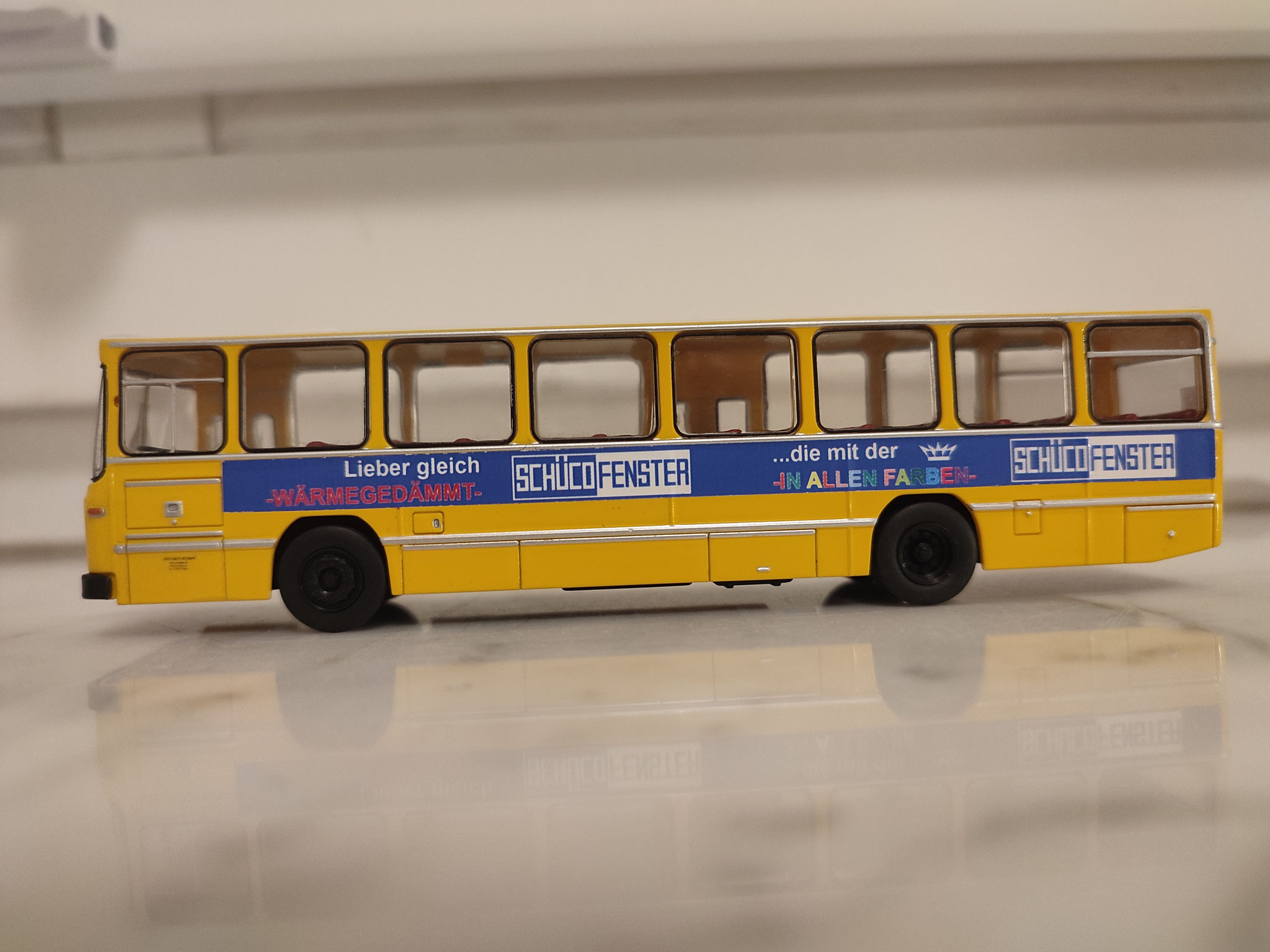 Aus der Werbung 16009 für Tatra Straßenbahnen erstellte Herr Klingberg diesen sehr schönen Ikarus Bus von Brekina nach original Vorbild.