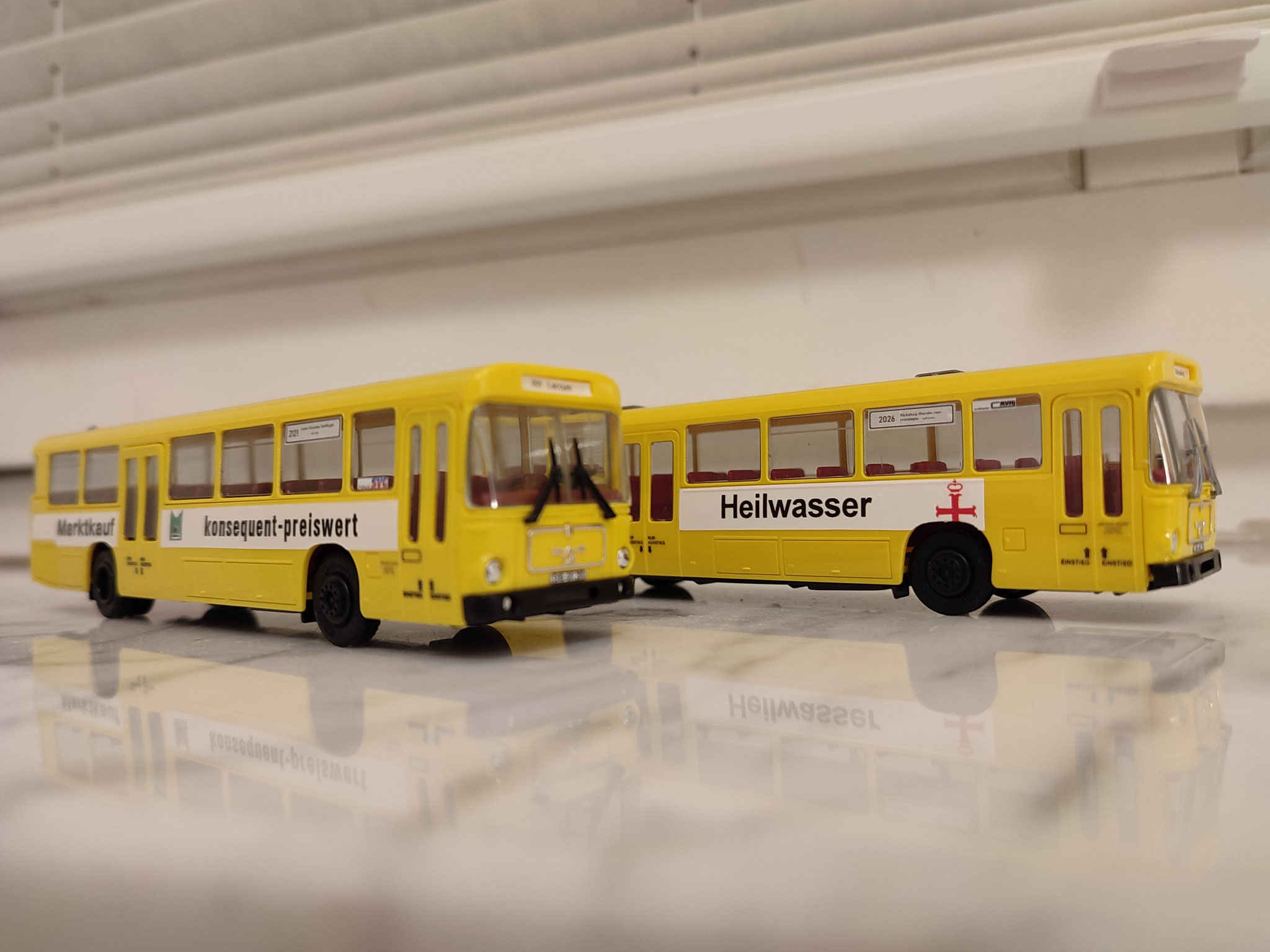 Jeweils zwei Bilder von einem MAN SG192 und MB O305G von Herrn Steingroever.
