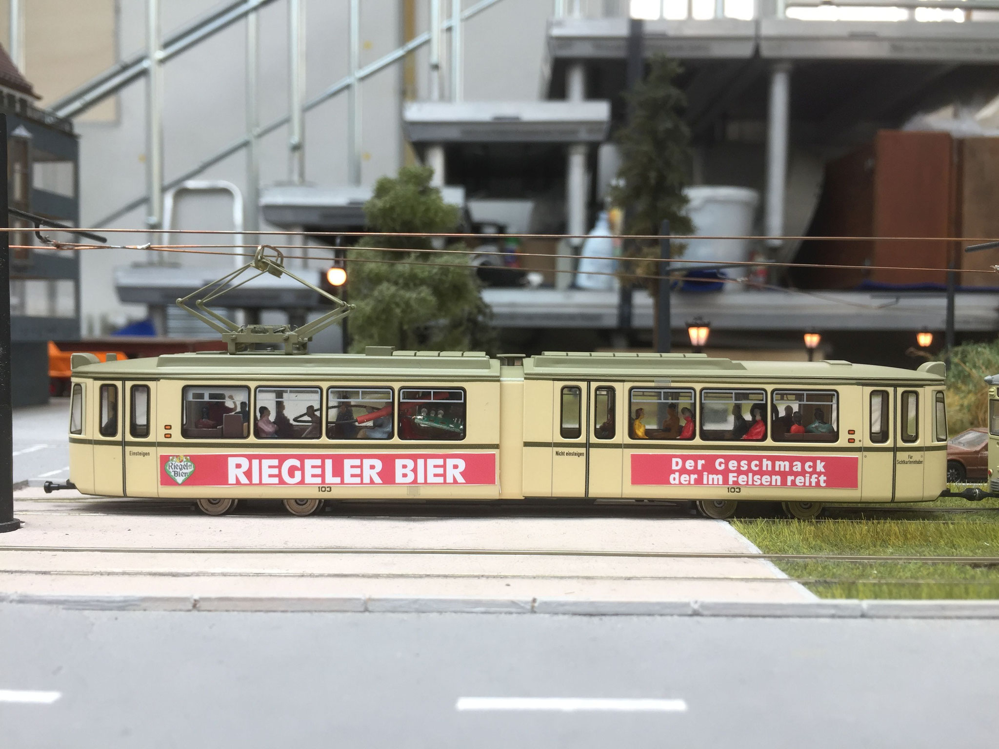 Straßenbahnmodelle nach Kasseler Vorbild, als Kleinstserie in Österreich entstanden mit Werbung von RGModellbau. Die Bilder wurden von Herrn Roschning zur Verfügung gestellt und zeigen seine Modelle.