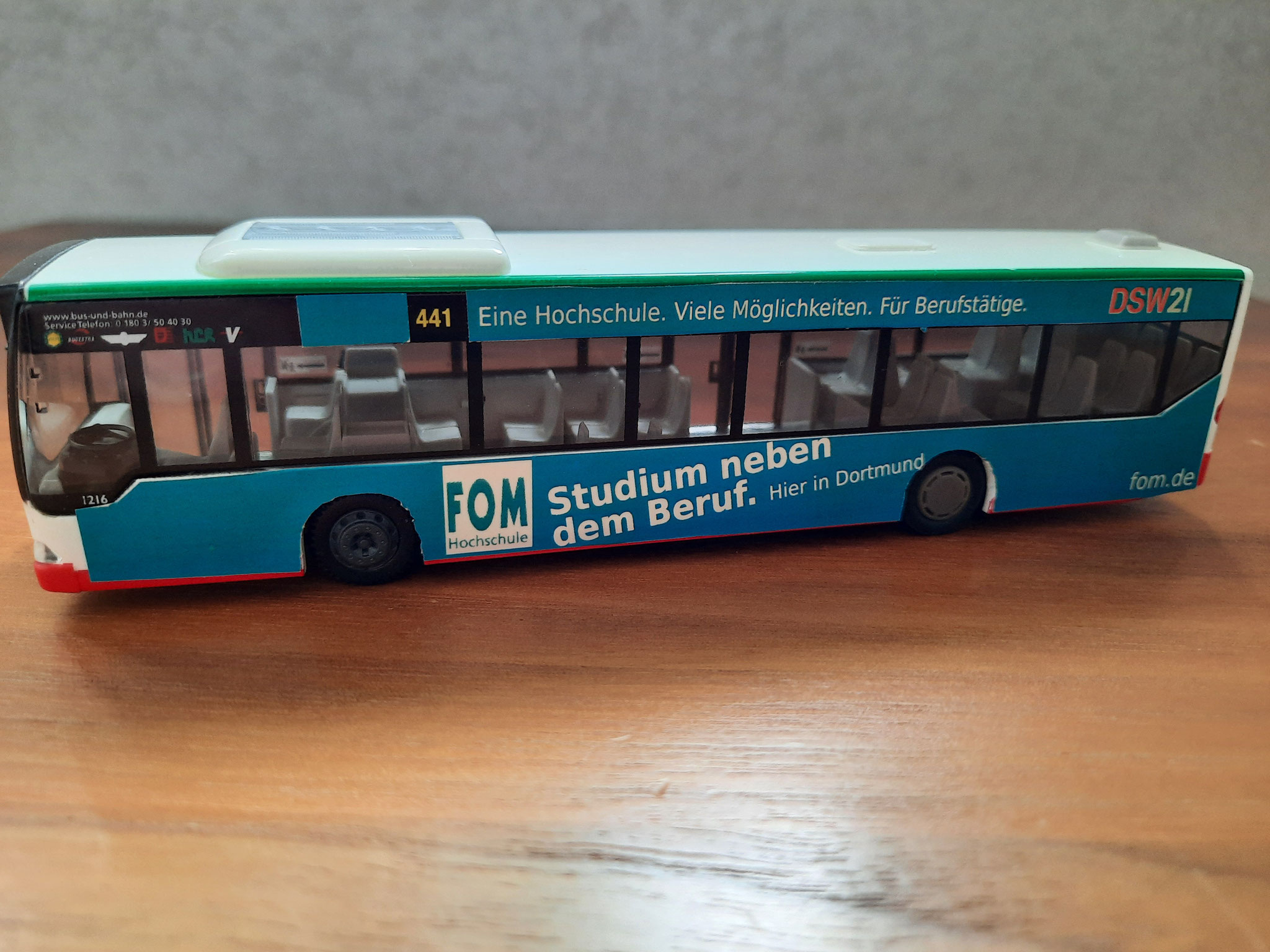 D. Comuth gestaltete einen MB O530 Citaro I nach Dortmunder Vorbild (Wagen 1216) mit FOM Werbung.