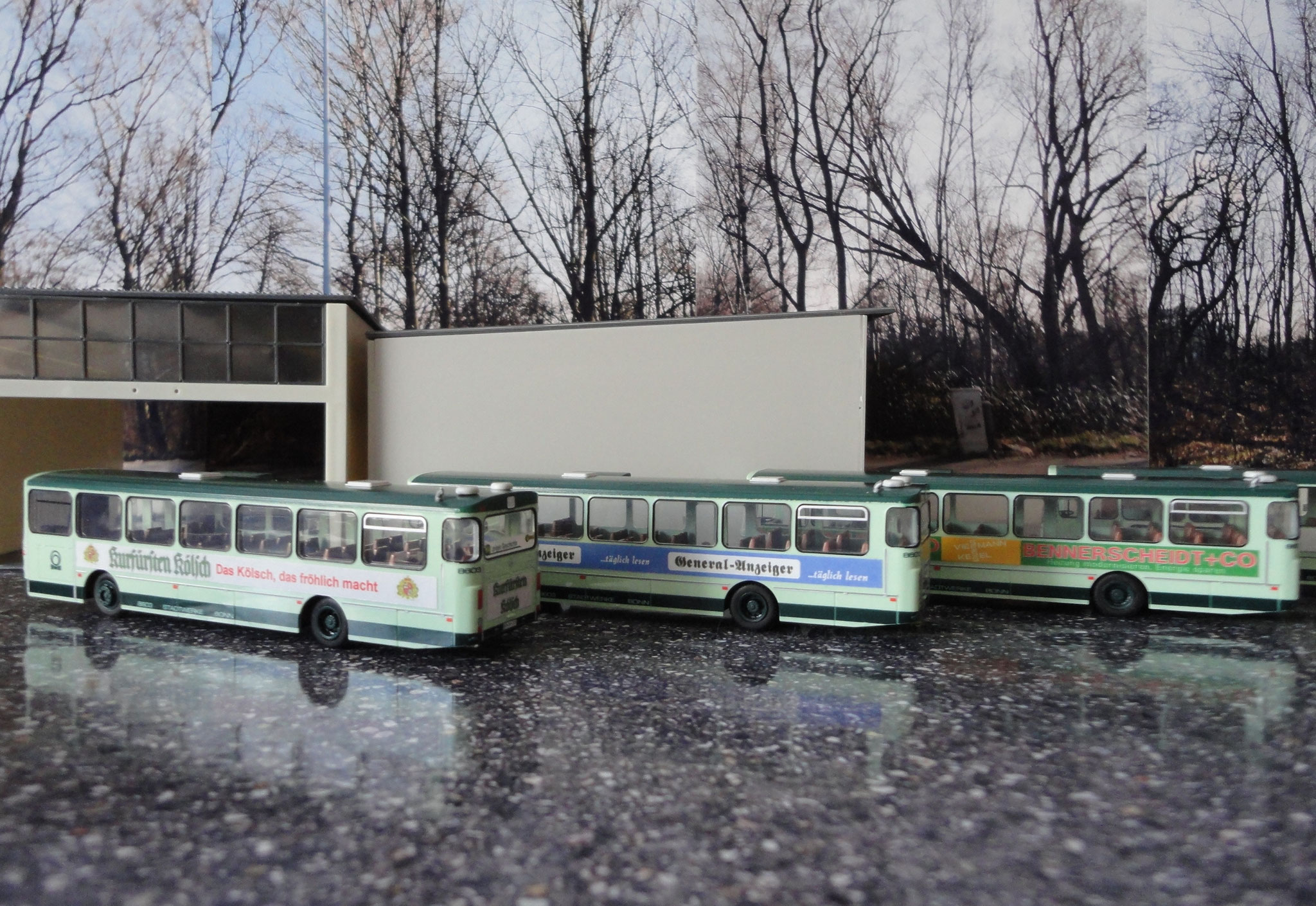 Bonner Linienbusse in ihrer alten Lackierung aus drei Generationen, freundlicher Weise zur Verfügung gestellt von H. Behm.