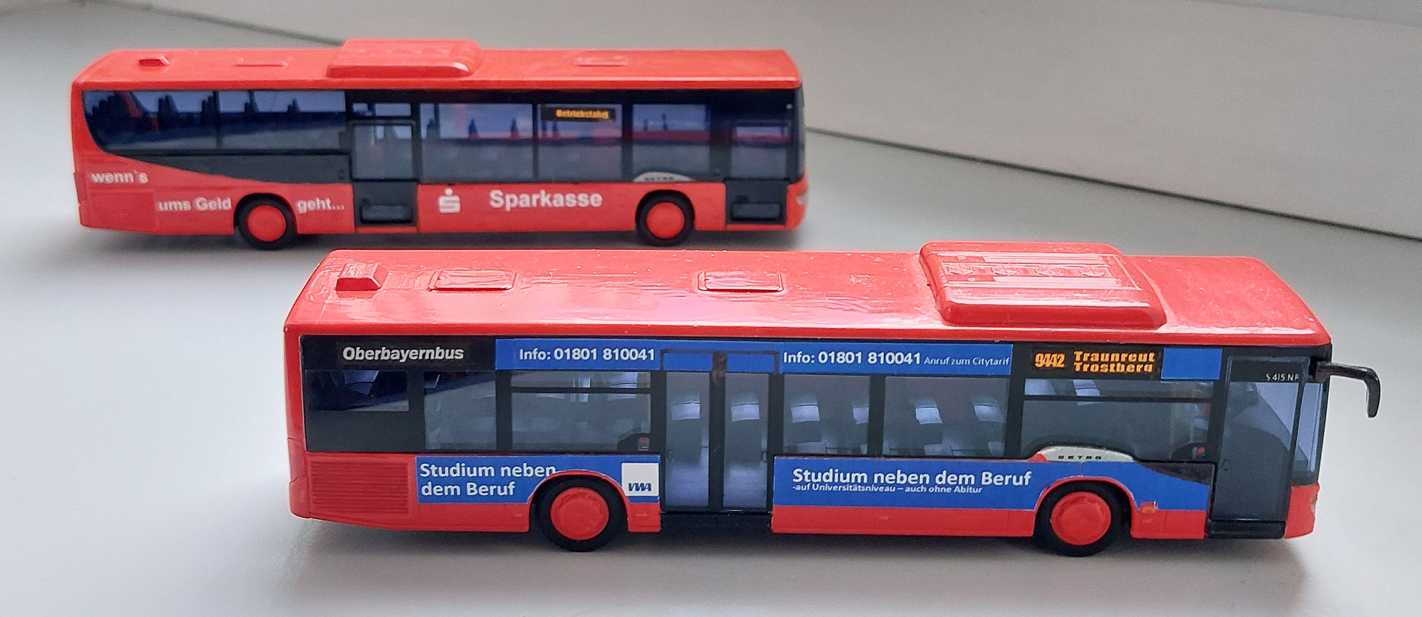 Bahnbusmodelle von Herrn von Kreutz mit neuer Werbung nach niedersächsischem Vorbild.