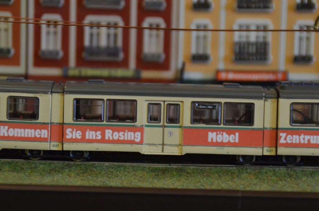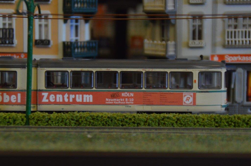 Modell des Roco 6 Achser nach Kölner Vorbild mit Werbung, welche eigentlich für einen Gt8ZR vorgesehen ist. Enstanden durch J. Herzog.