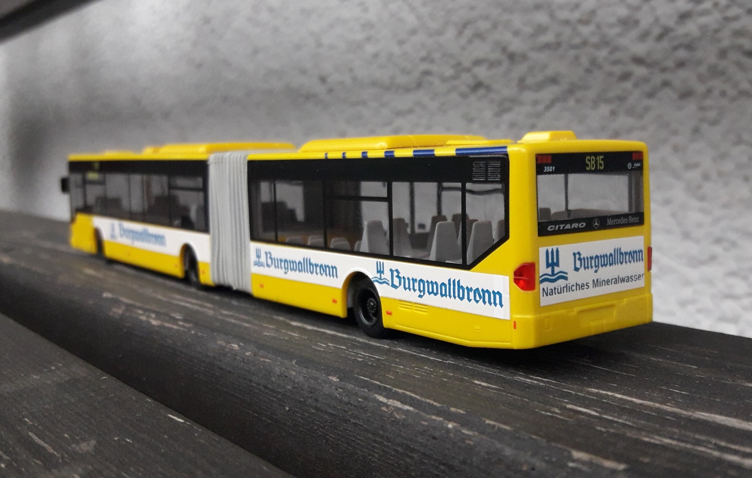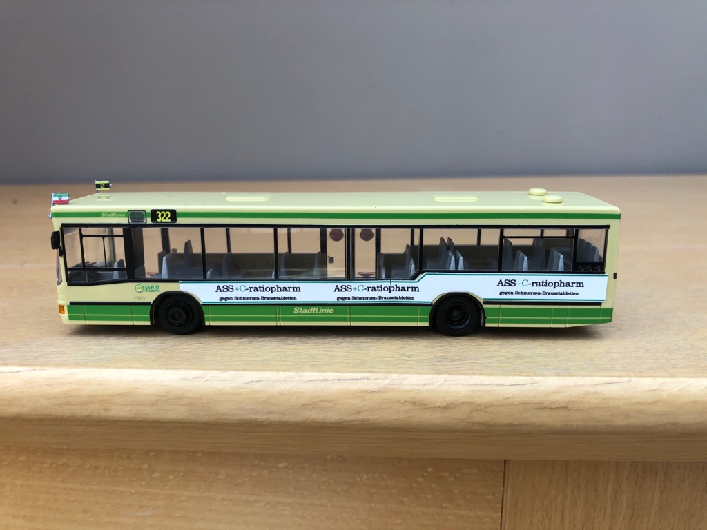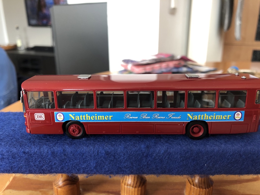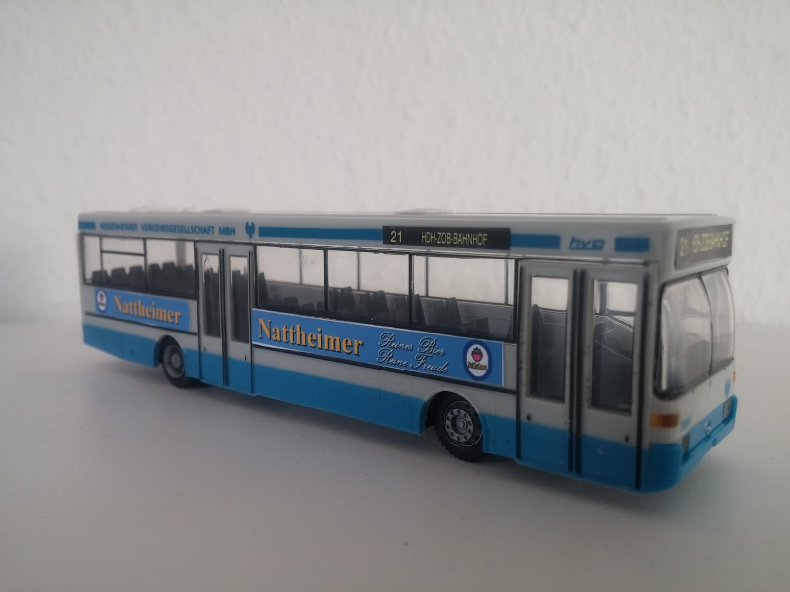 Modell der Heidenheimer Verkehrsgesellschaft mbH, heute zur TRANSDEV gehörend mit Nattheimer Werbung hier auf einem Rietze MBO405 von Herrn Grupp.