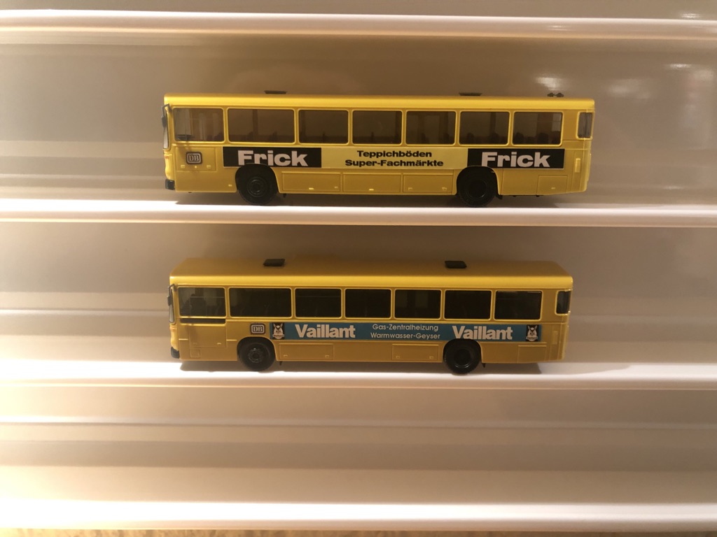 Neue Bilder der Busse von Herrn Steingroever nach Vorbild der Deutschen Bundesbahn mit diversen Werbungen.