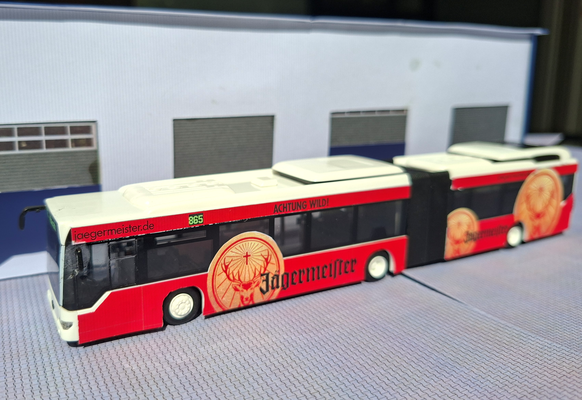 Aus einem Herpa Minikit MAN SÜ210 entstand dieses Modell mit Jägermeister Werbung.